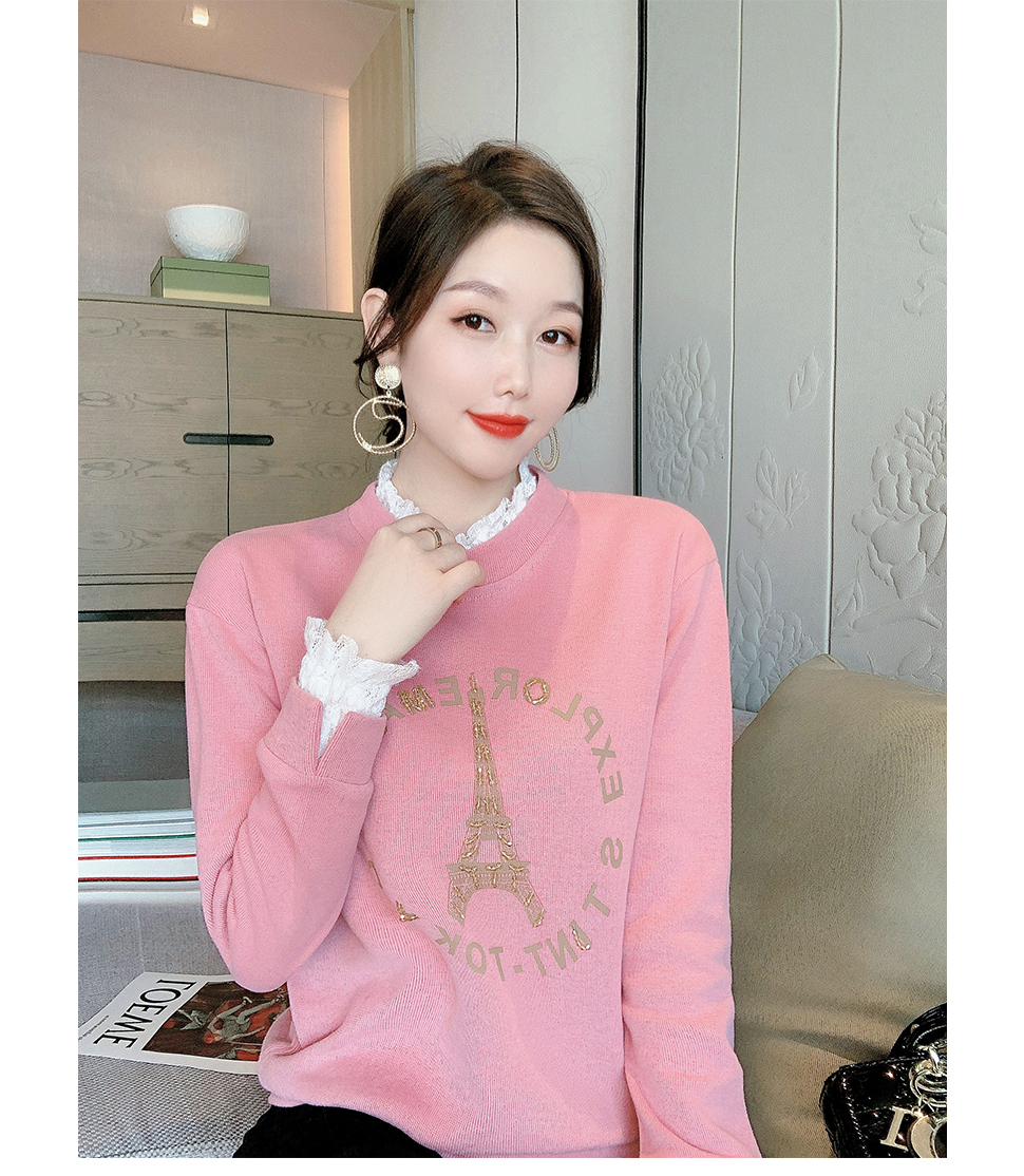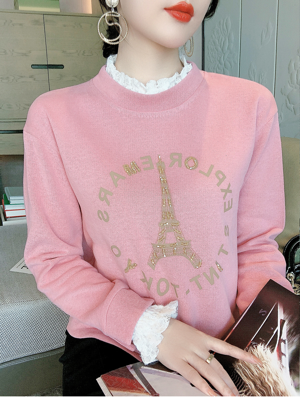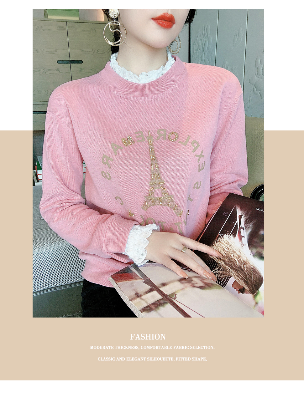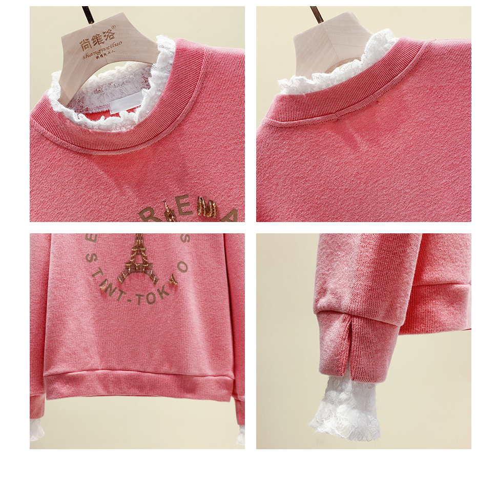 RM32581#粉色卫衣 新款女装宽松重工钉珠内搭圆领打底衫
