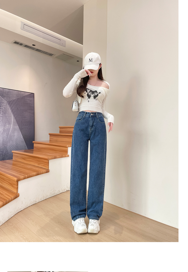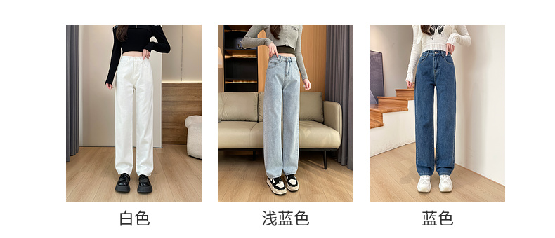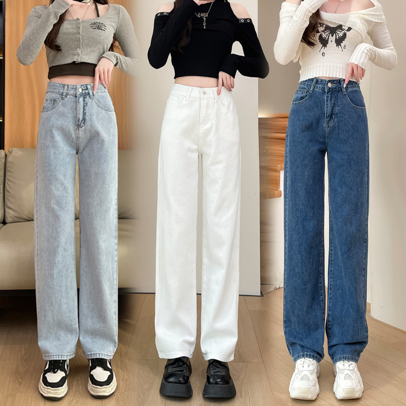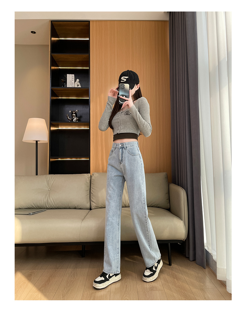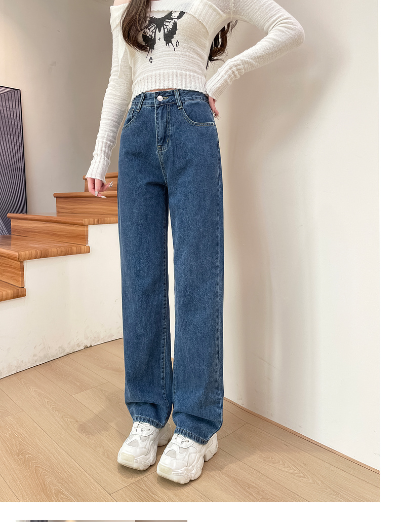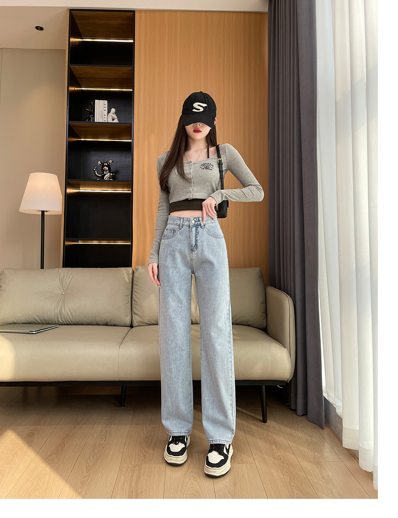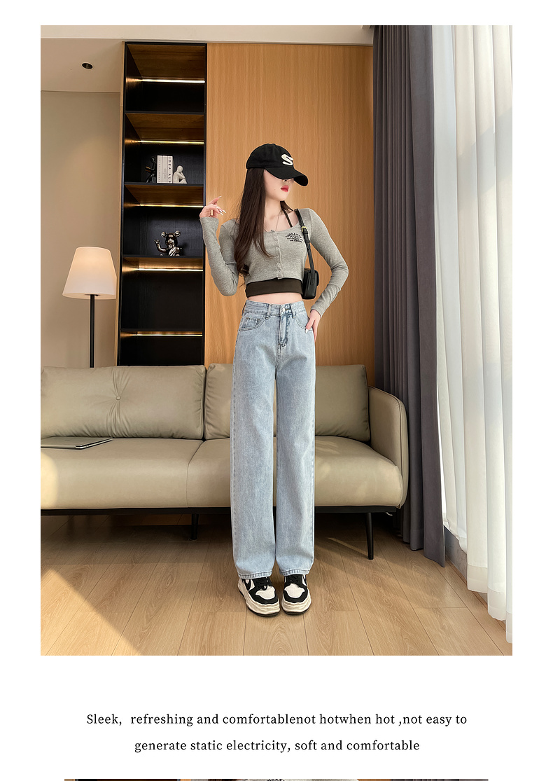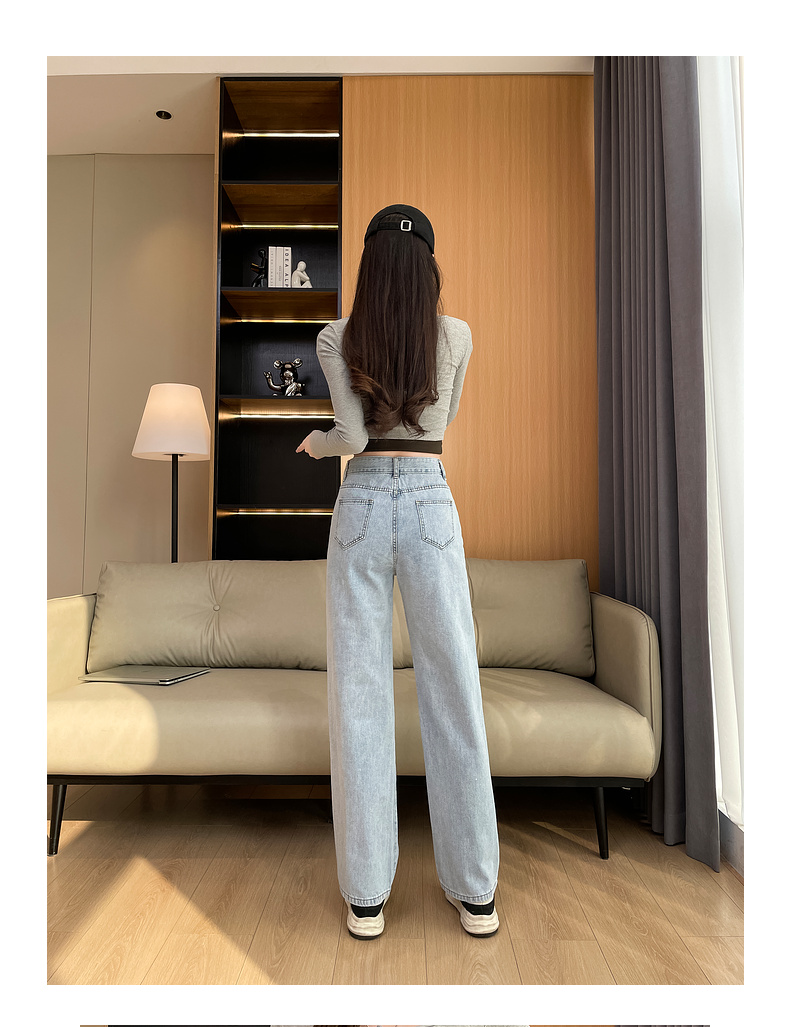 RM32592#浅蓝高腰直筒牛仔裤女窄版阔腿裤子小个子显瘦显高直筒裤