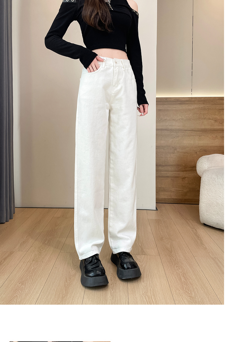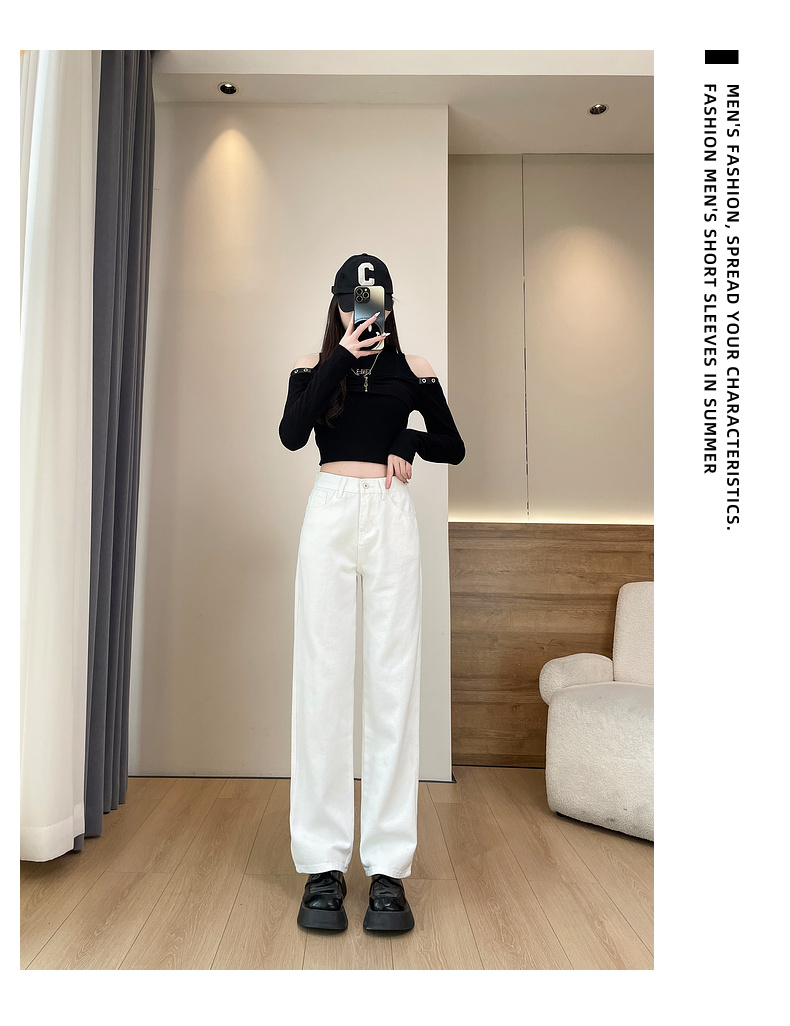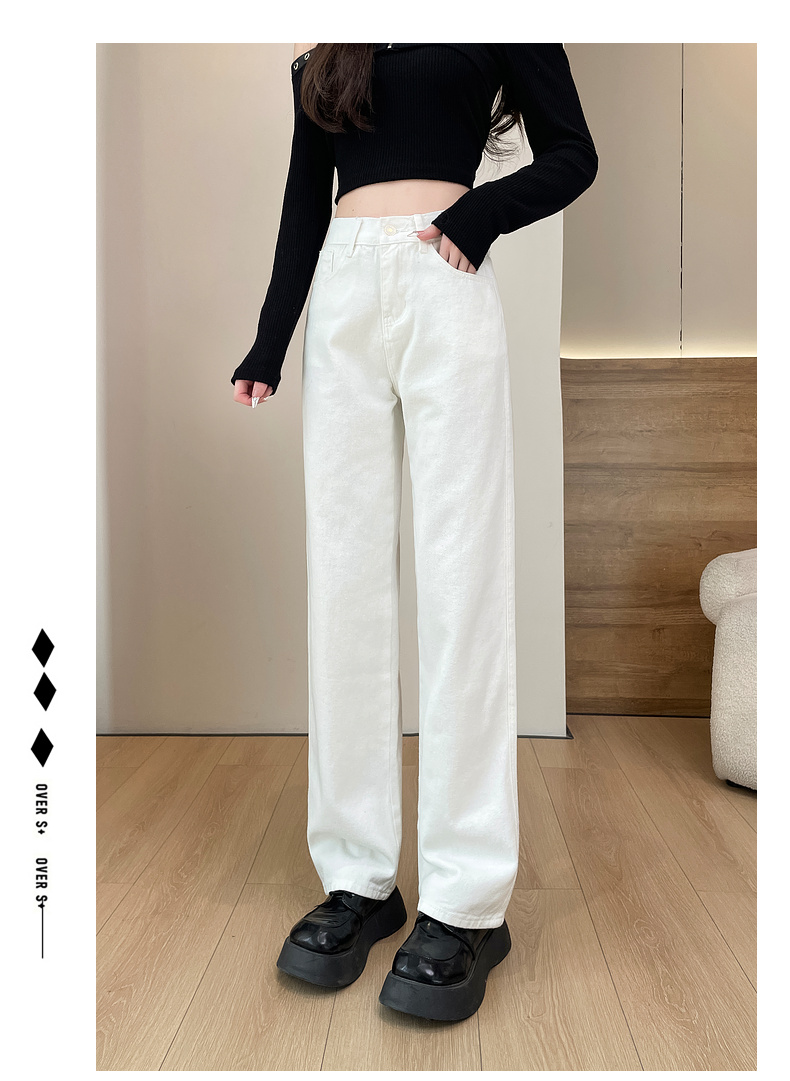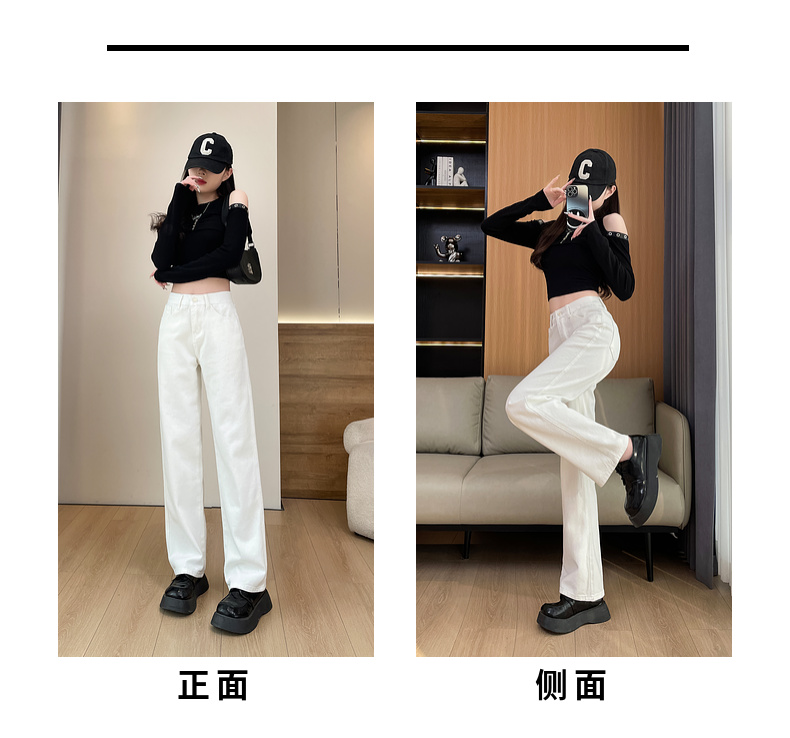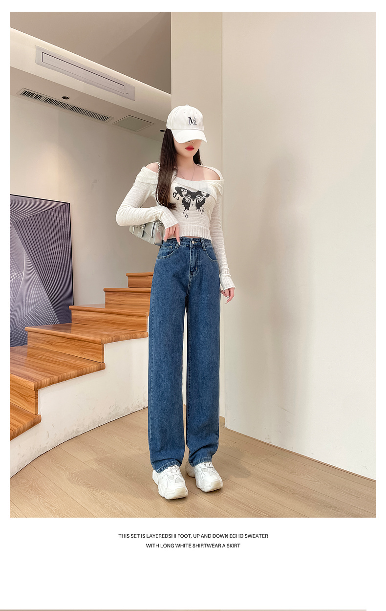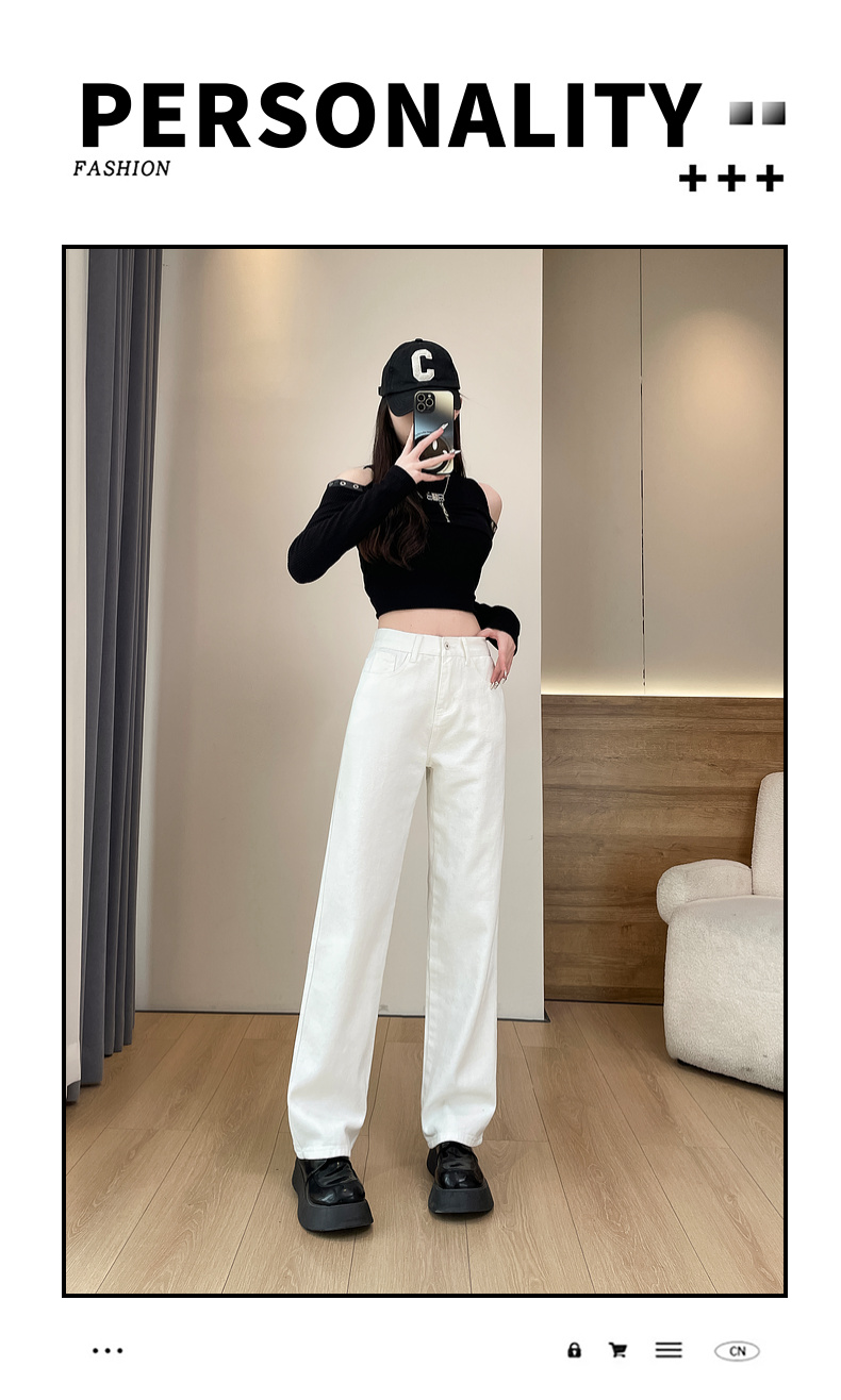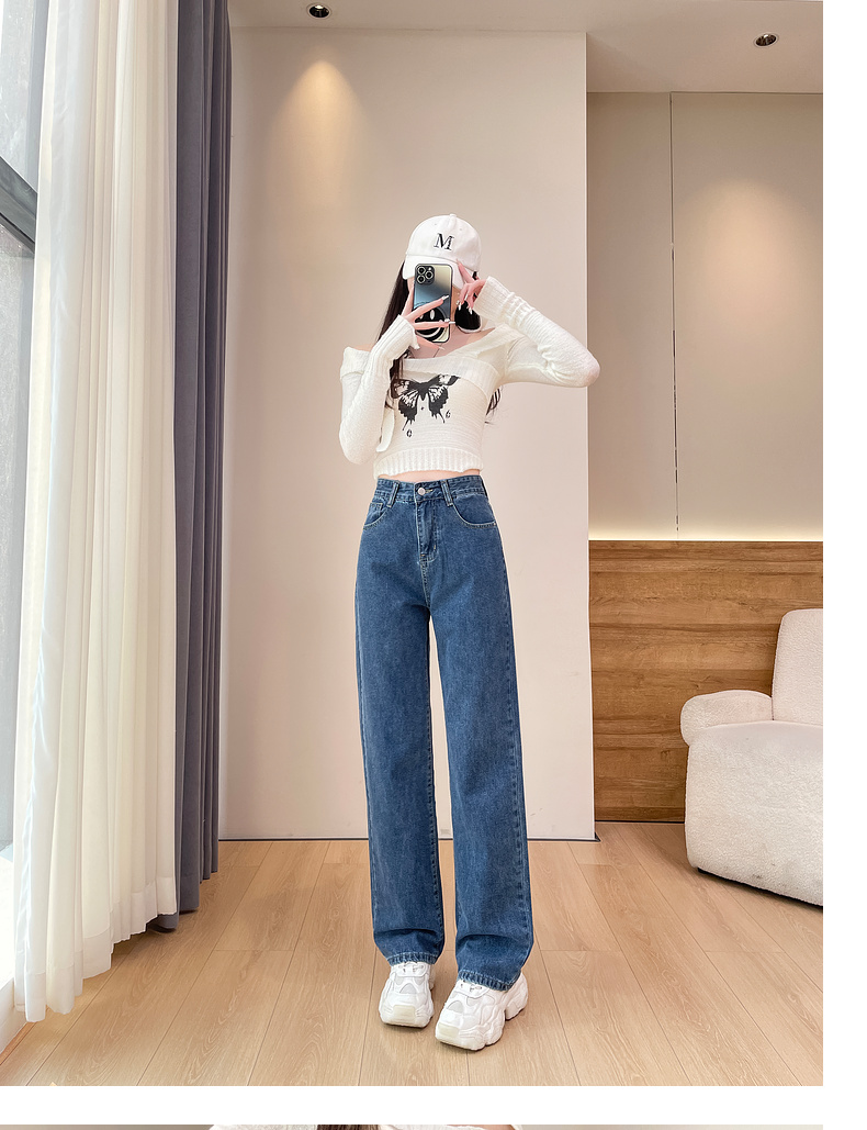 RM32592#浅蓝高腰直筒牛仔裤女窄版阔腿裤子小个子显瘦显高直筒裤