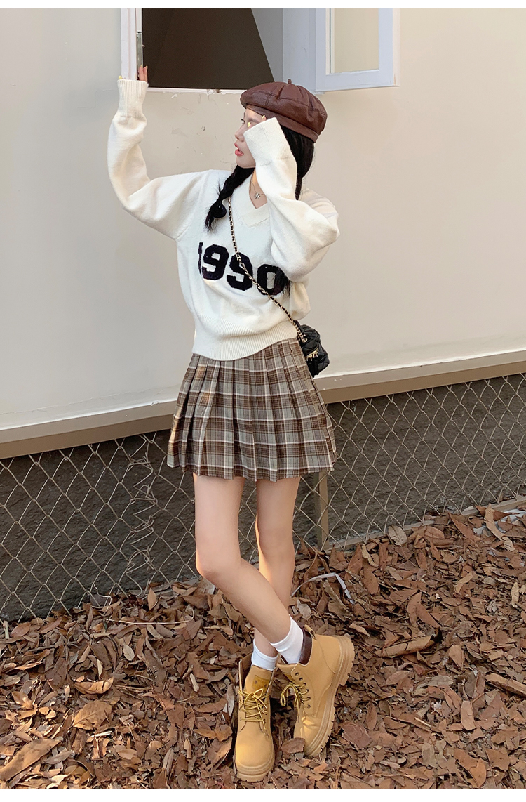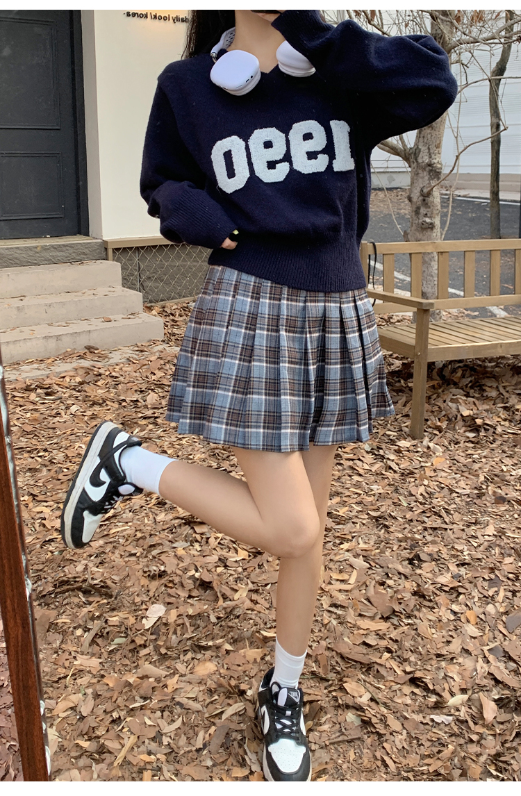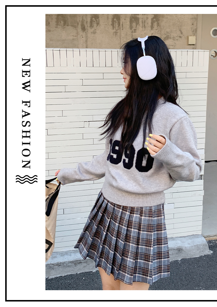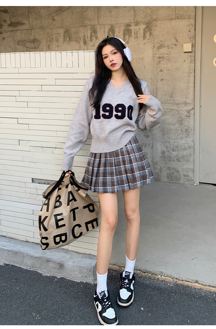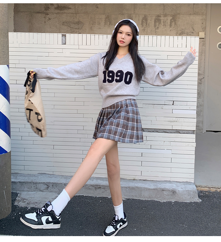 RM32598#韩版学院风减龄百搭V领宽松刺绣字母套头毛衣