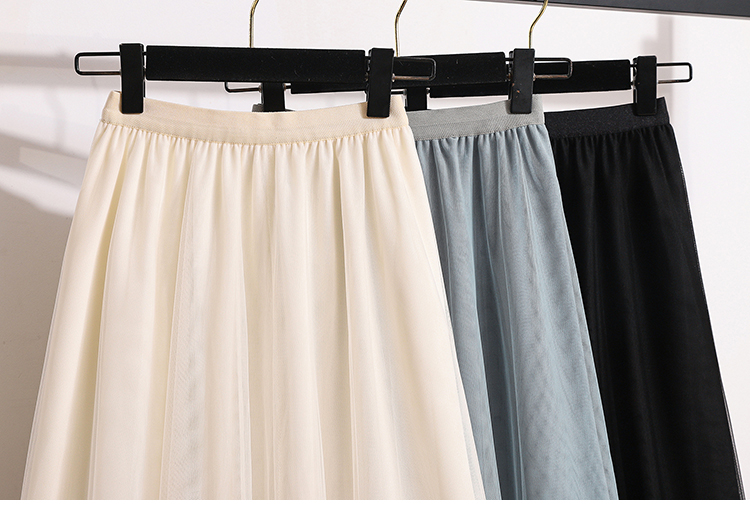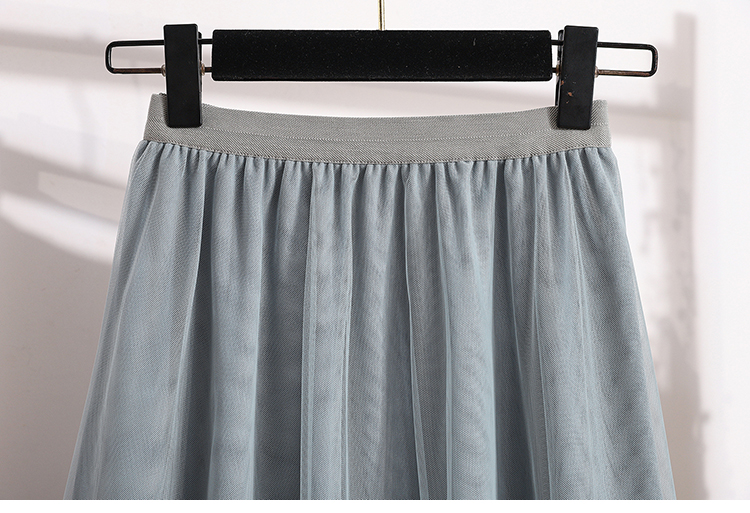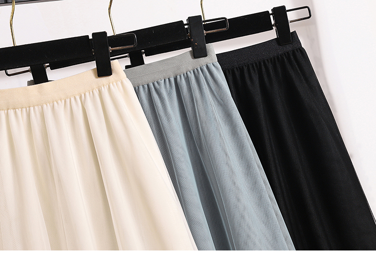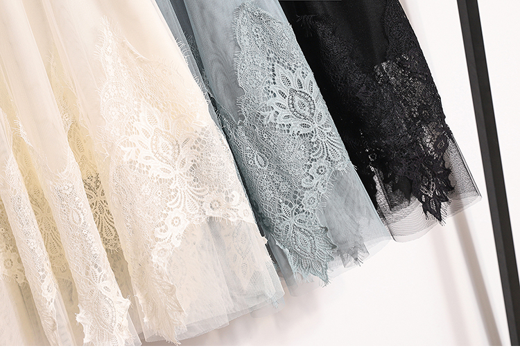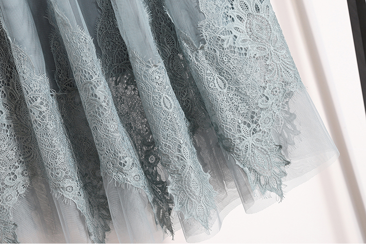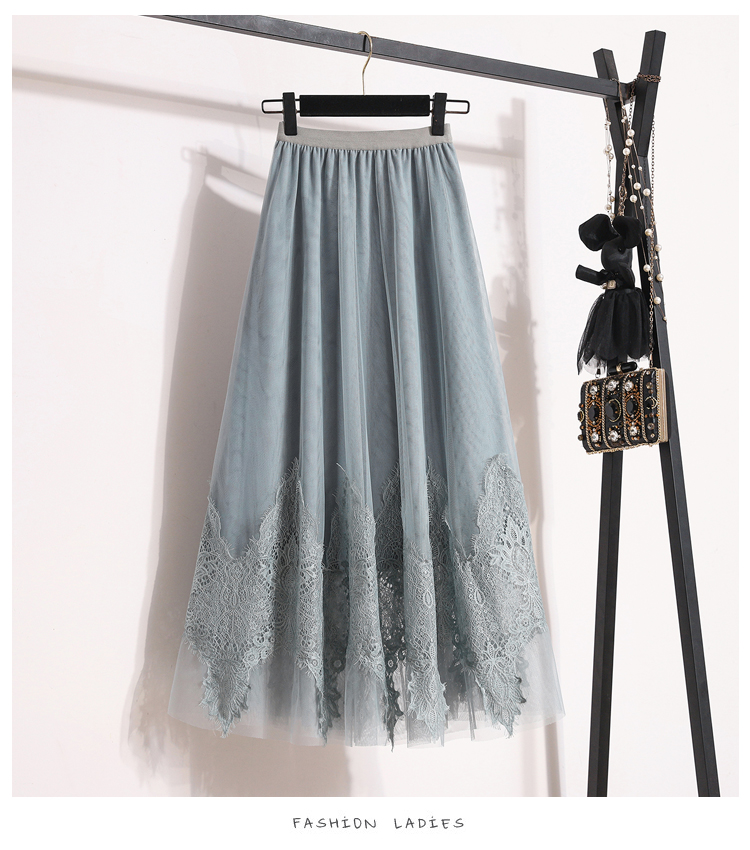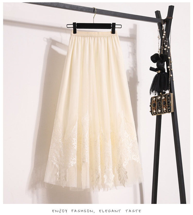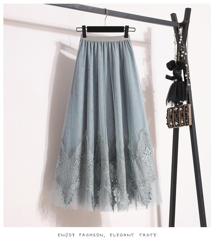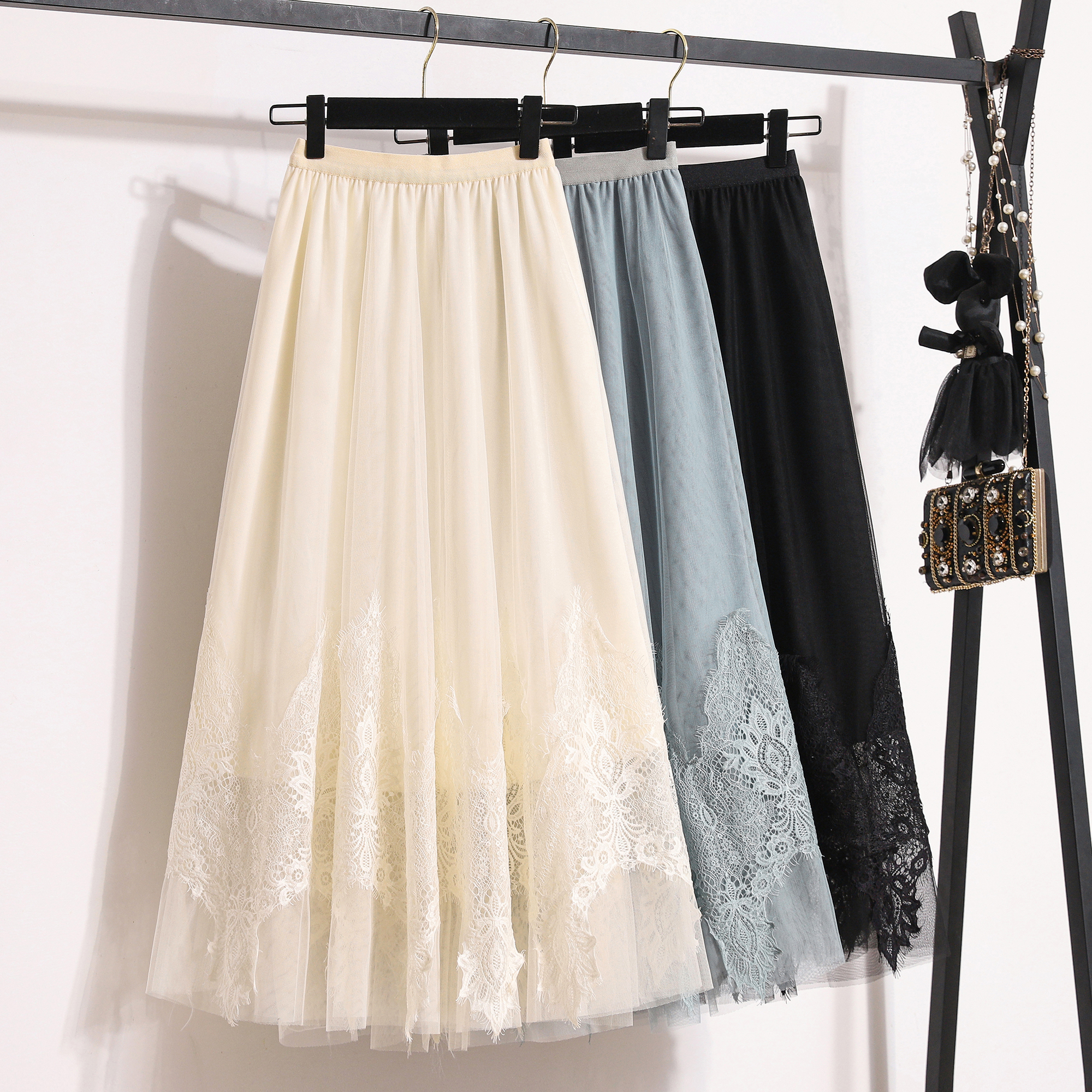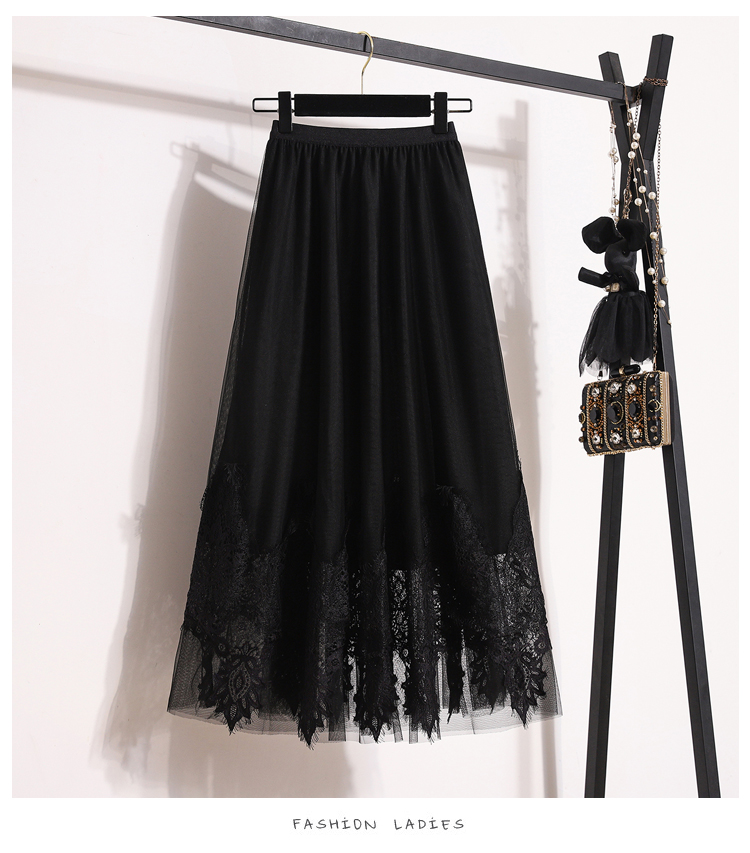 RM32600#拼接蕾丝网纱裙垂感温柔风高腰a字半身裙中长气质大摆裙
