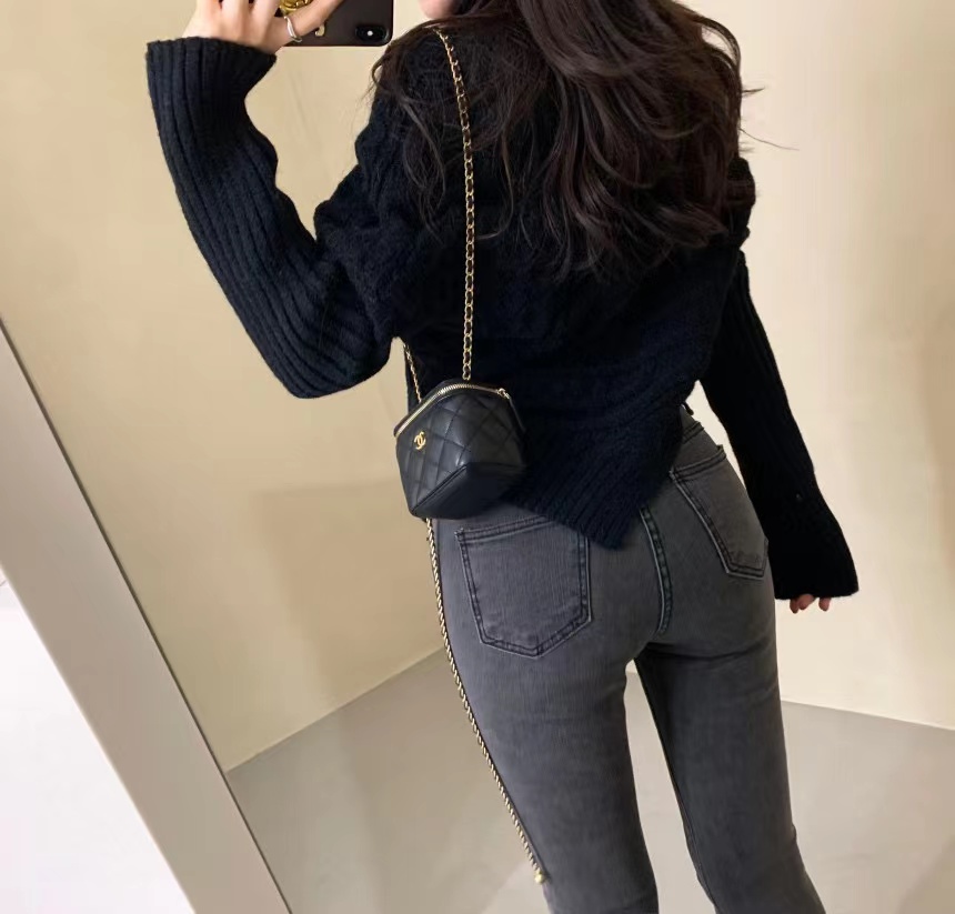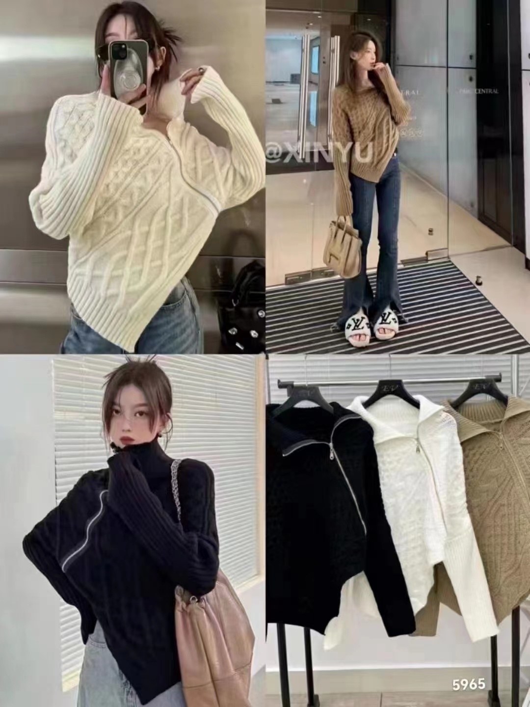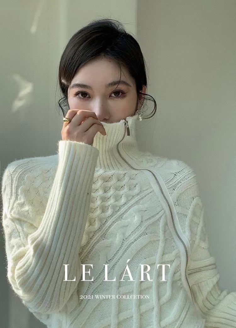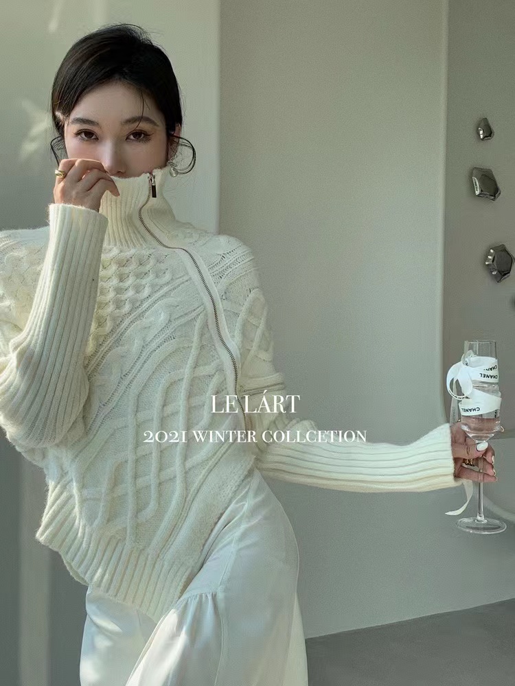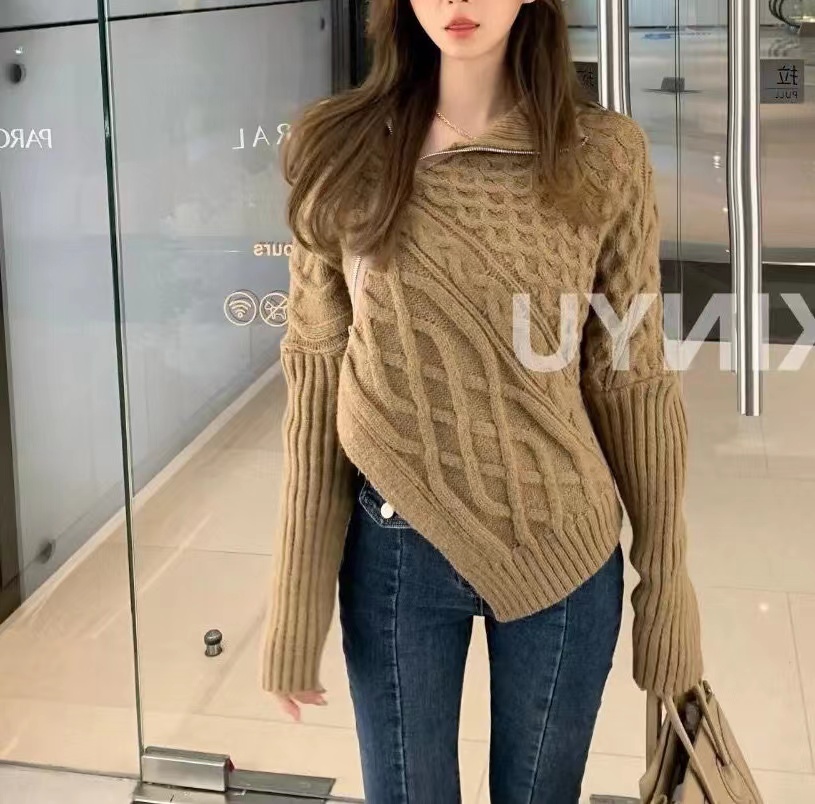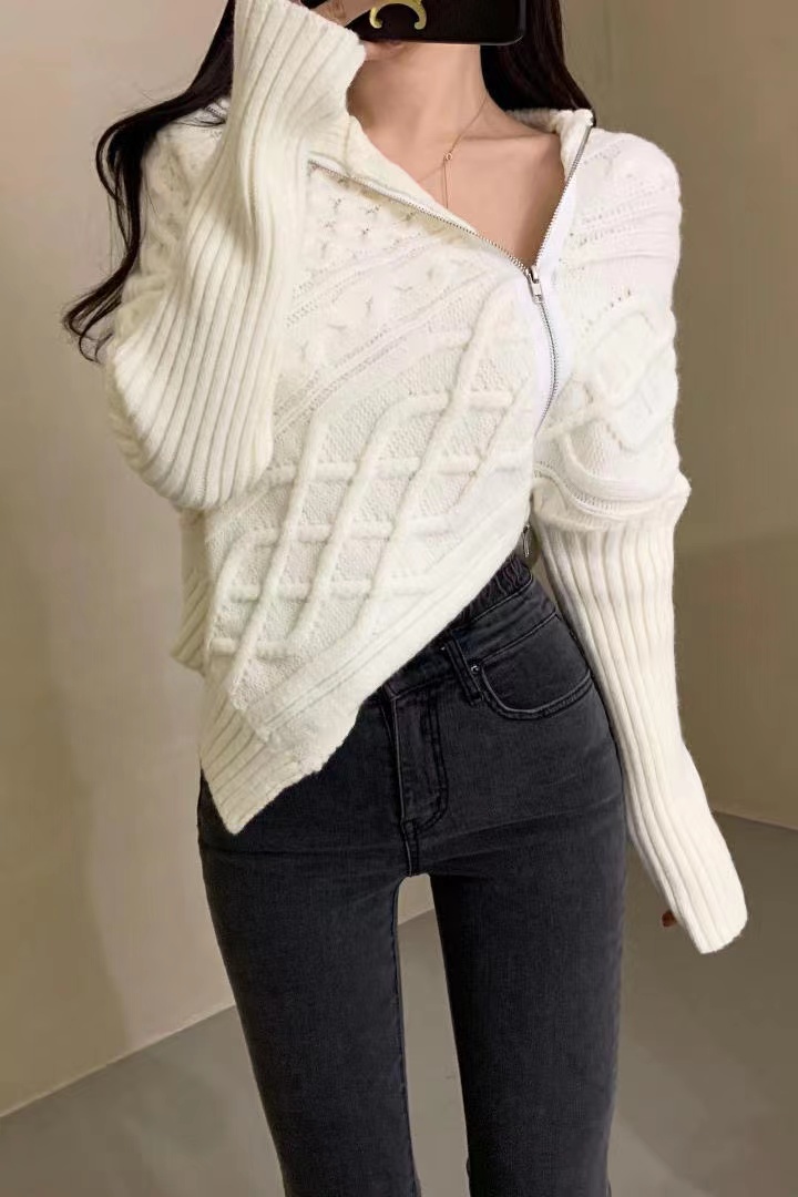 RM32601#韩国东大门 新款韩版设计感不规则侧边拉链开衫外穿翻领毛衣女