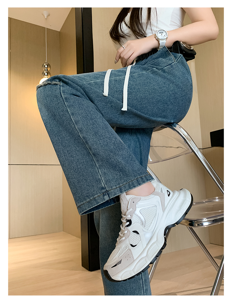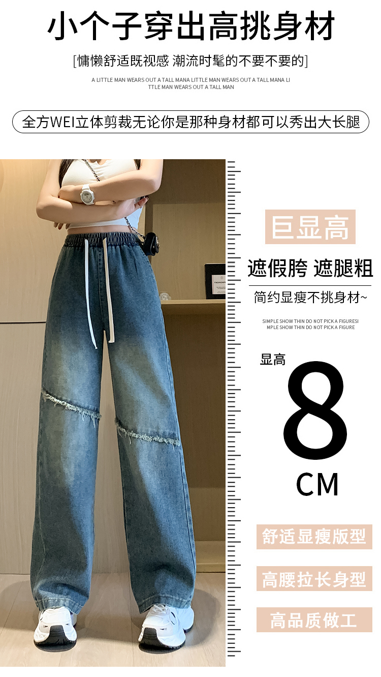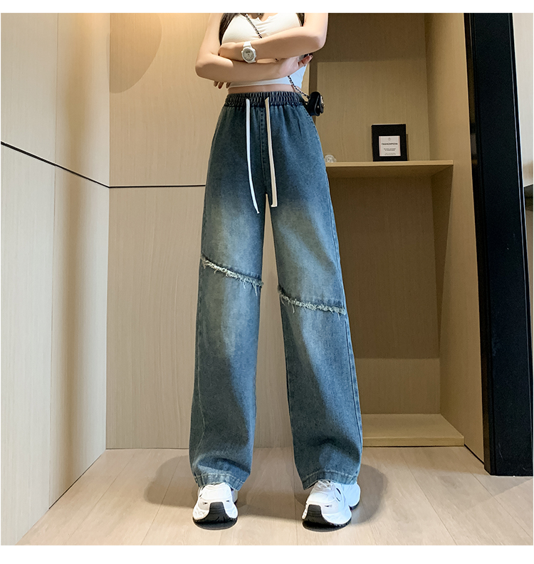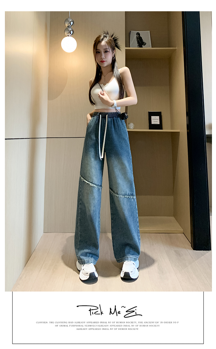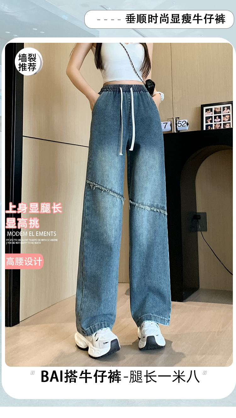 RM32612#复古蓝牛仔裤女2024春夏新款时尚高腰简约休闲宽松型阔腿长裤