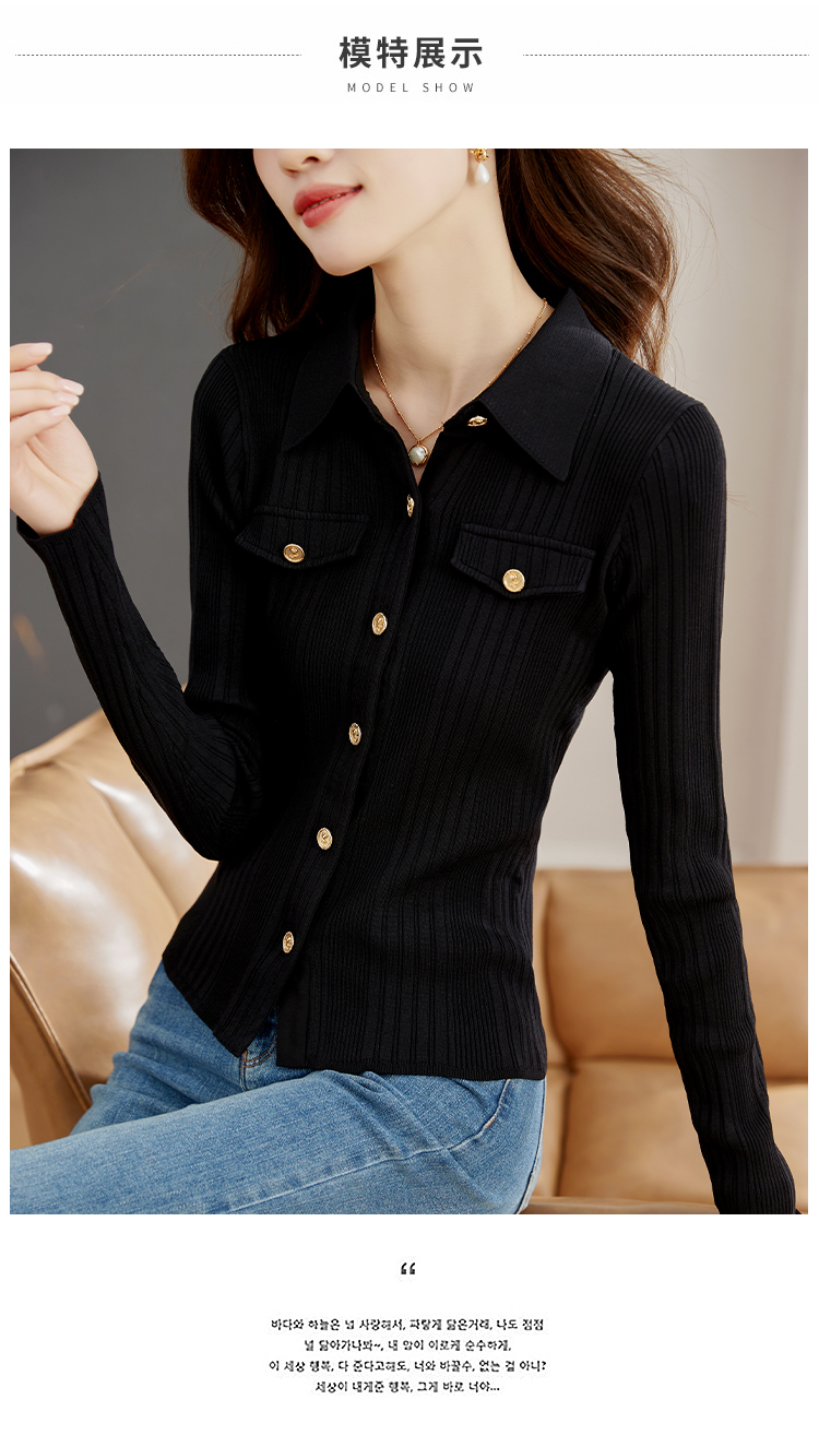 RM32629#黑色V领毛衣外套 新款针织开衫显瘦高级感小香风上衣