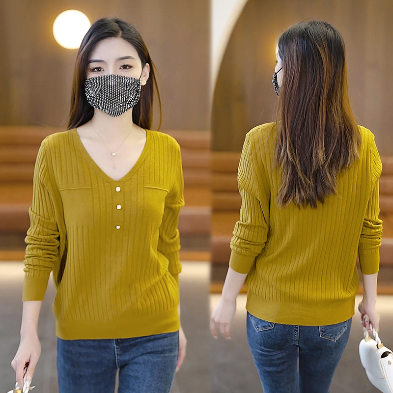 RM32685#V领针织衫女2024春秋新款宽松内搭长袖洋气毛衣外套打底衫上衣