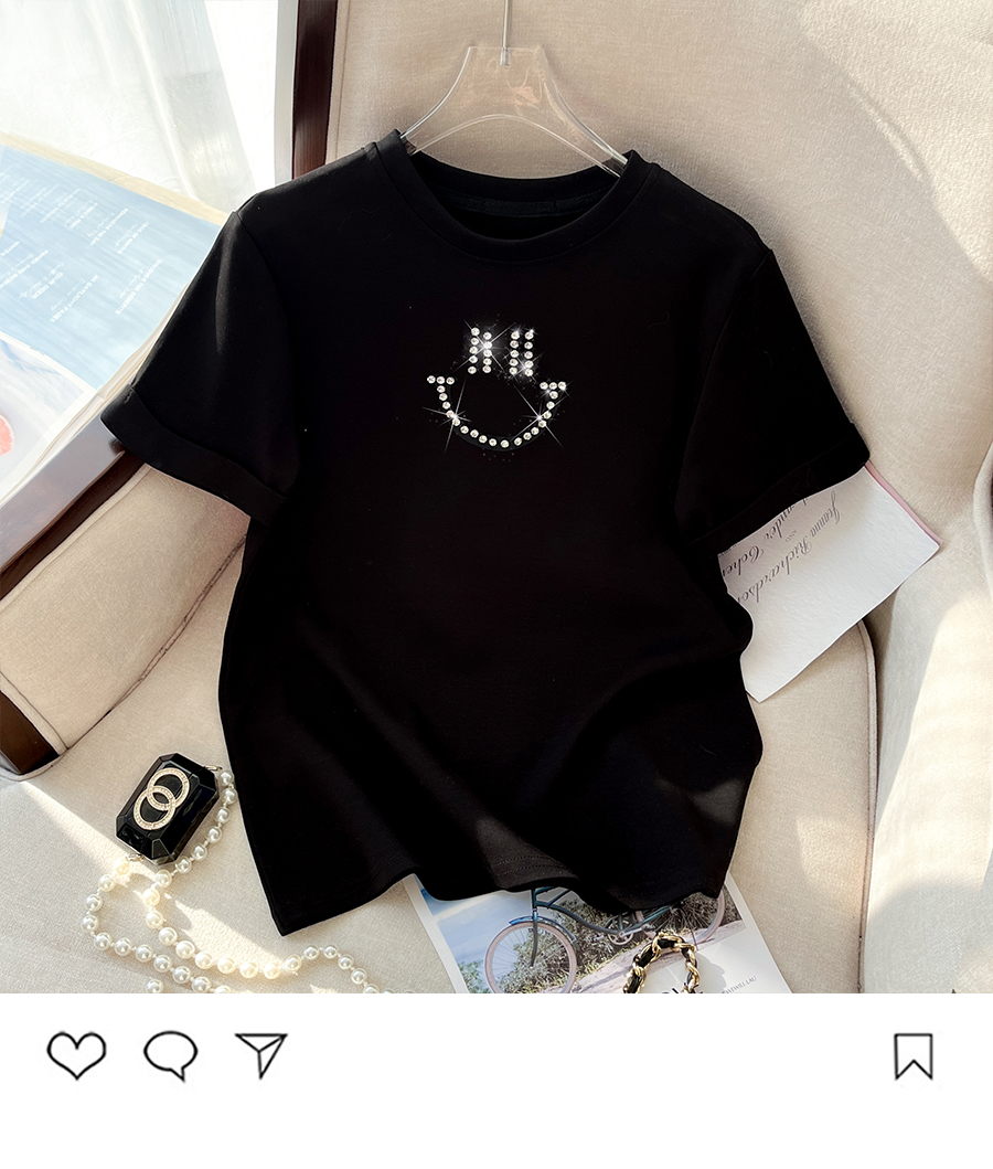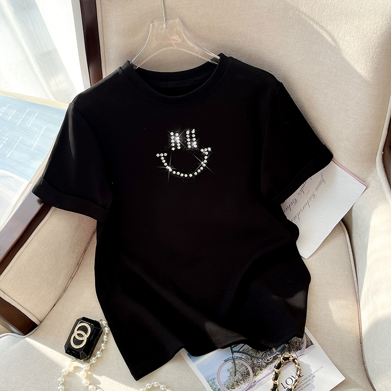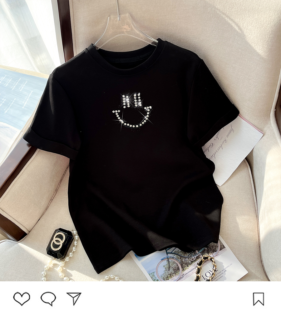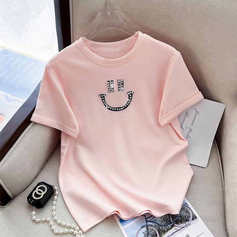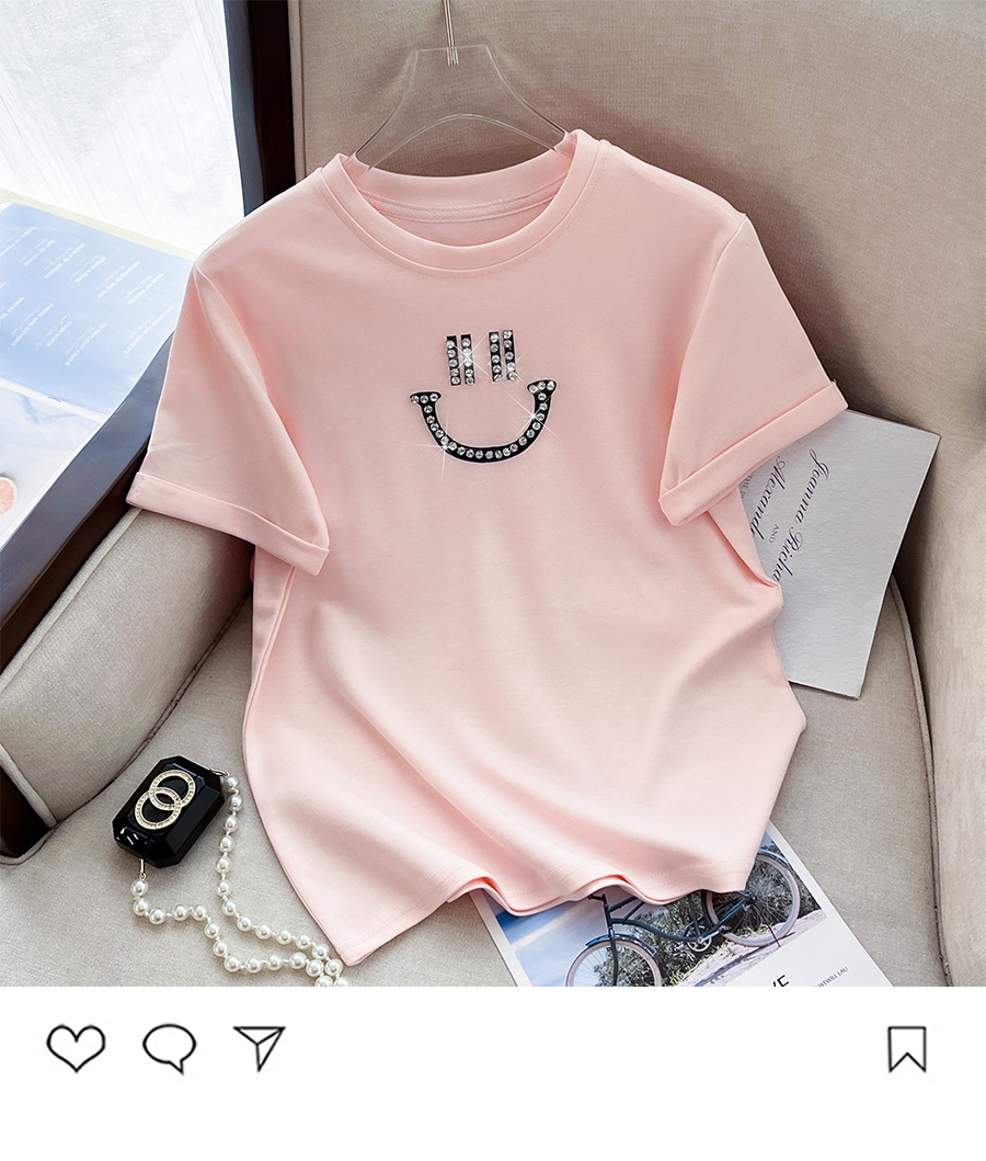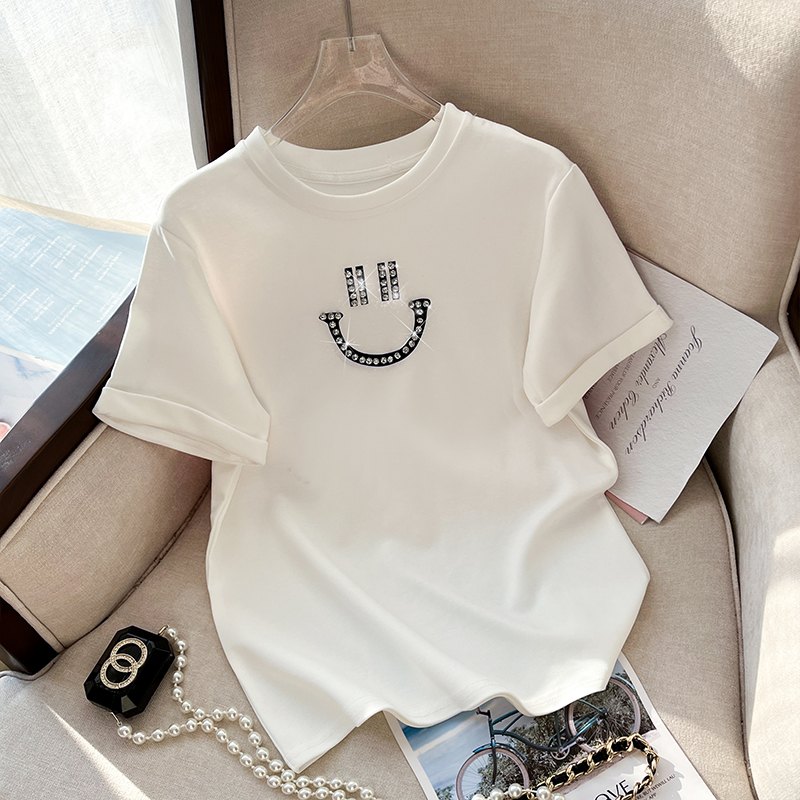 RM32707#新款韩版修身短款爆款钉珠笑脸纯棉T恤女简单