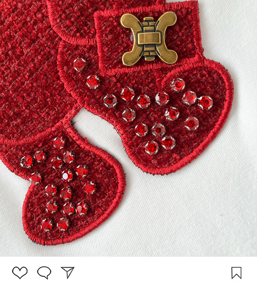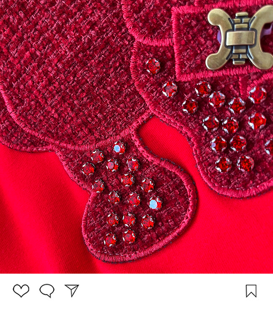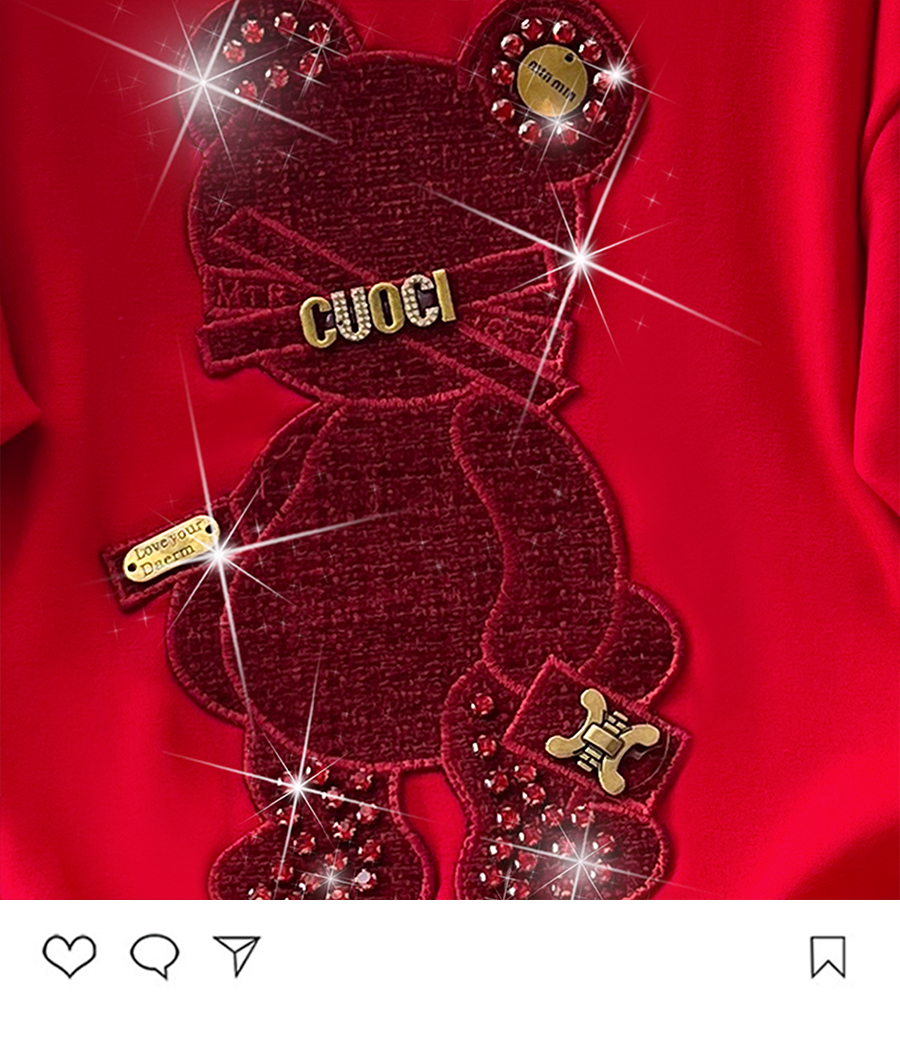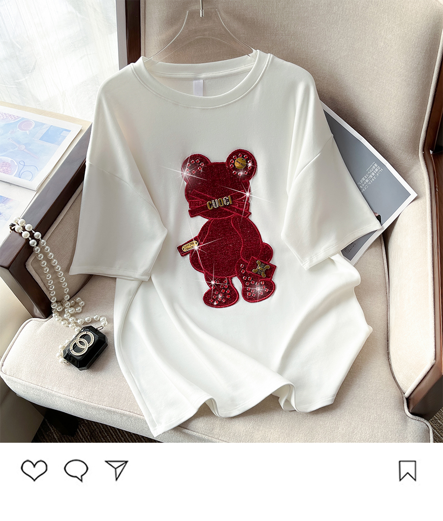 RM32709#新款重工镶钻新年红重磅磨毛纯棉T恤女洋气百搭