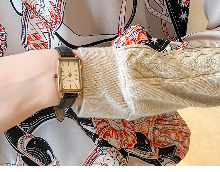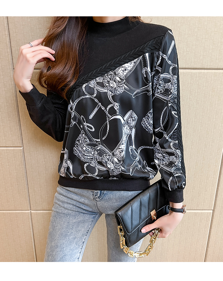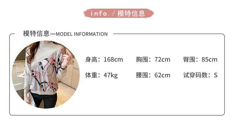 RM32732#半高领印花复古针织衫女式上衣2024春季新款宽松套头拼接毛衣