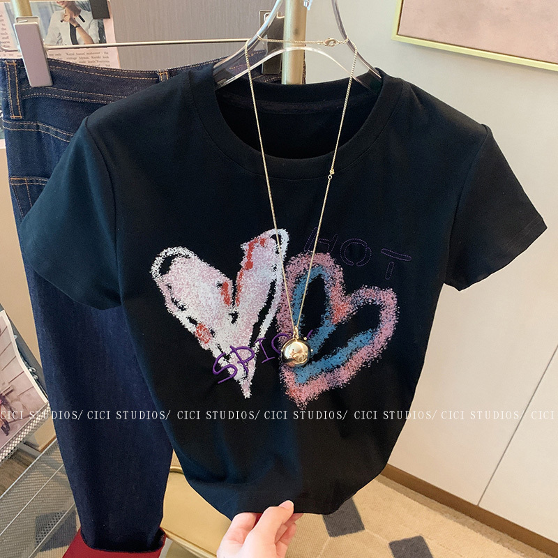 RM32742#92棉/8氨纶40支210g纯棉 修身短款T恤女短袖