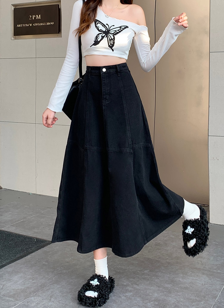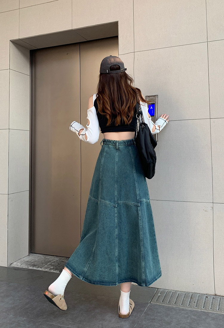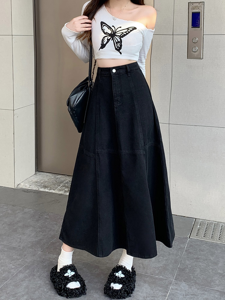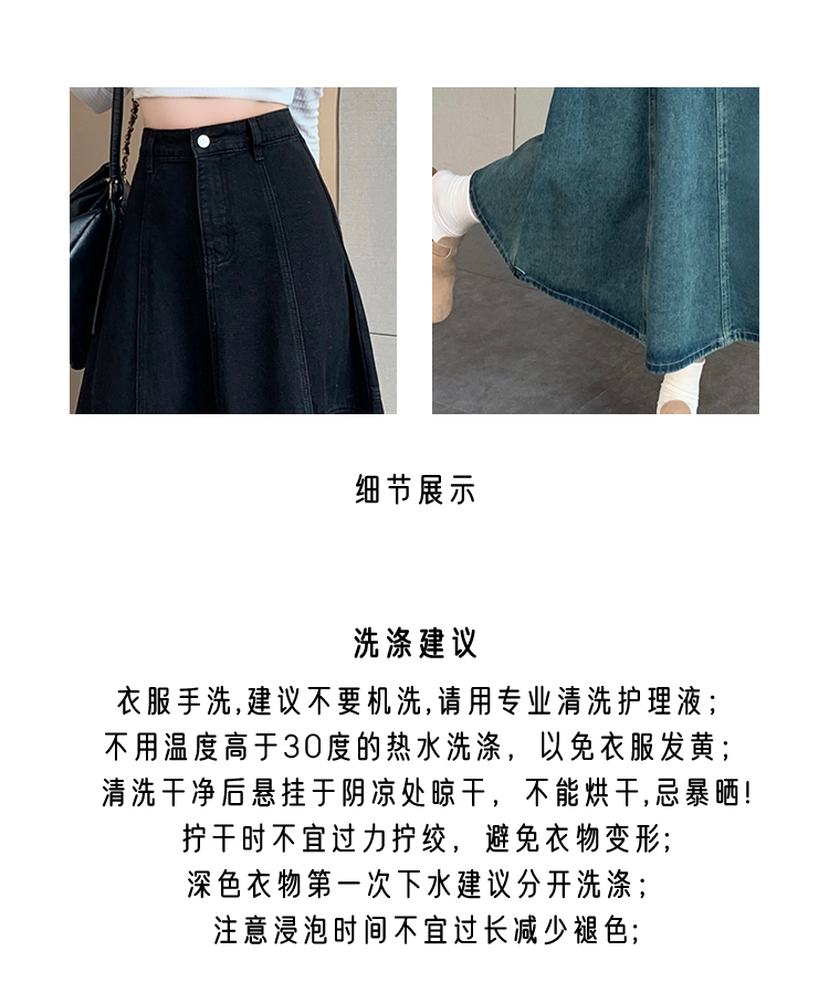 RM32765#新款胖mm大码女装高腰宽松复古中长款a字牛仔半身裙