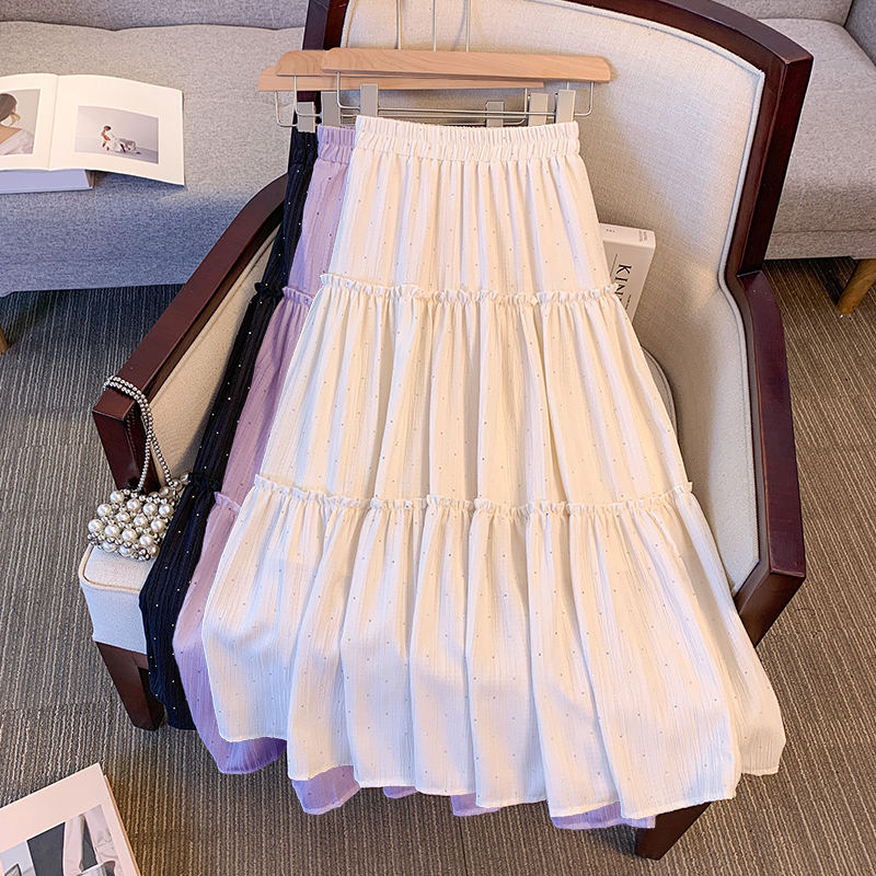 RM32775#大码女装春夏新款设计感镶钻半身裙高腰显瘦遮肉蛋糕裙A字裙