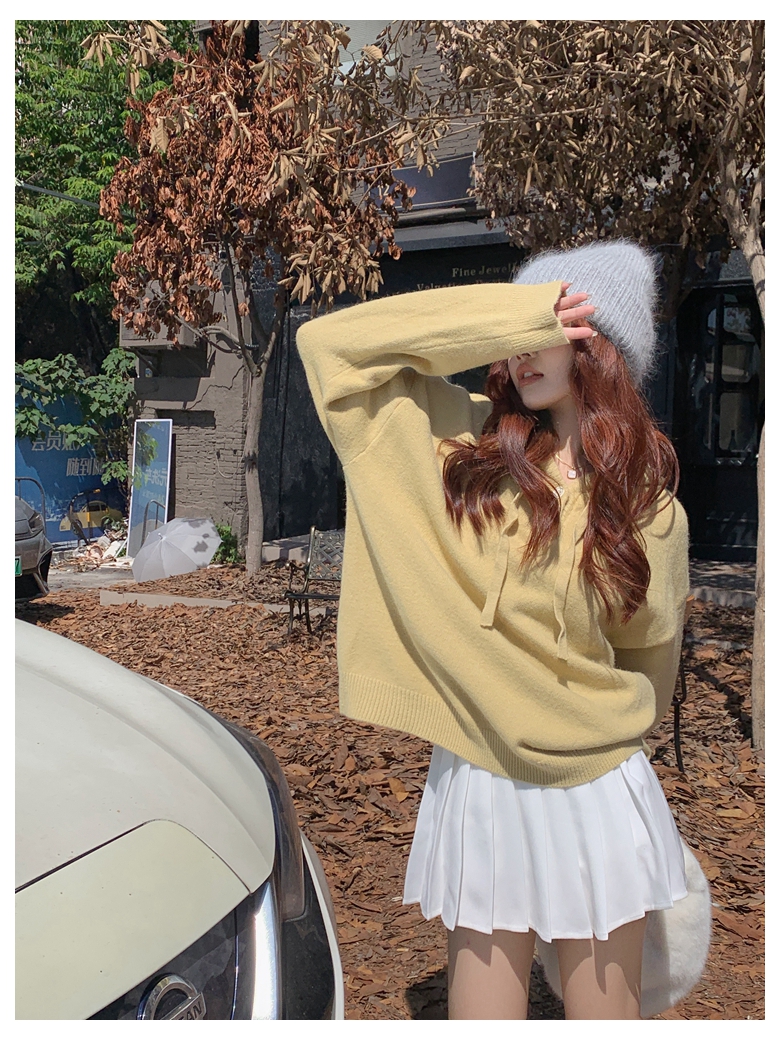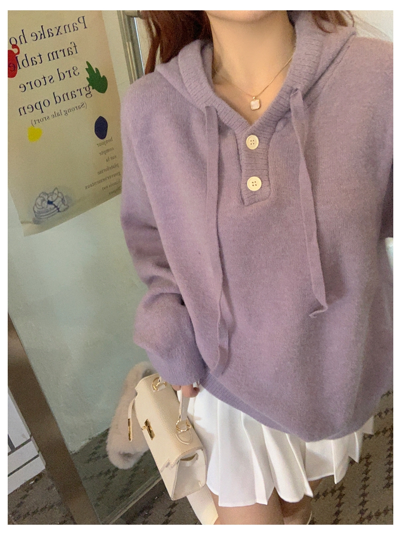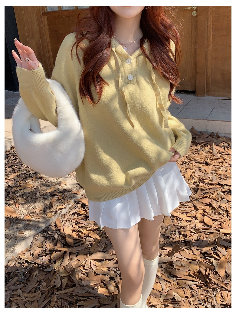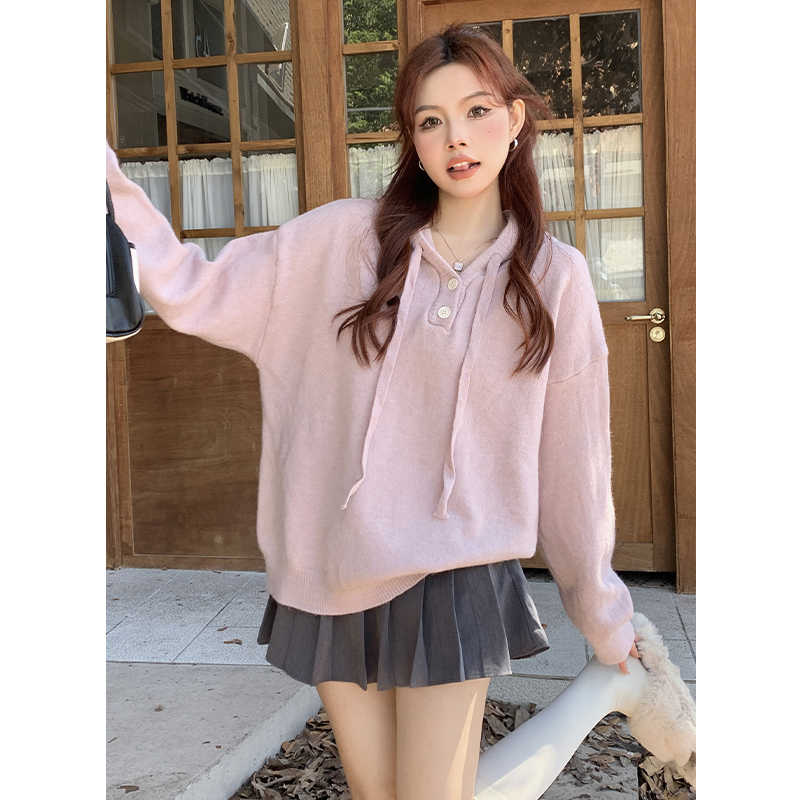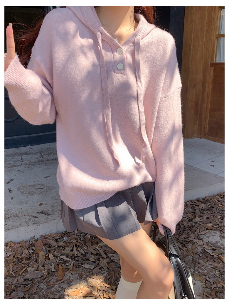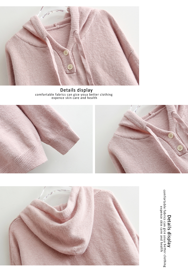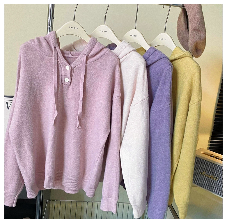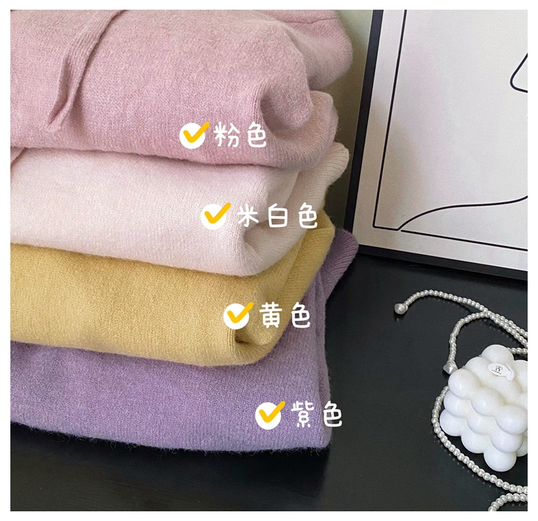 RM32777#韩版休闲风抽绳长袖连帽百搭糖果色套头毛衣