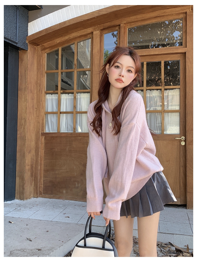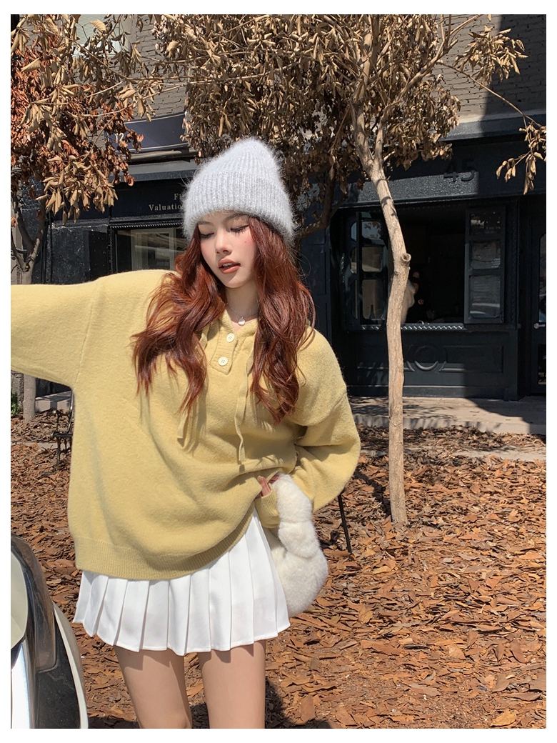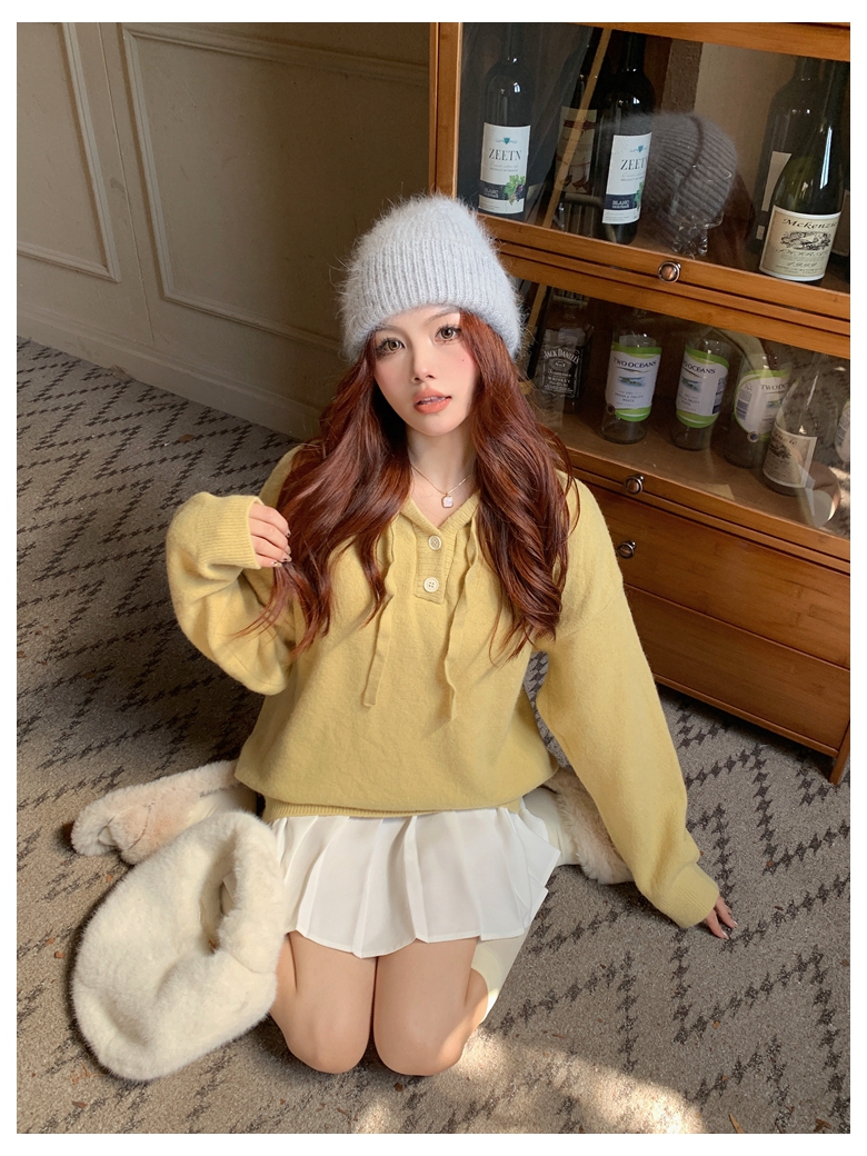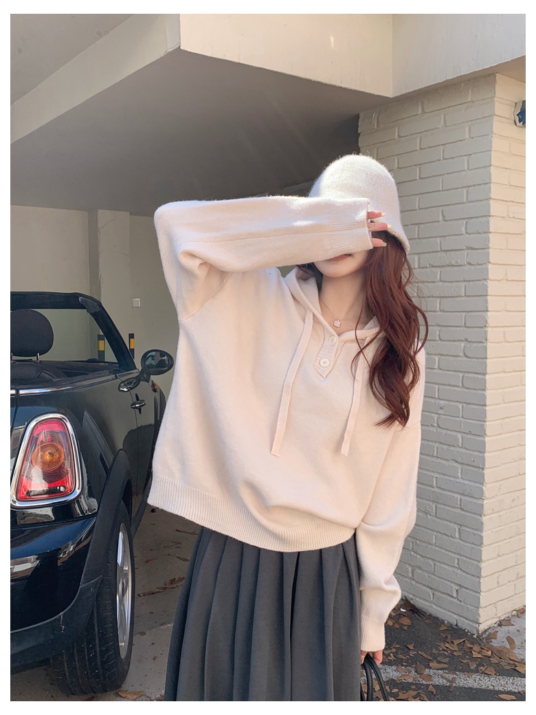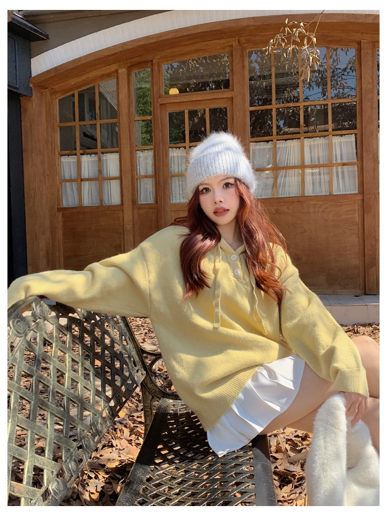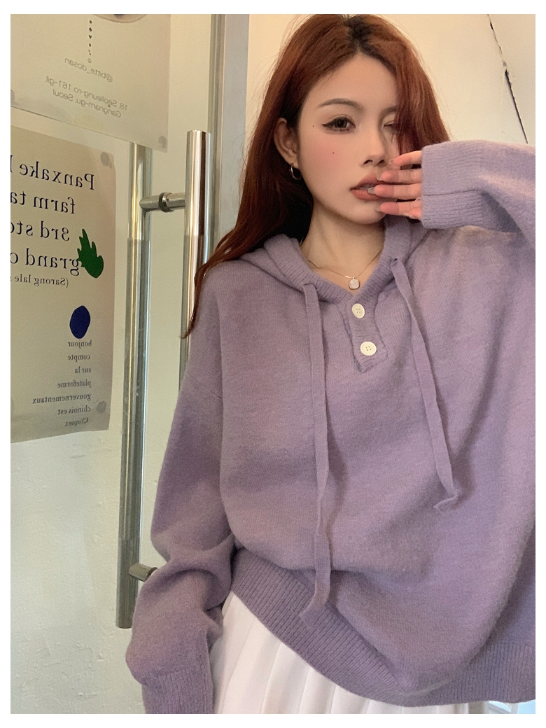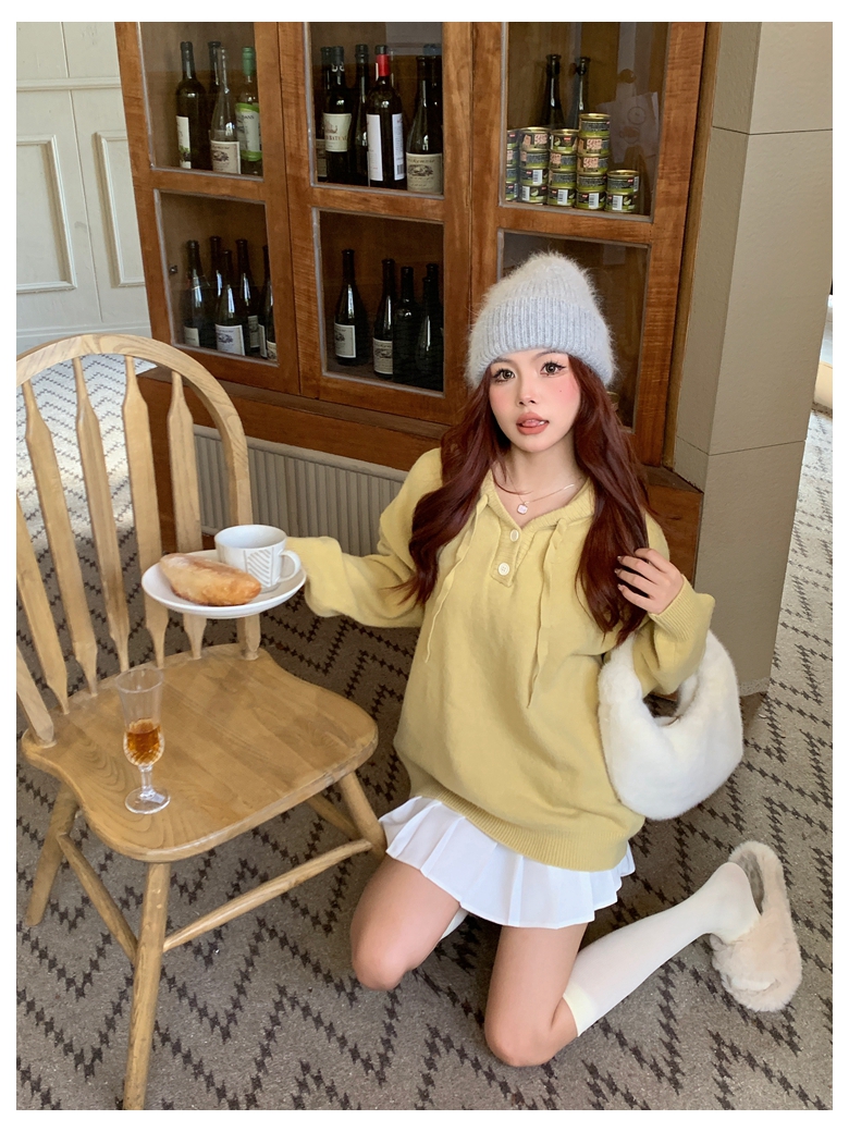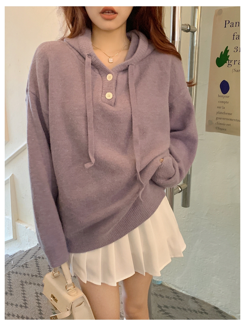 RM32777#韩版休闲风抽绳长袖连帽百搭糖果色套头毛衣