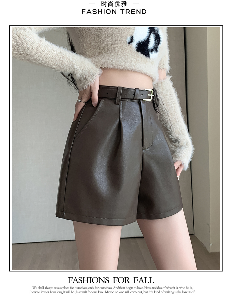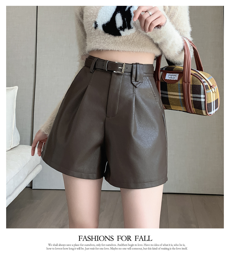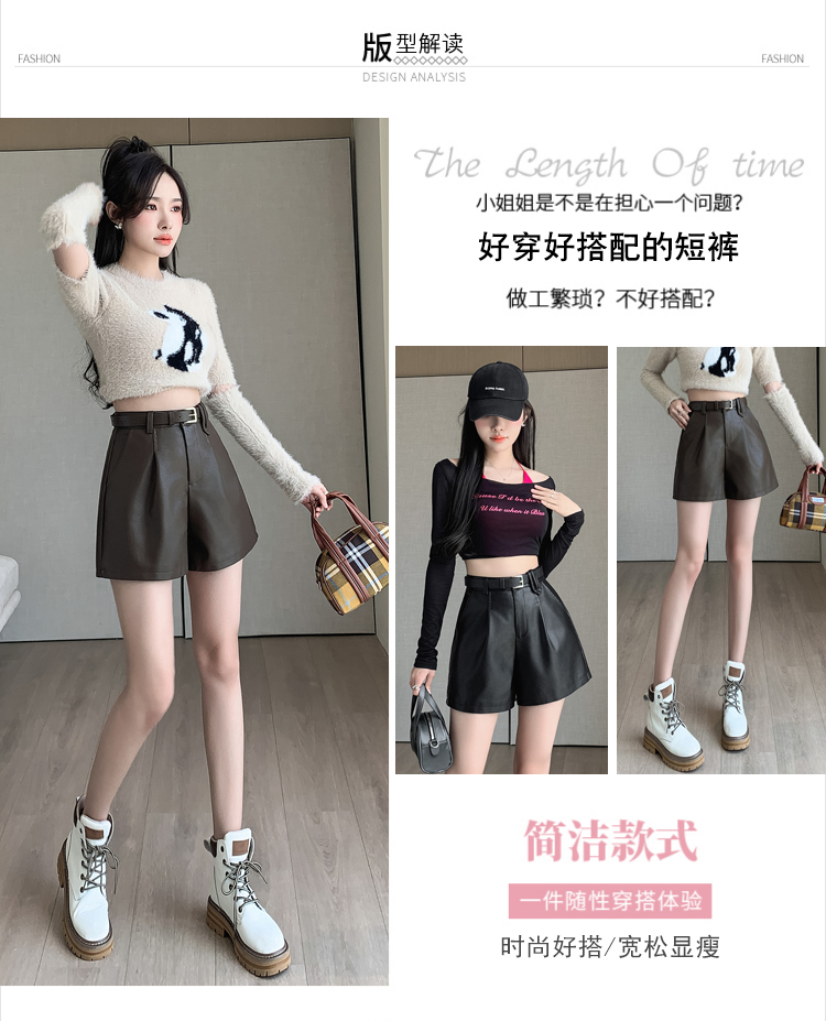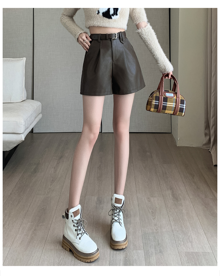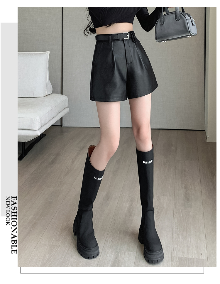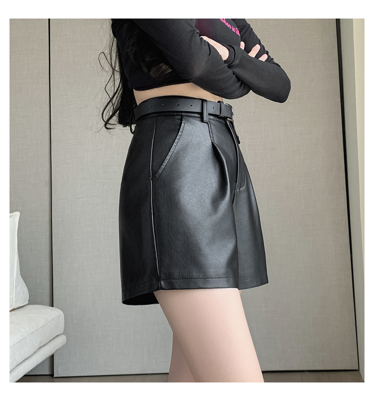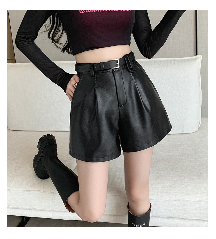 RM32806#高腰PU皮短裤女 新款休闲短款设计感高腰显瘦阔腿打底靴裤