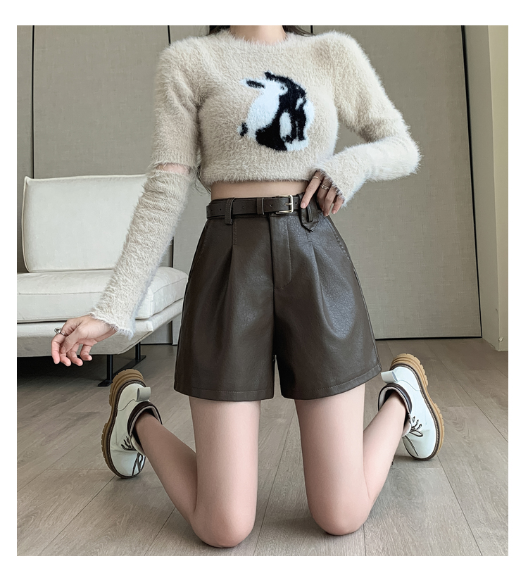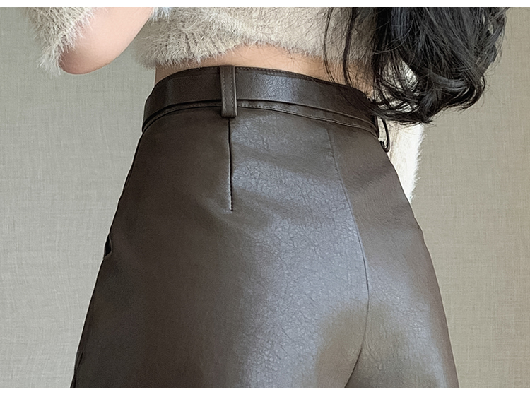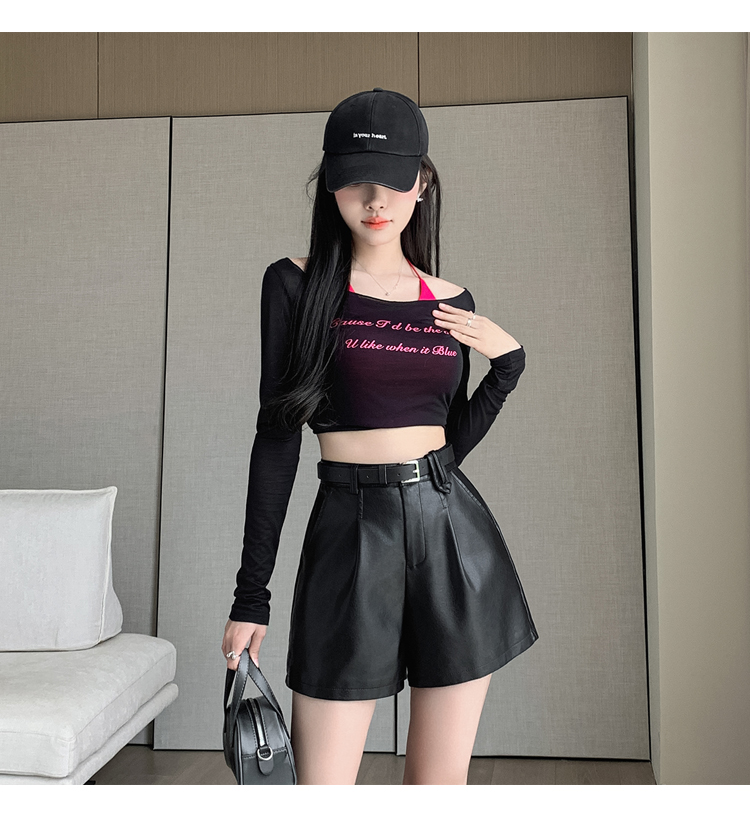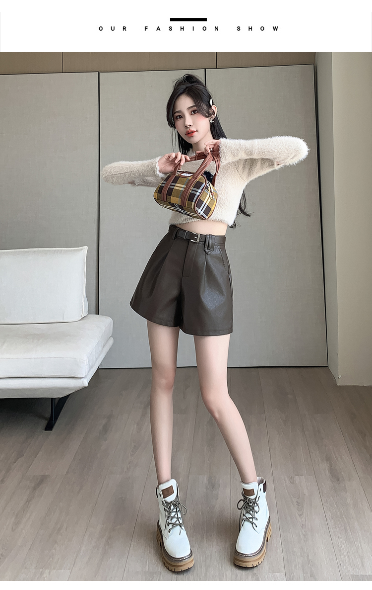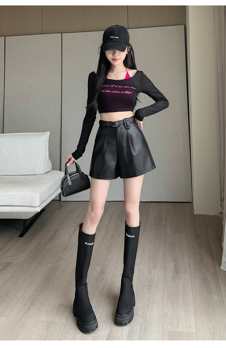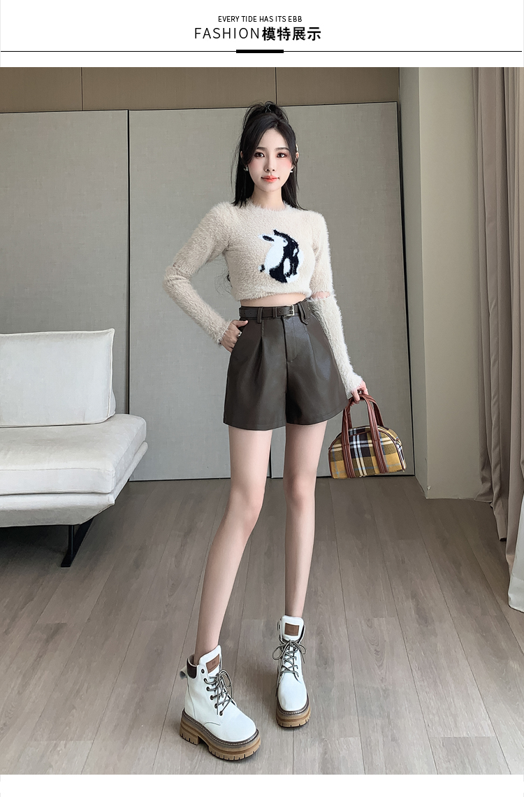 RM32806#高腰PU皮短裤女 新款休闲短款设计感高腰显瘦阔腿打底靴裤