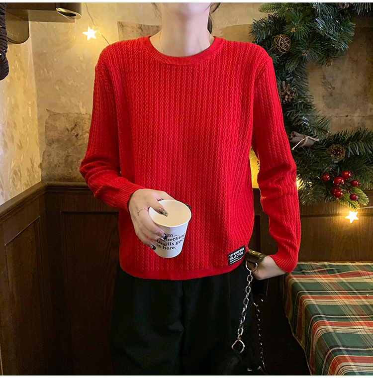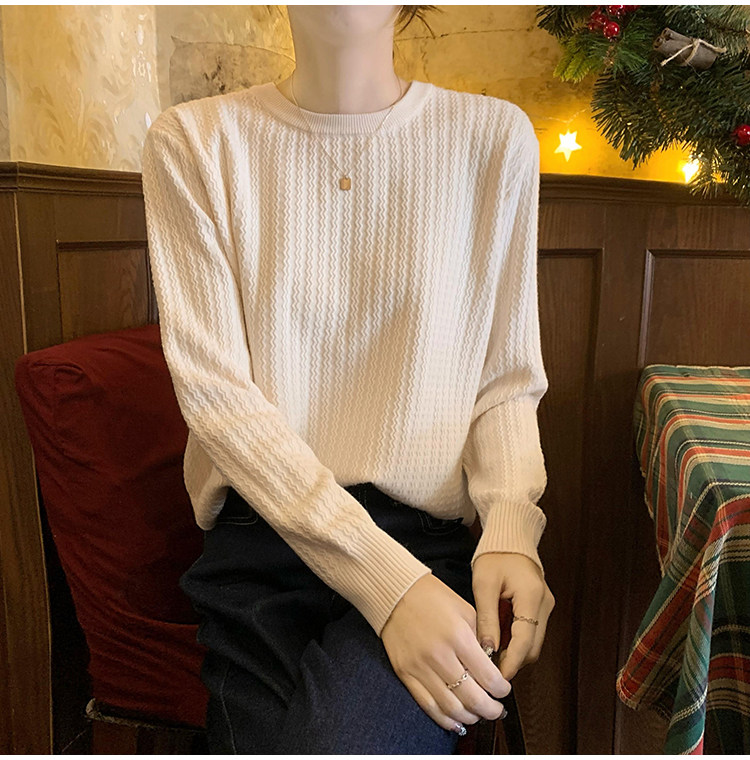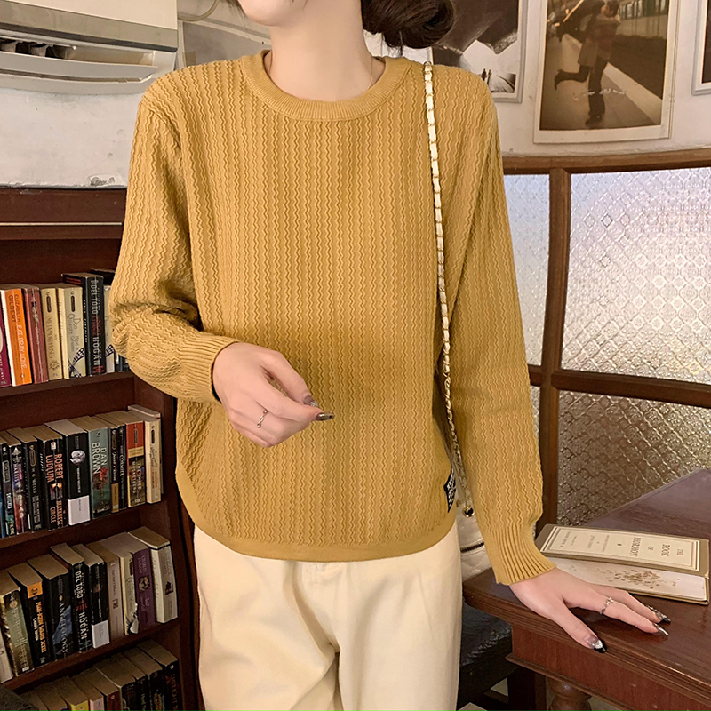 RM32865#韩版新款简约纯色圆领套头百搭螺纹针织毛衣打底衫