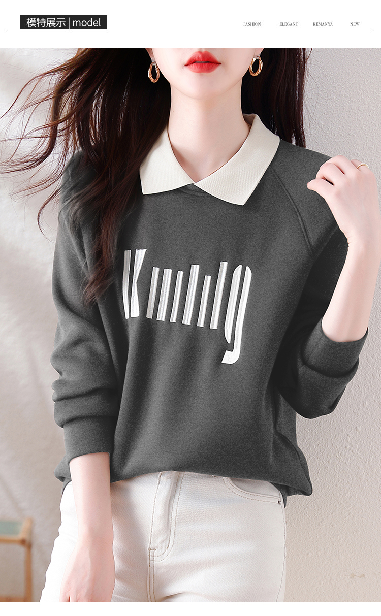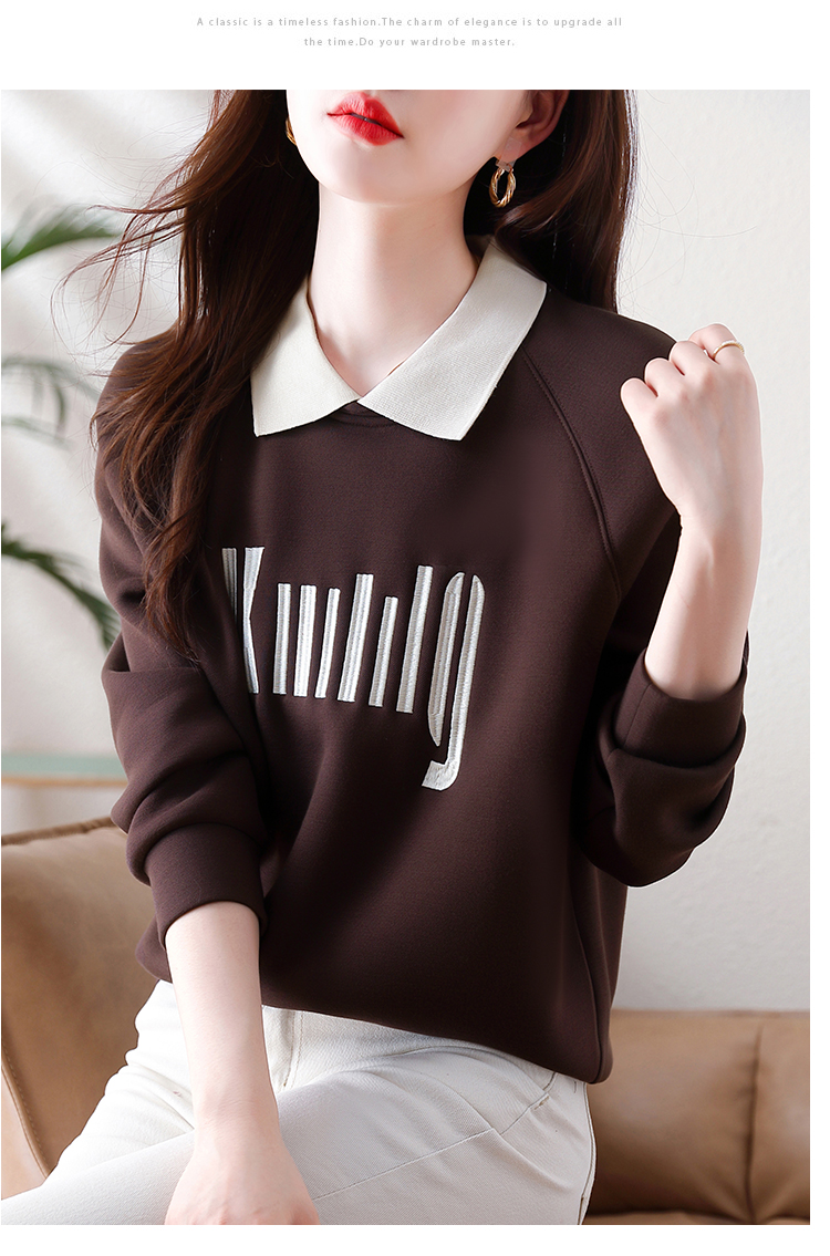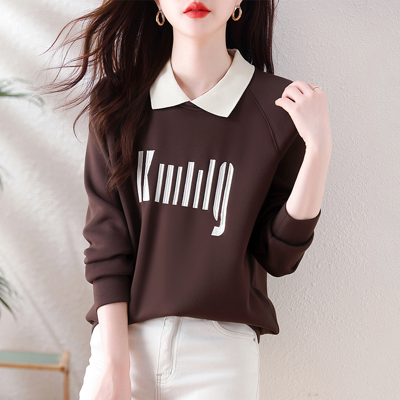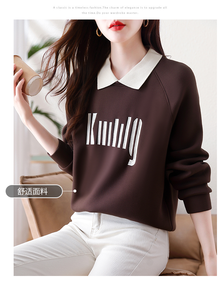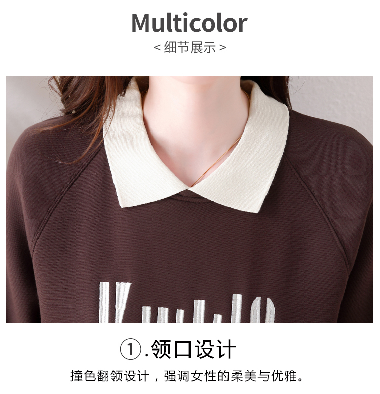 RM32919#通勤长袖套头咖啡色卫衣女假两件宽松百搭显瘦太空棉上衣