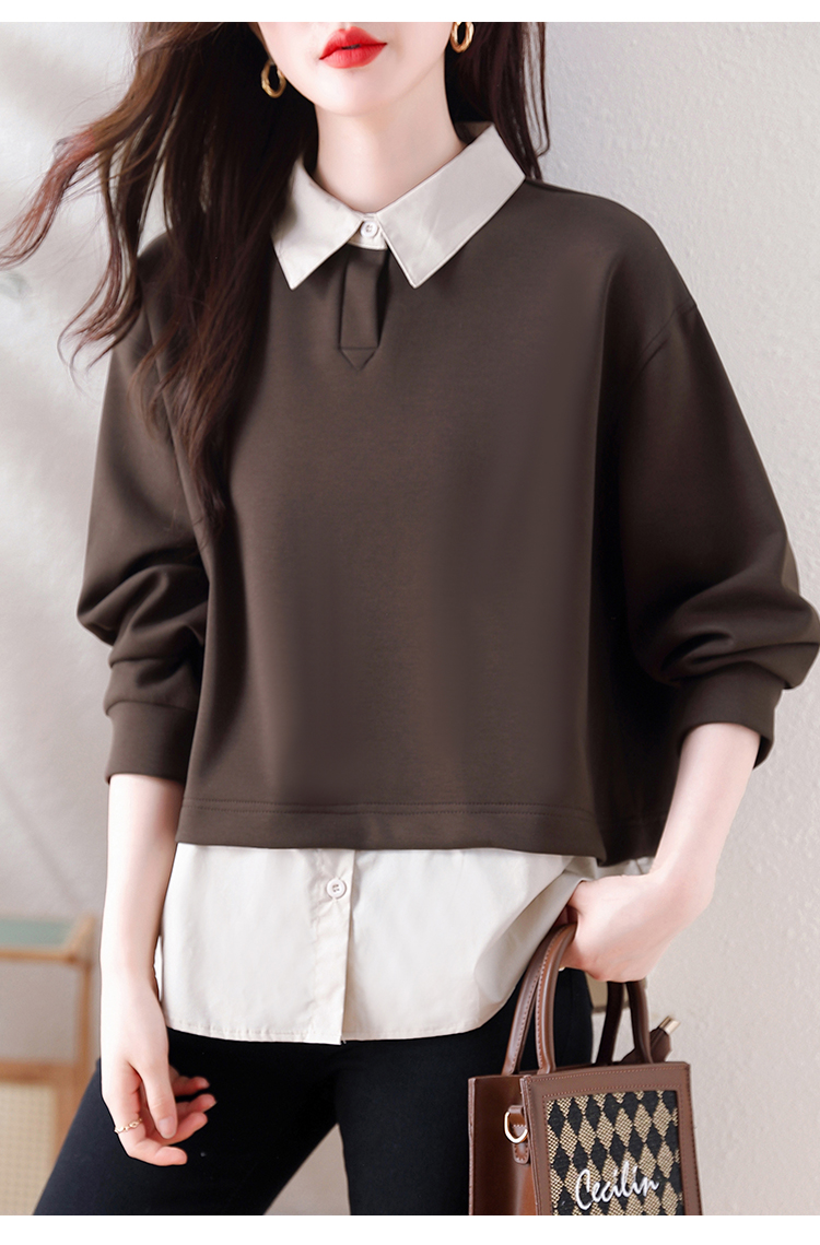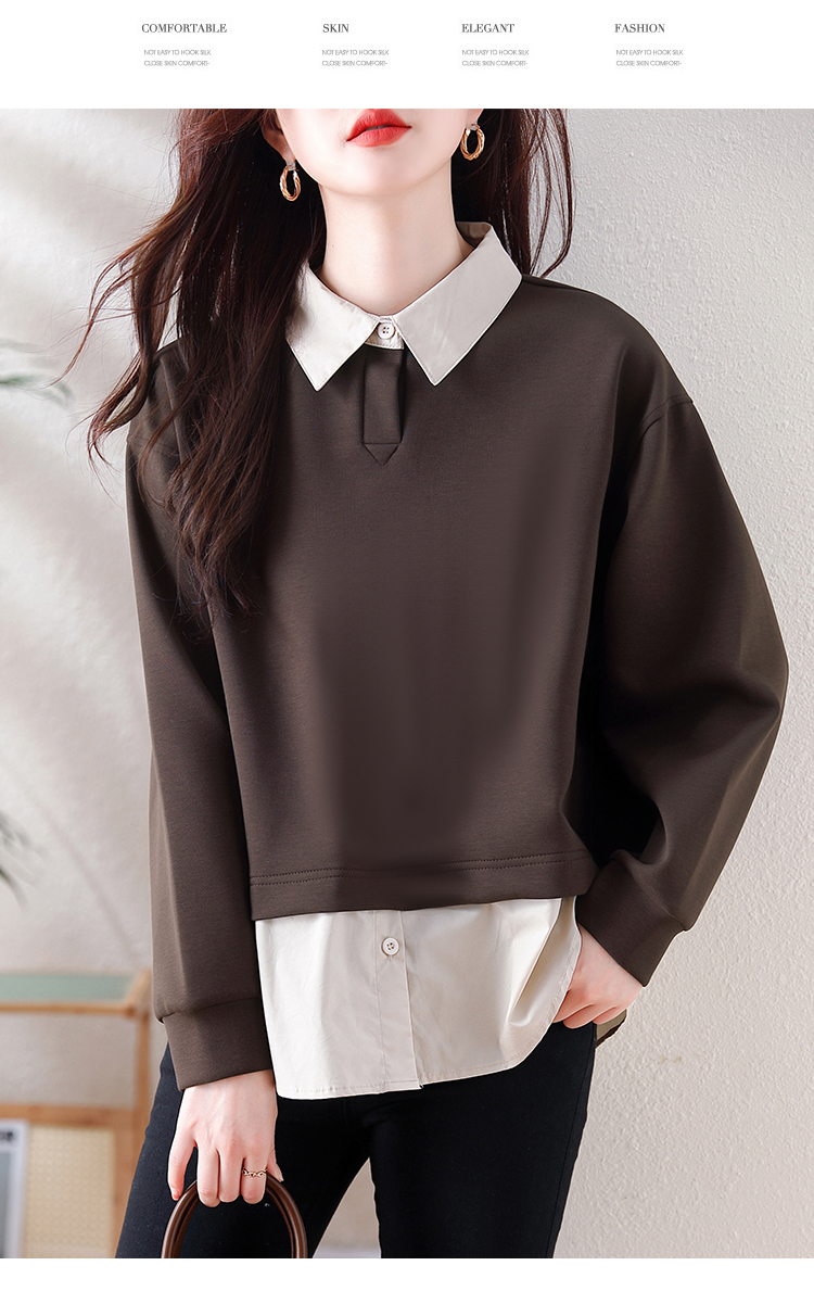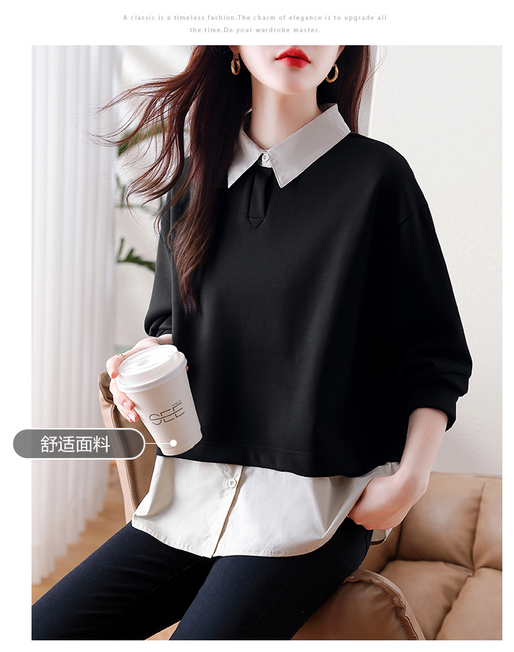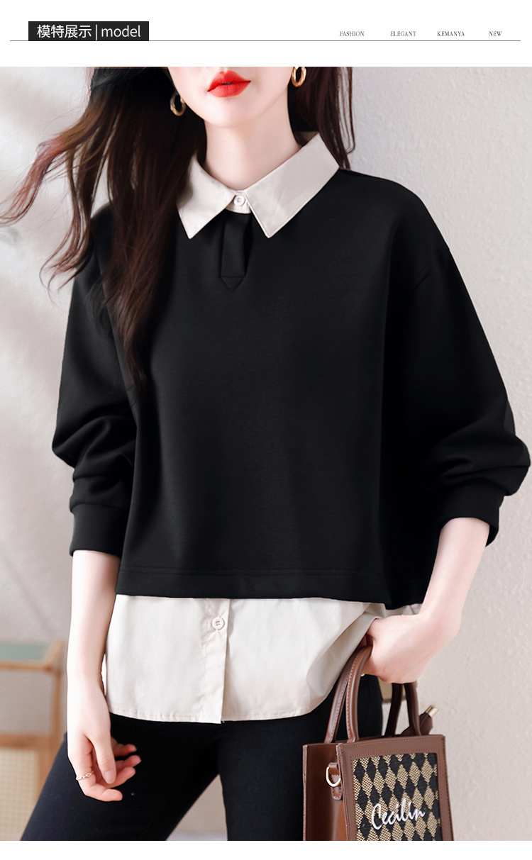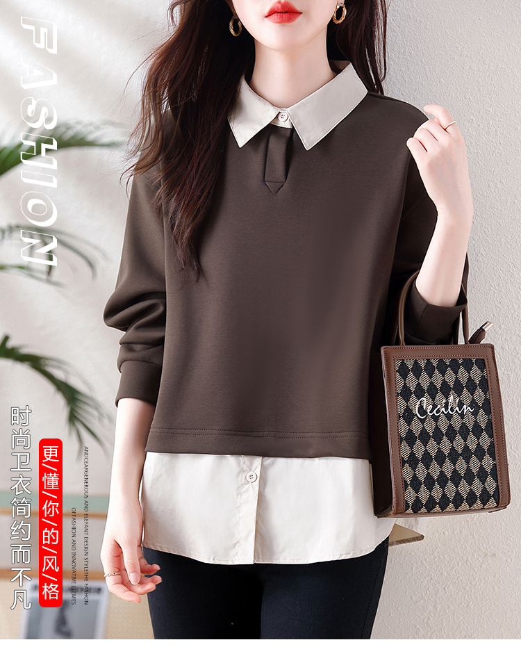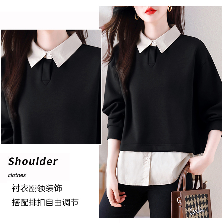 RM32920#欧货春款2024新款高级感百搭假两件卫衣女拼接衬衫设计感上衣