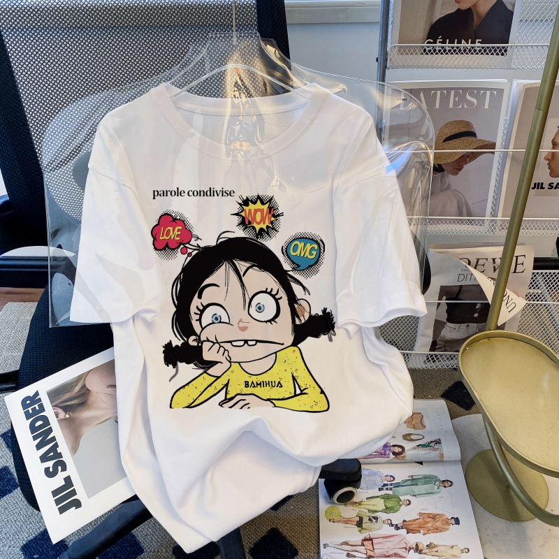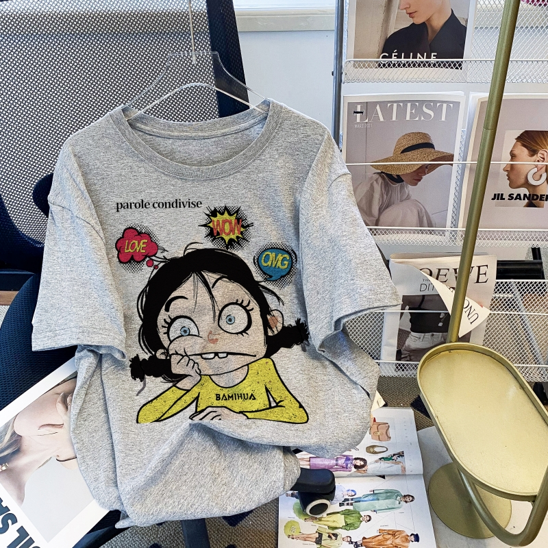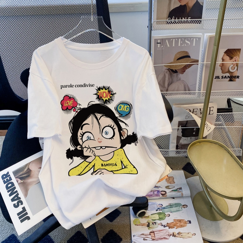 RM32935#100%棉200g精梳纯棉大码 夏季短袖t恤女学院风宽松韩版