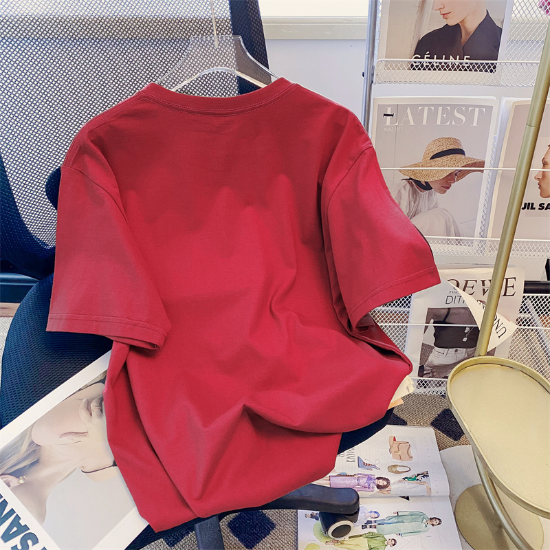 RM32944#S-3XL 100%棉200g精梳纯棉大码 夏季短袖t恤女学院风宽松韩版