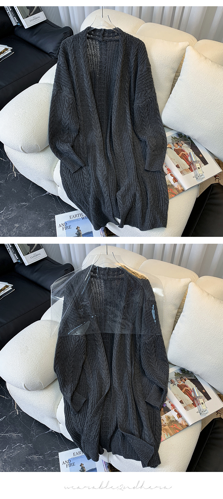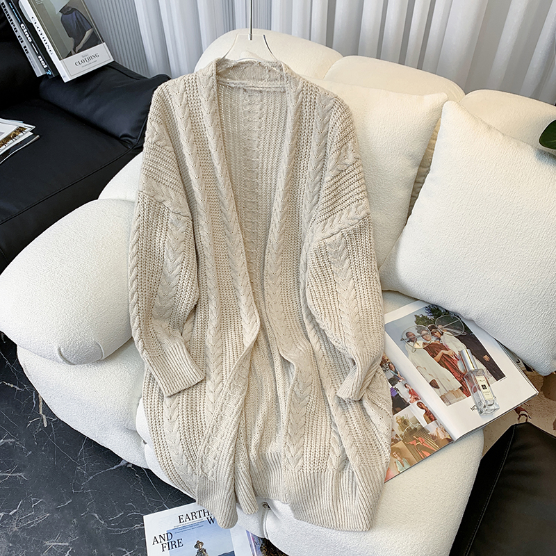 RM32949#复古日系毛衣外套外穿加厚麻花中长款针织开衫