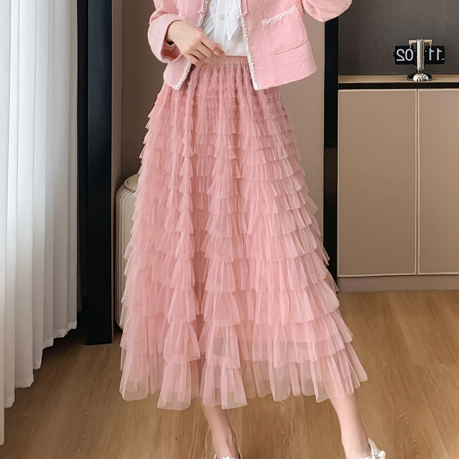 RM32958#新法式温柔风设计感蕾丝百褶蛋糕裙网纱半身裙