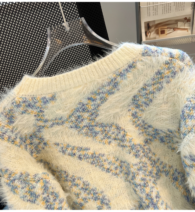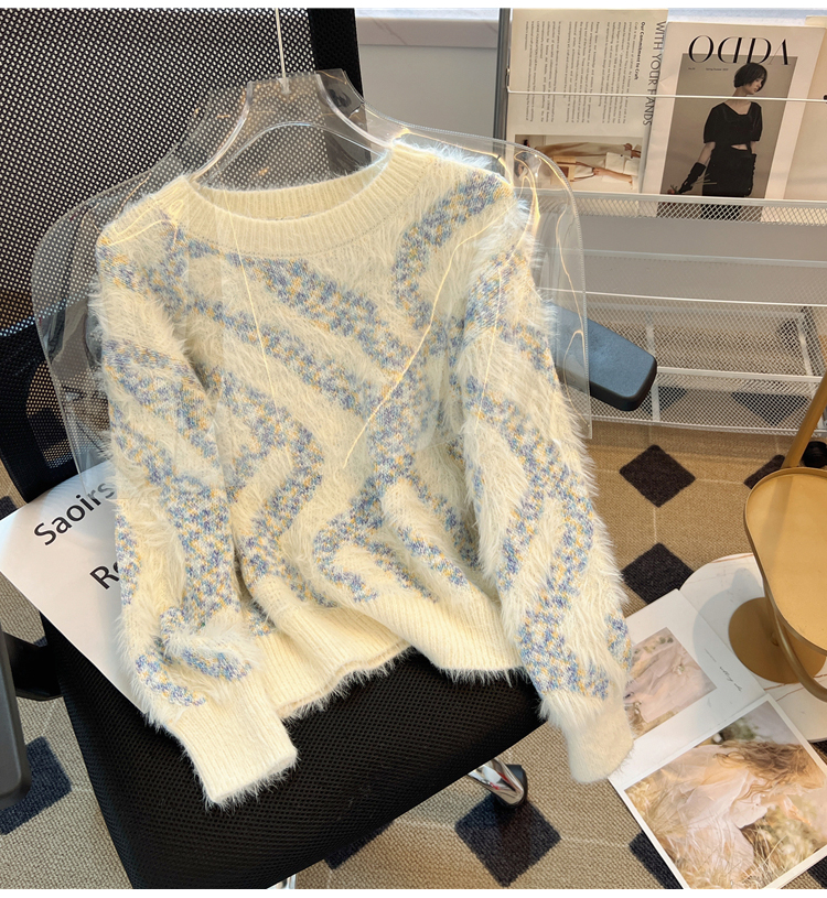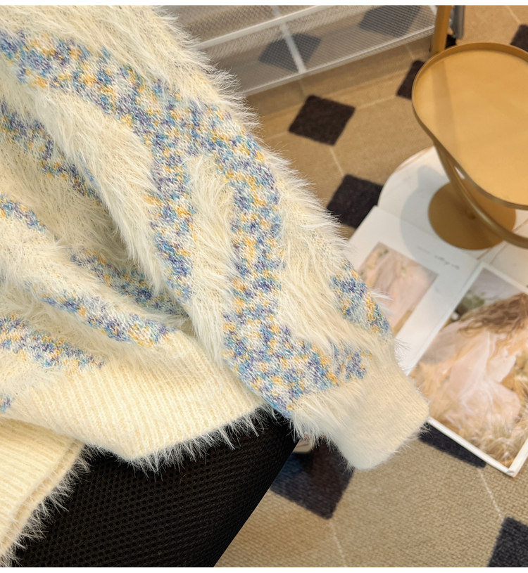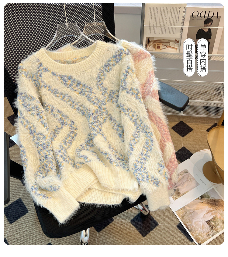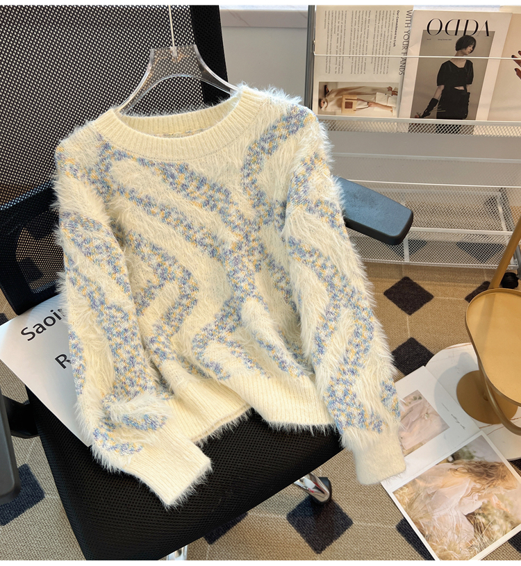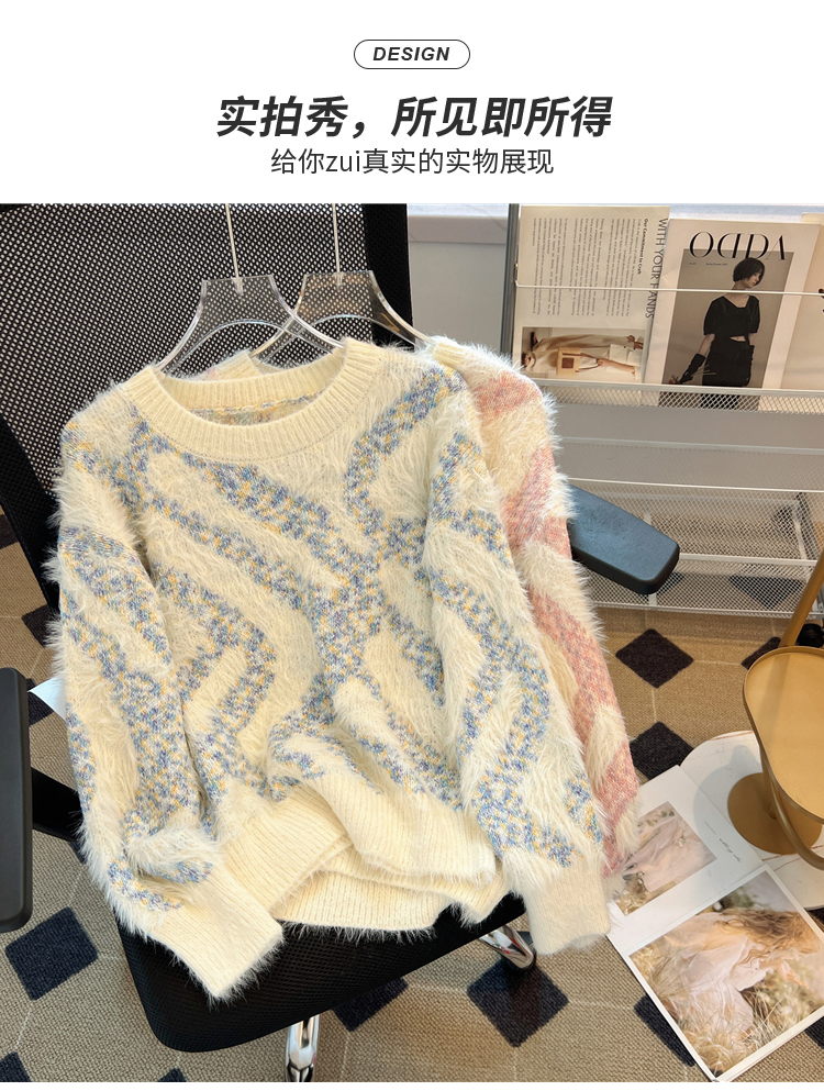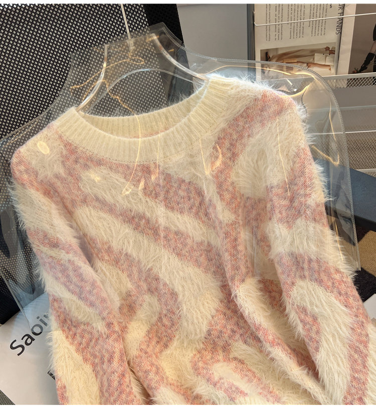 RM32968#不规则条纹设计感炸街毛衣女 马海毛打底针织衫慵懒风上衣加厚