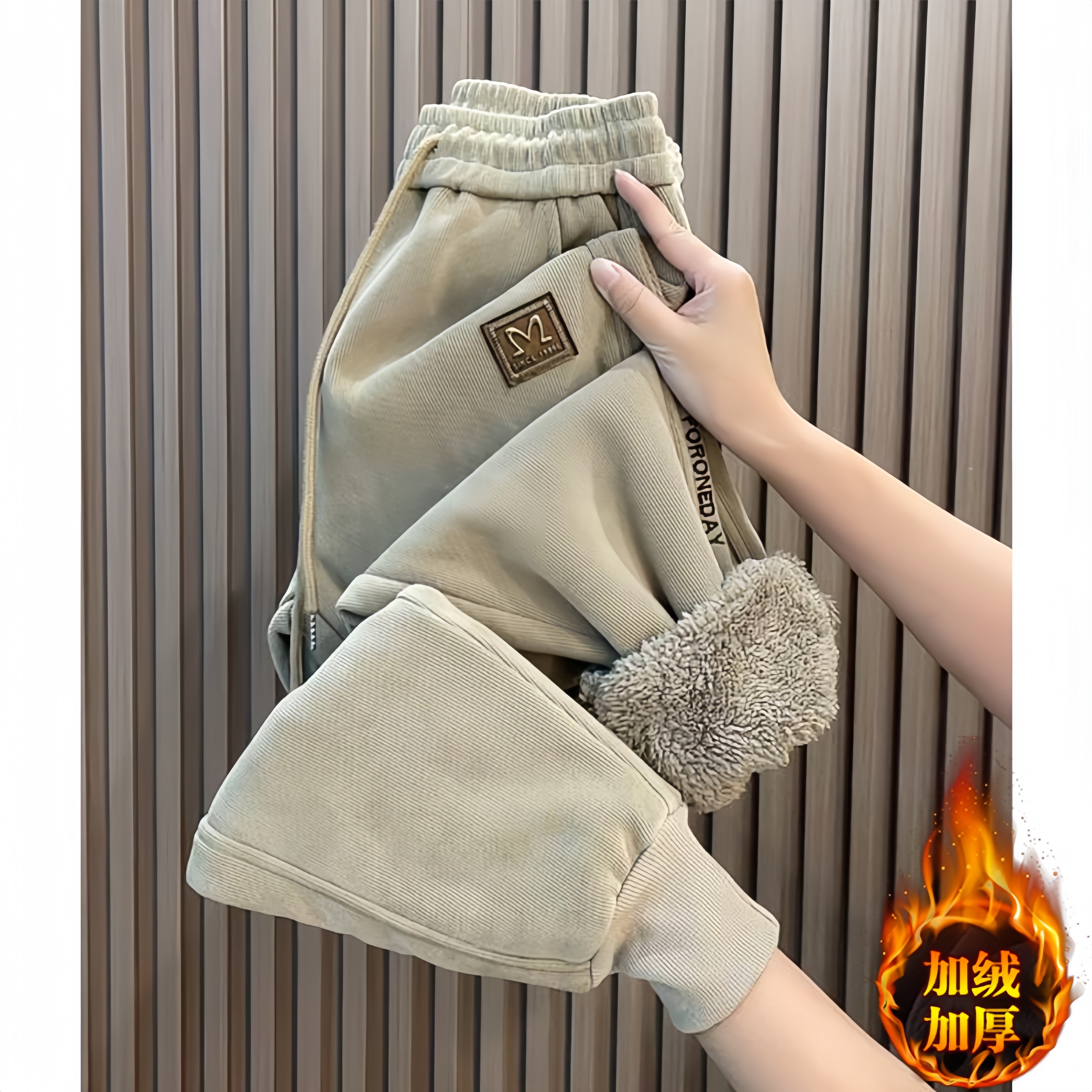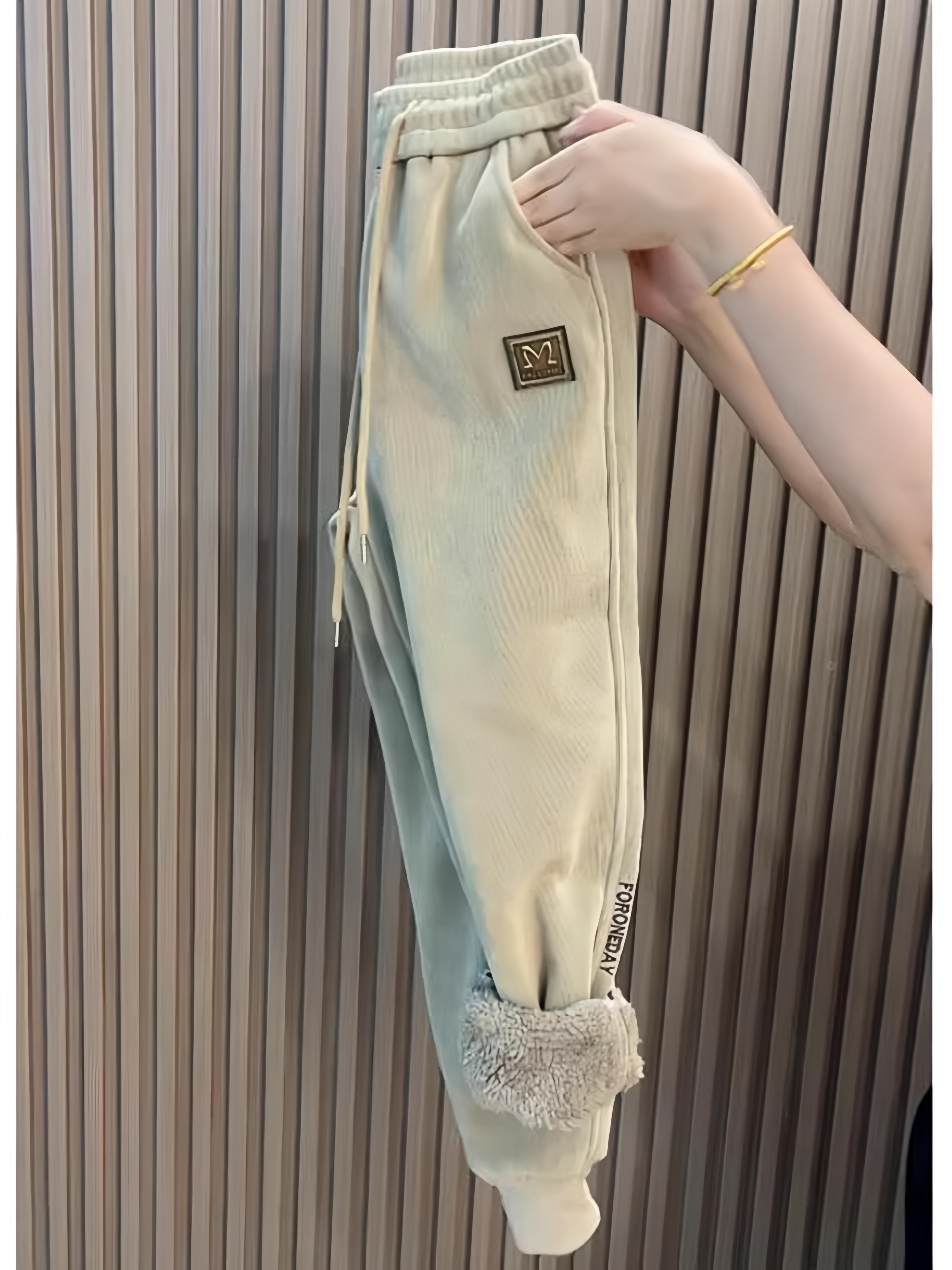 RM32972#羊羔毛绒卫裤女 欧货加绒加厚宽松束脚哈伦裤休闲运动裤子