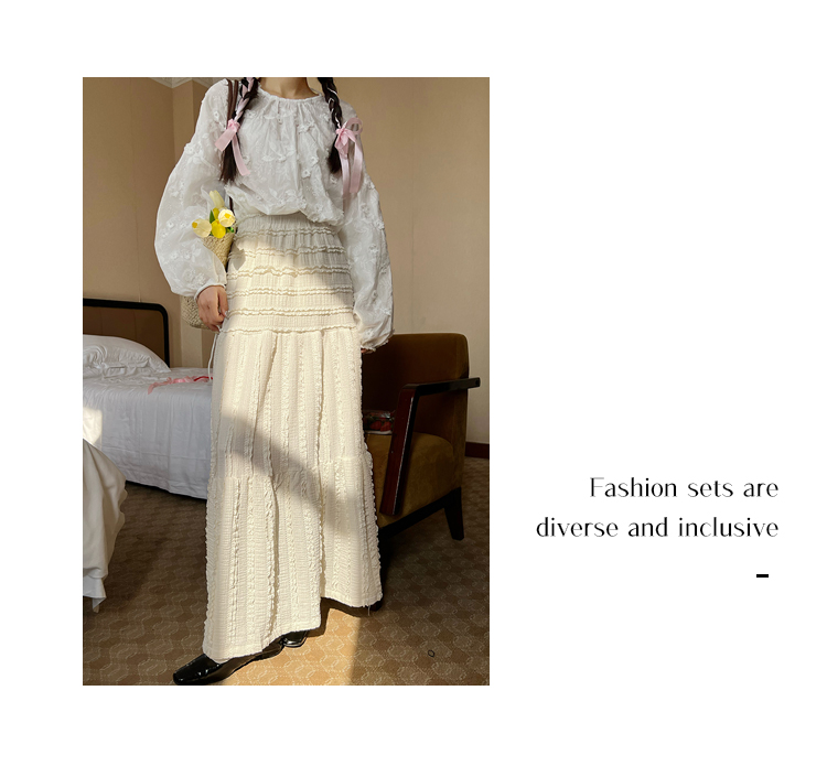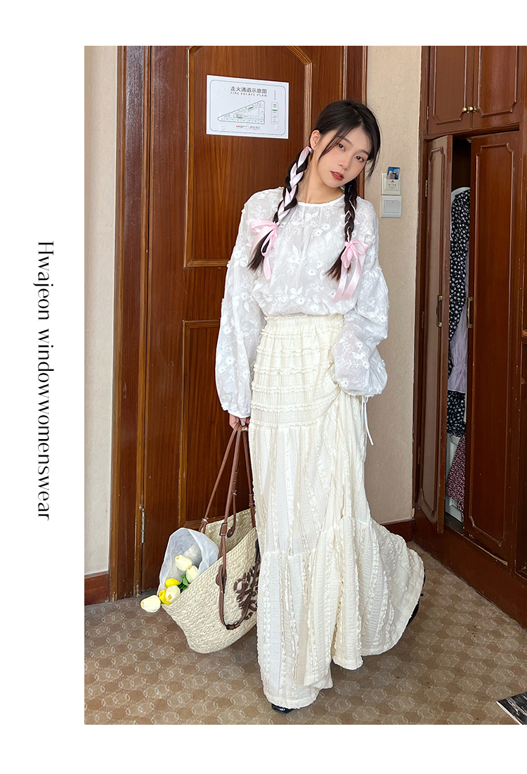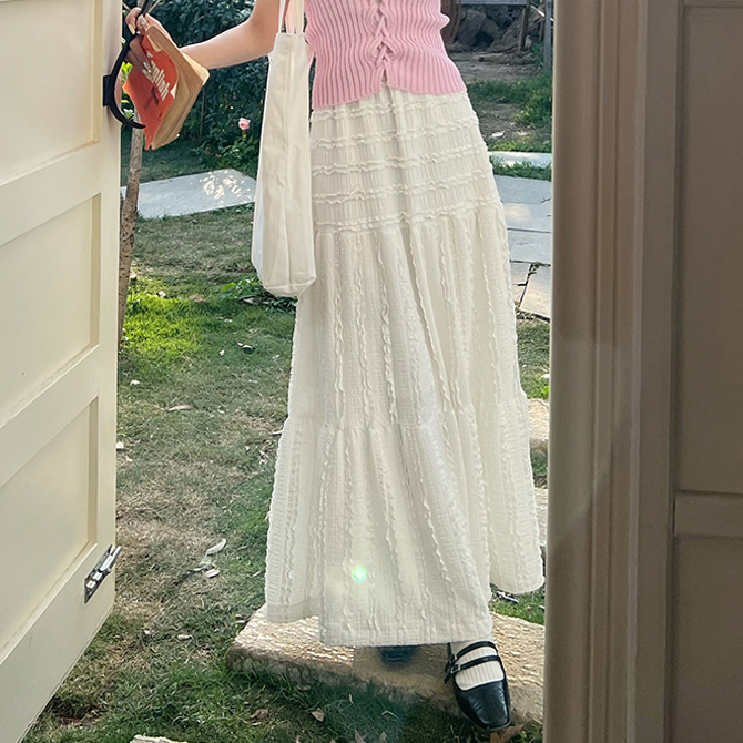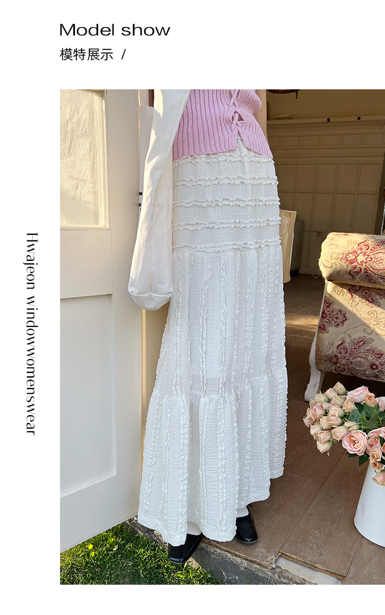 RM33004#花田橱窗HTmeme肌理感半身裙女 新款初恋花边高腰蕾丝中长裙子