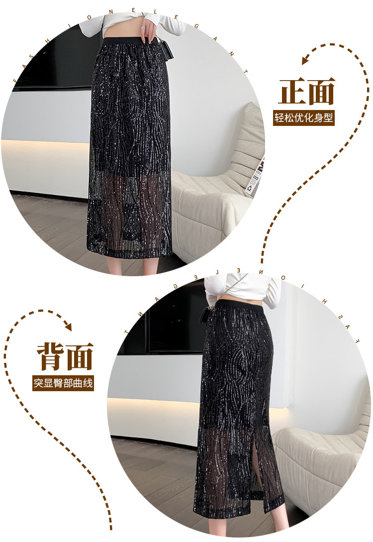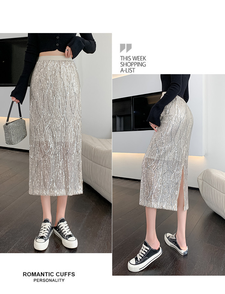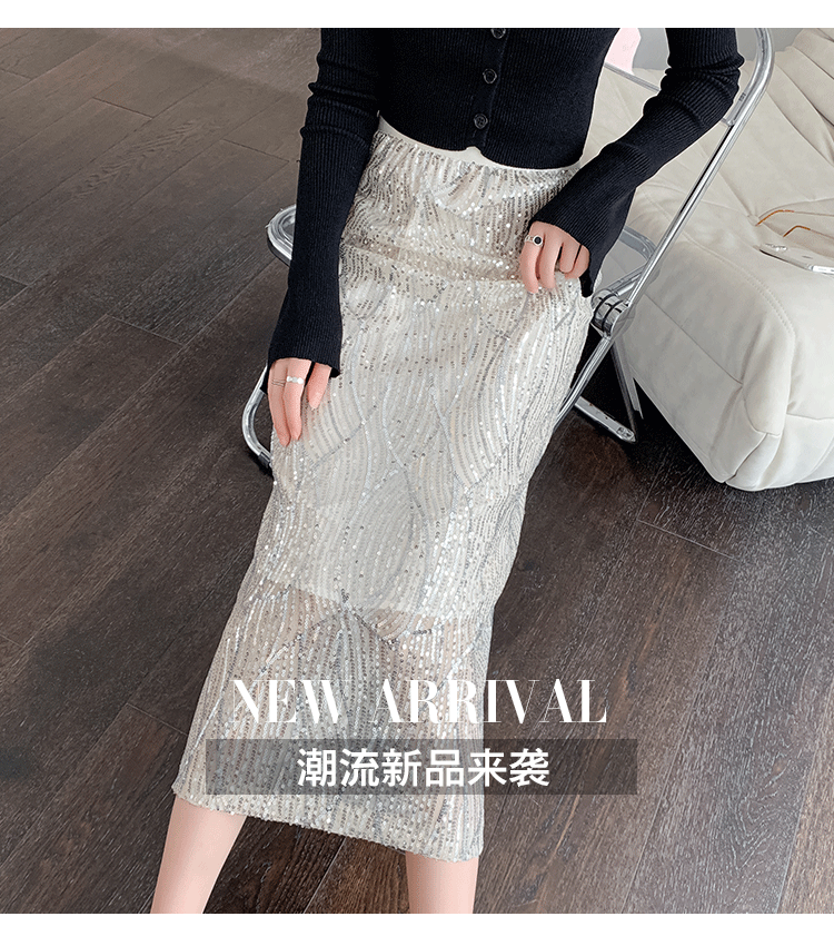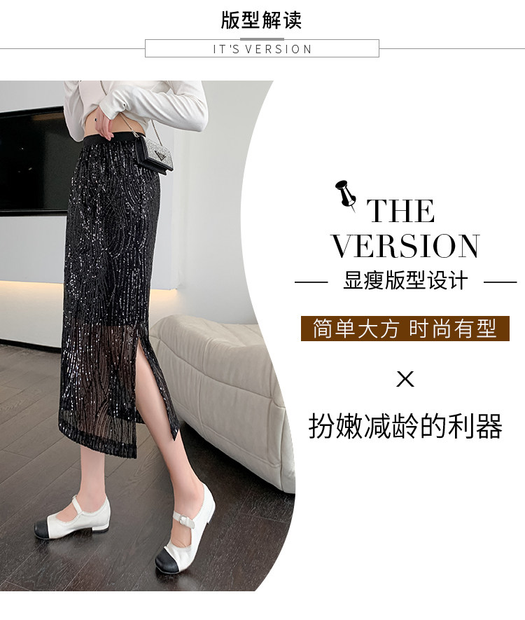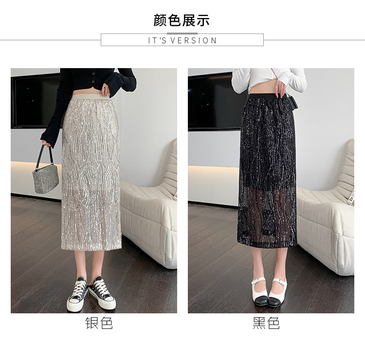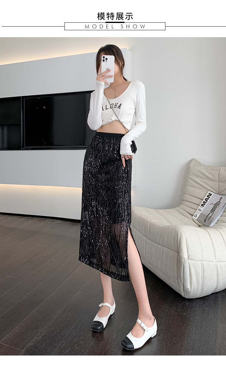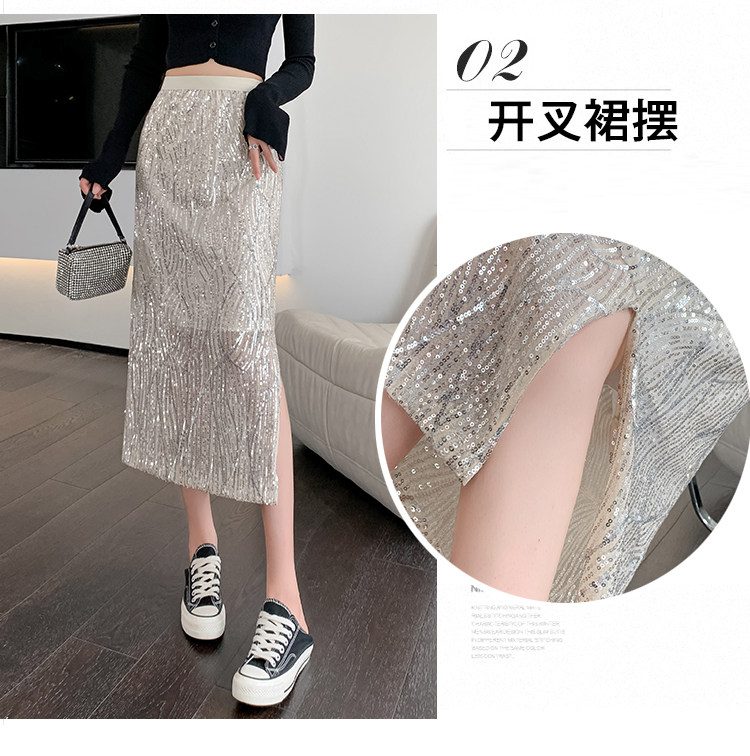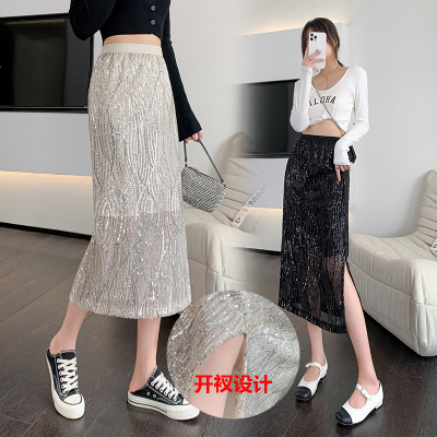 RM33005#亮片半身裙女高腰显瘦百搭开叉长裙一步裙夏设计感小众高级感裙子