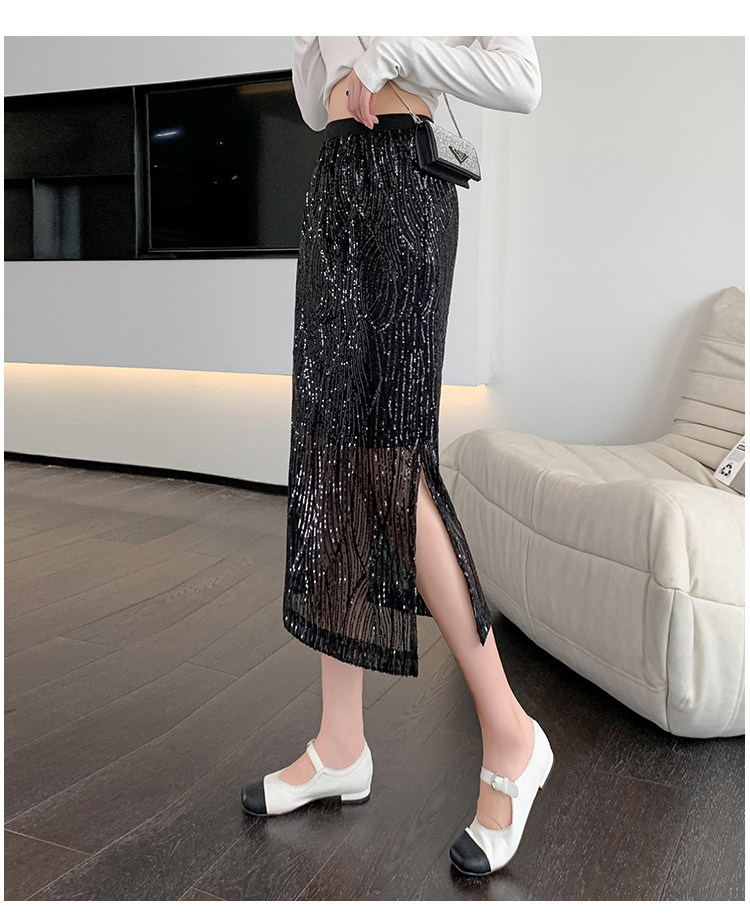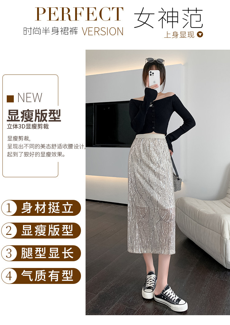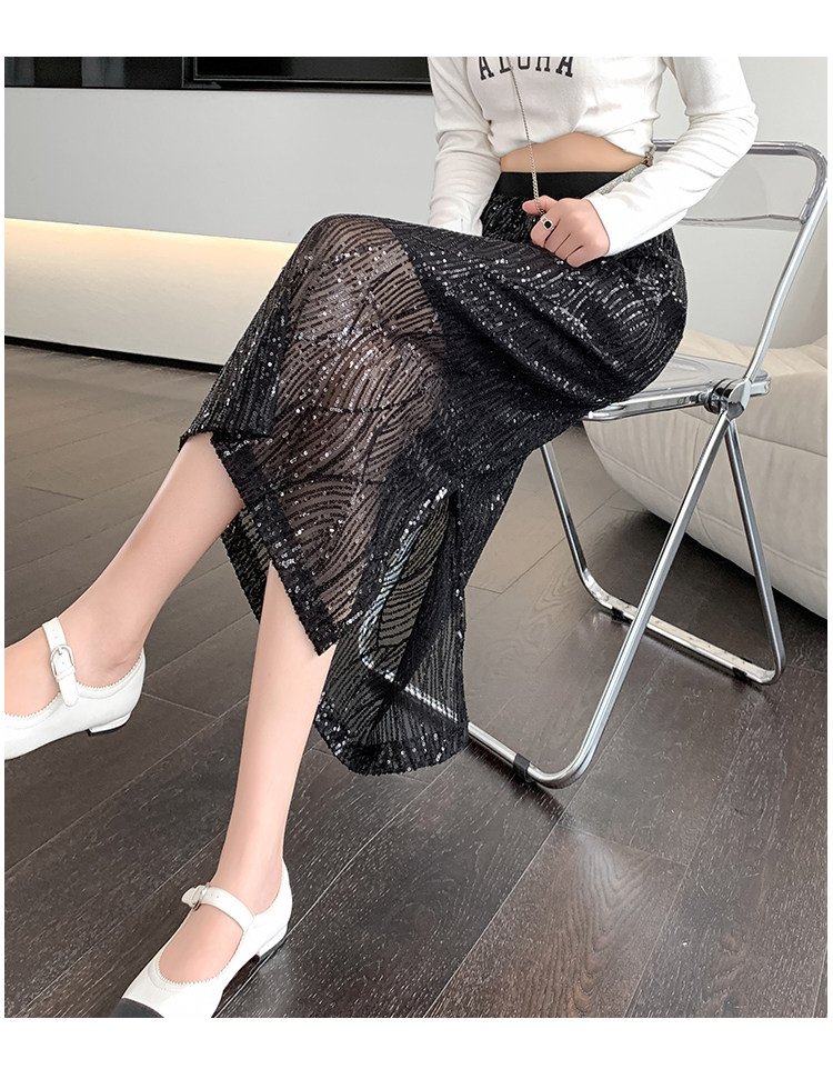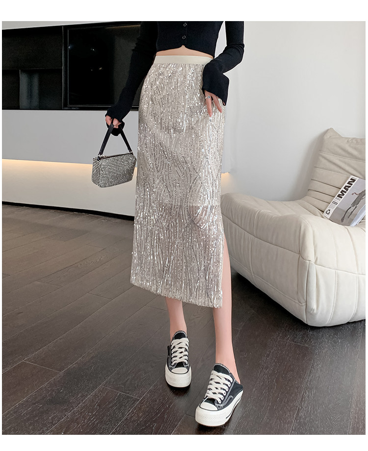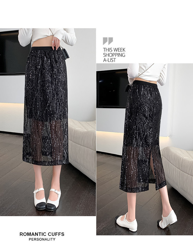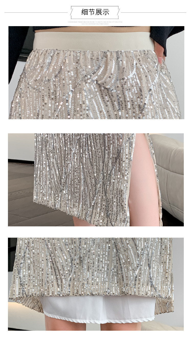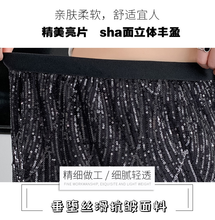 RM33005#亮片半身裙女高腰显瘦百搭开叉长裙一步裙夏设计感小众高级感裙子