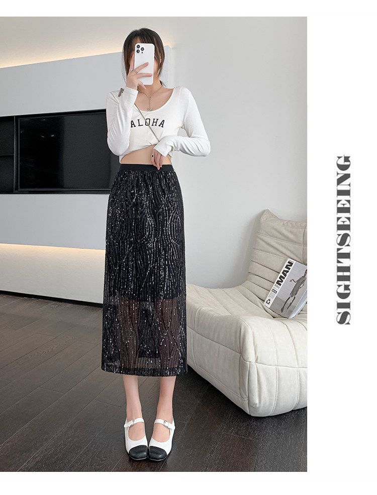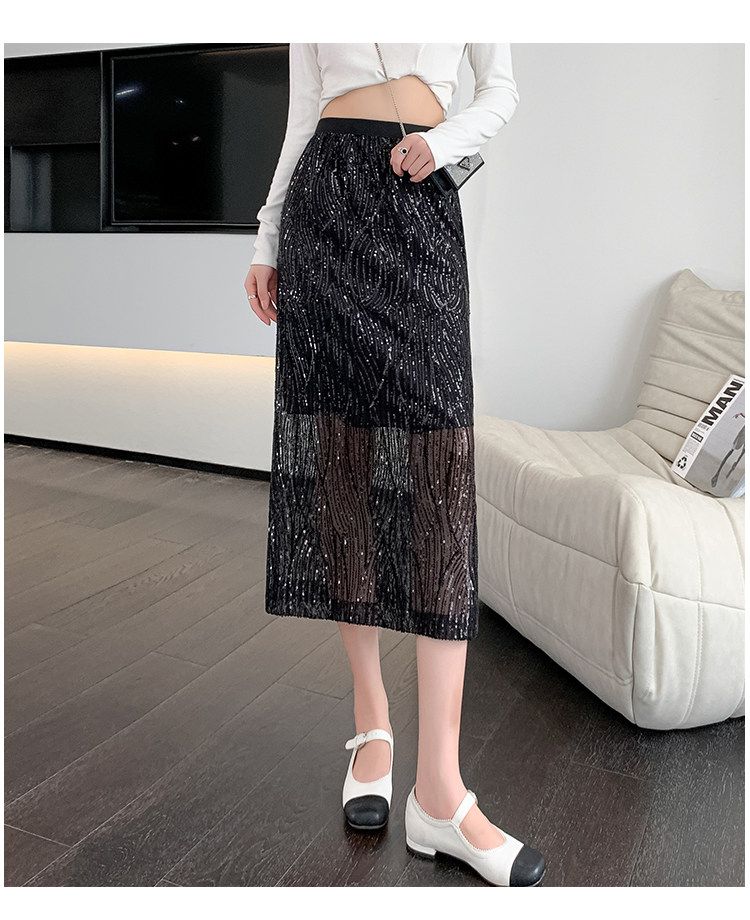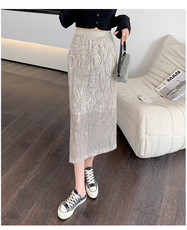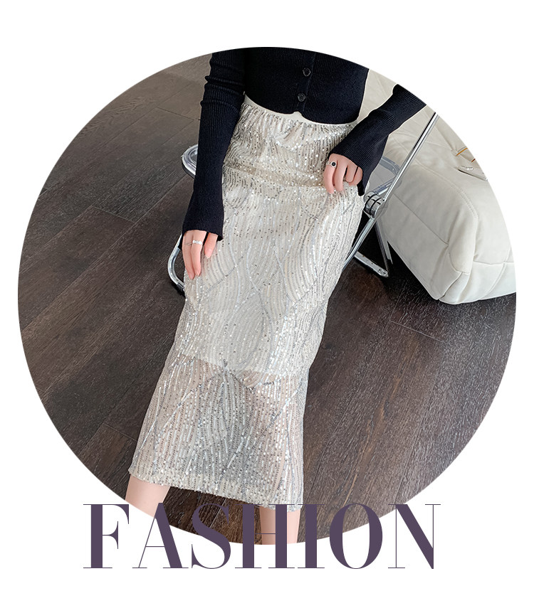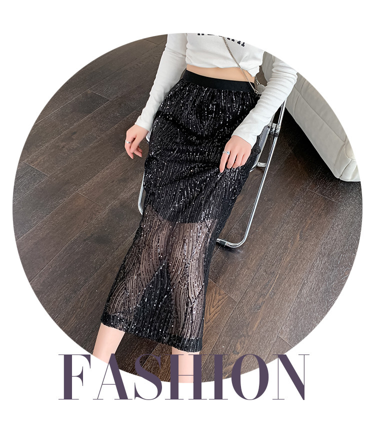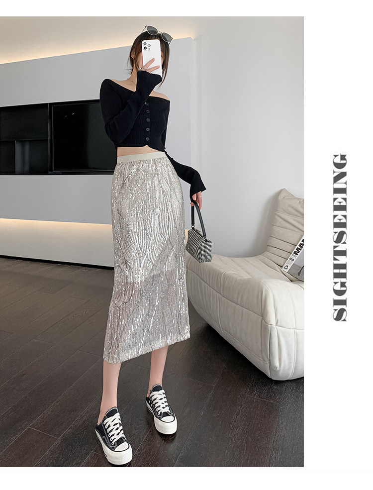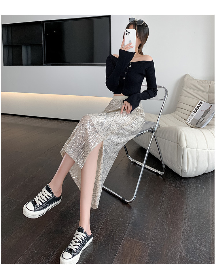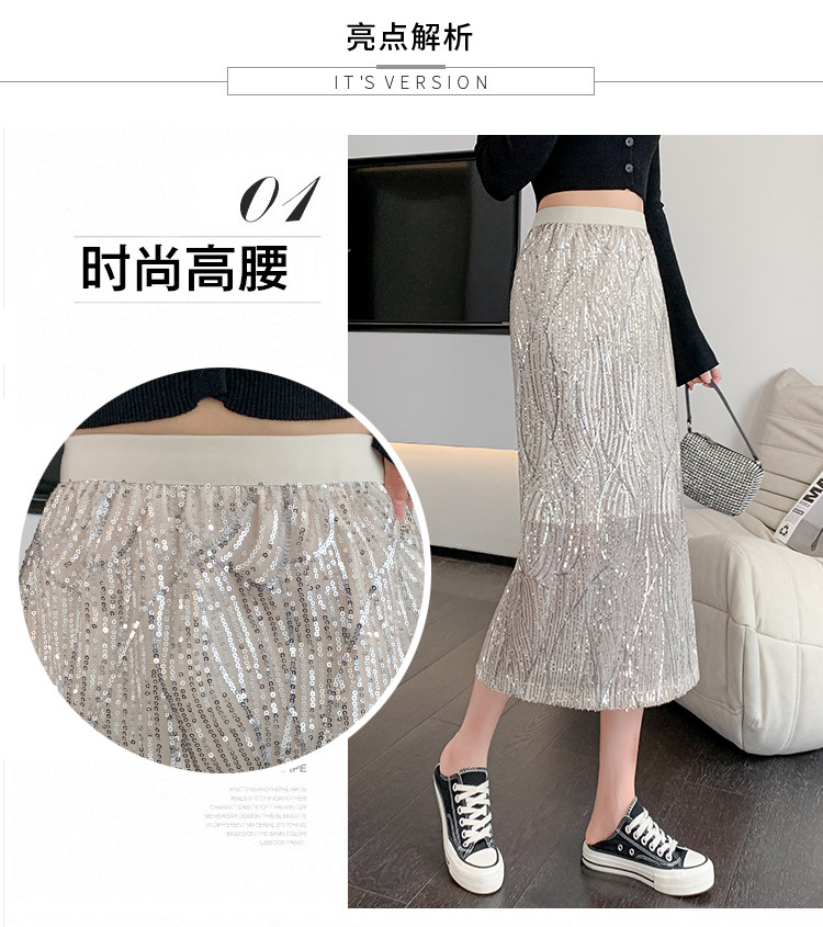 RM33005#亮片半身裙女高腰显瘦百搭开叉长裙一步裙夏设计感小众高级感裙子