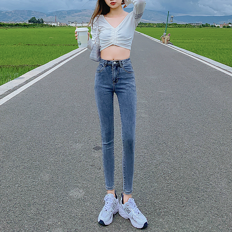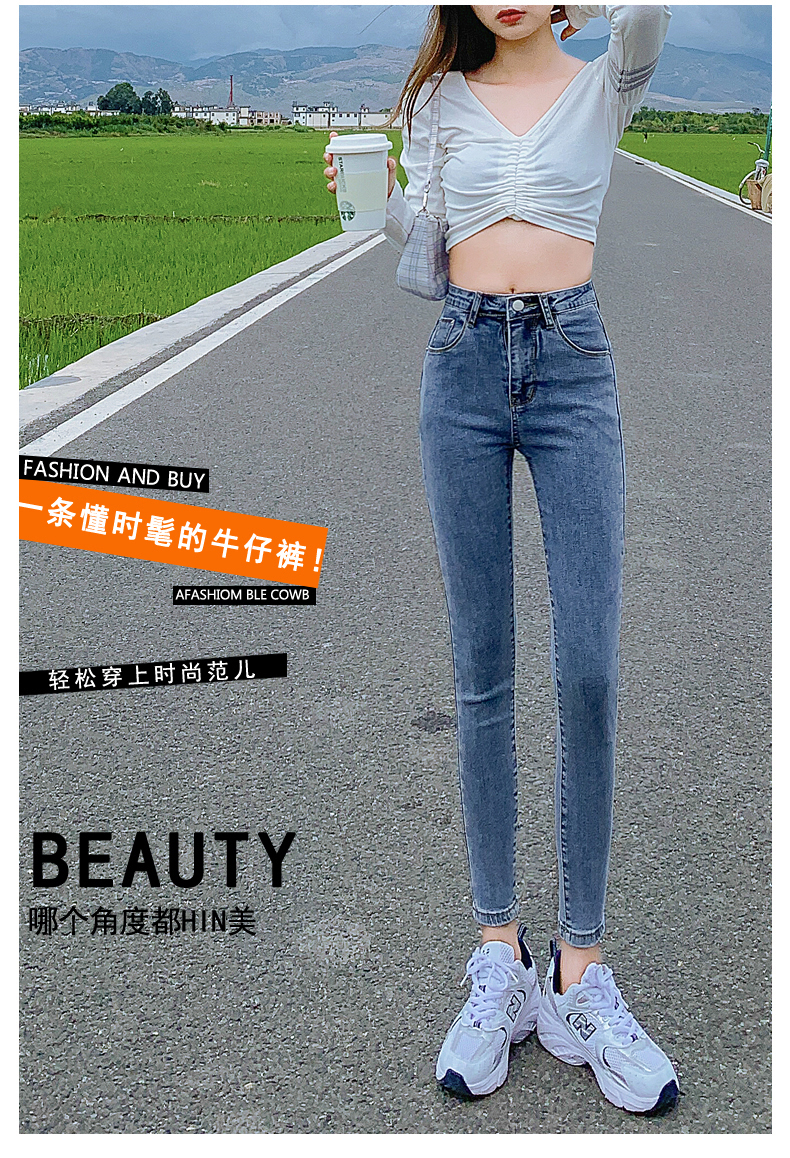 RM33011#新款高弹力牛仔裤女紧身长裤九分小脚铅笔裤子
