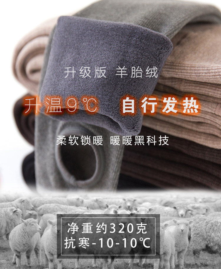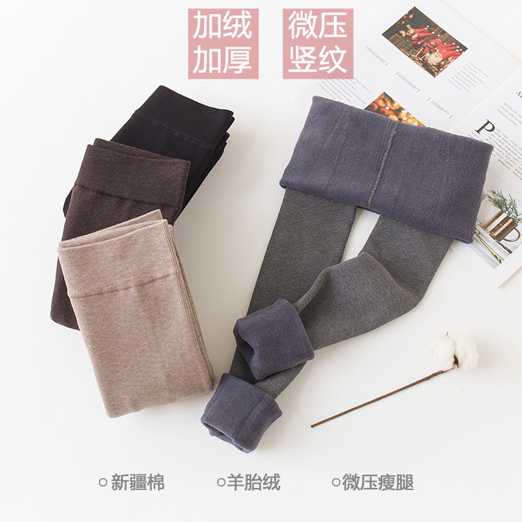 RM33048#棉裤女加厚加绒打底裤女秋冬外穿显瘦黑色竖条螺纹高腰保暖裤踩脚