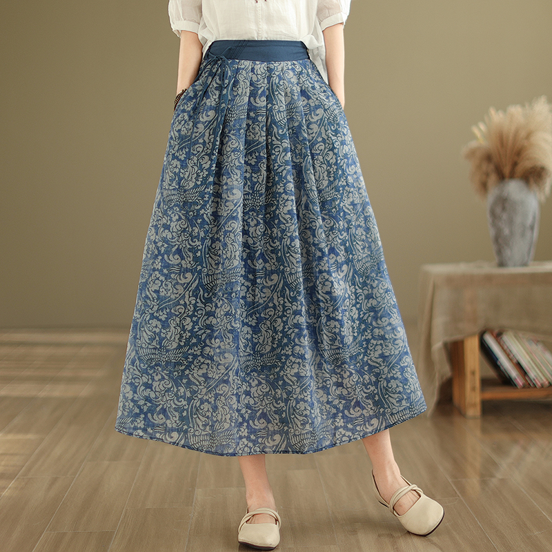 RM33061#高端天丝亚麻半裙碎花半身裙子女春夏2024新款春装棉麻半截裙