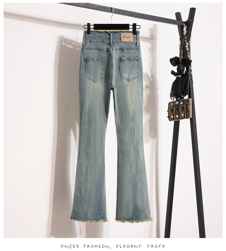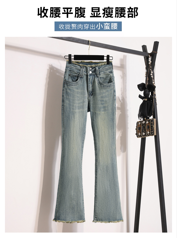 RM33084#复古高级水泥灰微喇牛仔裤女高腰 新款紧身显瘦拖地喇叭裤