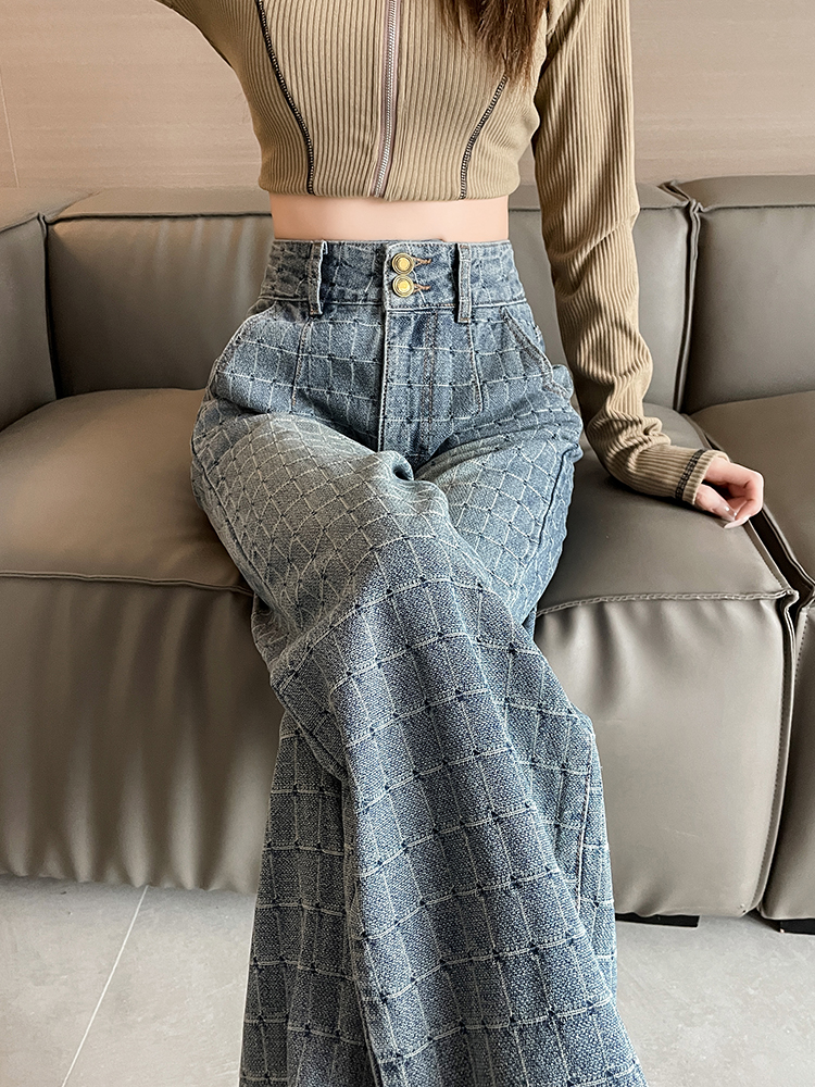 RM33093#设计感阔腿牛仔裤女春季2024新款美式复古高腰显瘦直筒拖地裤
