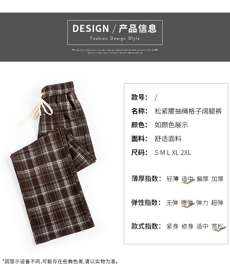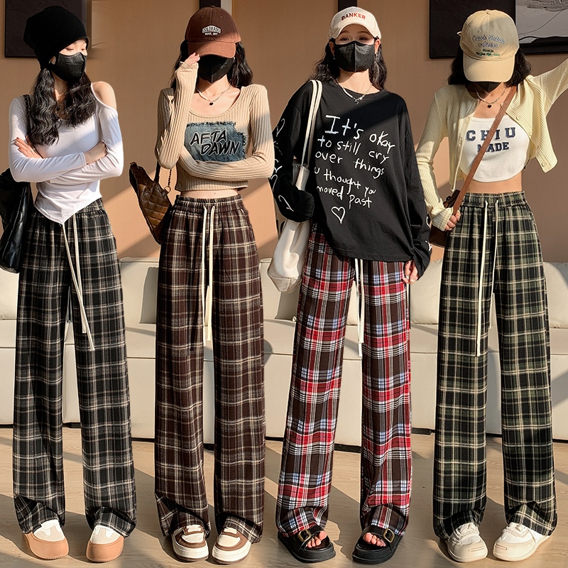 RM33123#复古格子阔腿裤女2024春季新款显瘦宽松休闲垂感直筒拖地裤子