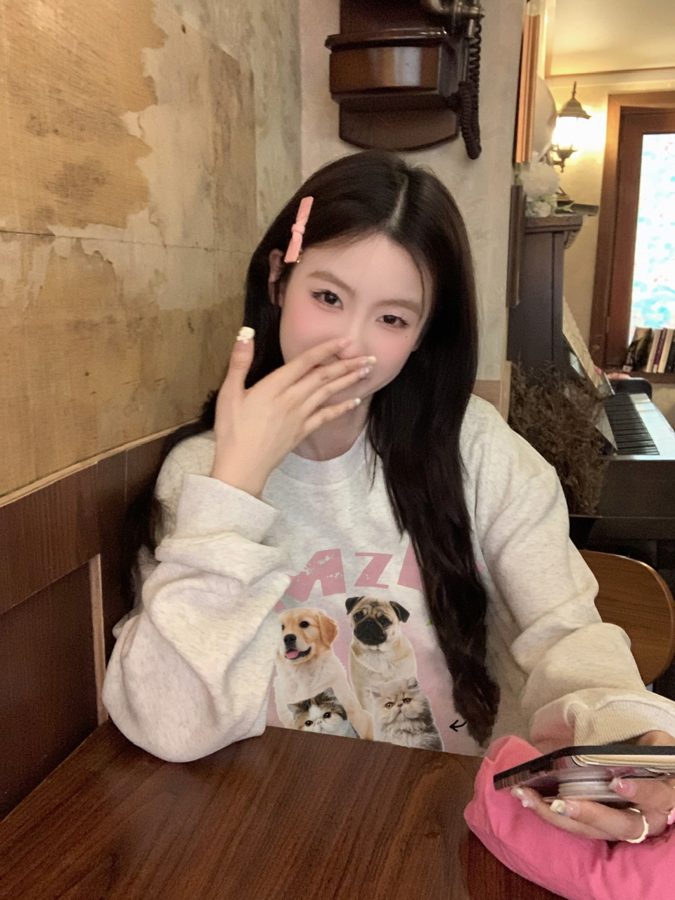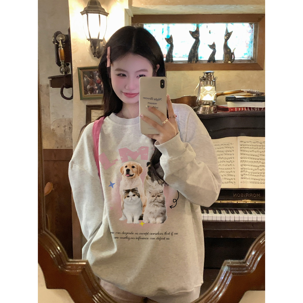 RM33125#华棉复合薄款 秋冬装卫衣女印花宽松大码