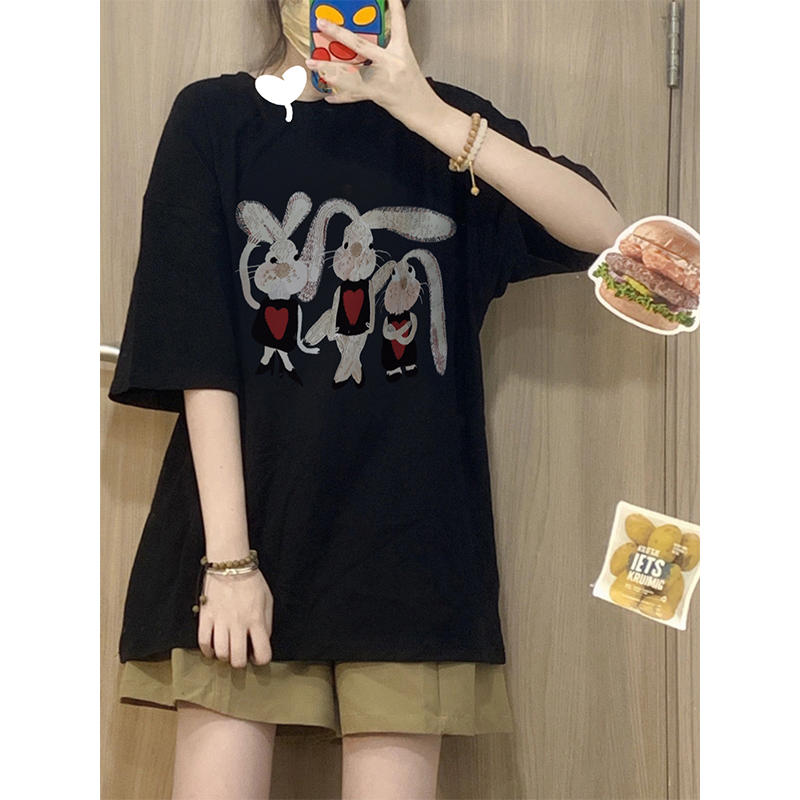 RM33127#精梳纯棉后包领 有缝边S-XXXL夏装短袖T恤女