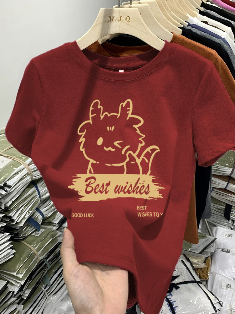 RM33130#包肩包领酒红色美式复古短袖t恤早春新款修身显瘦洋气减龄上衣