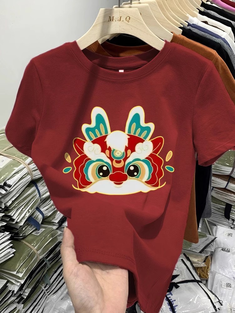 RM33132#包肩包领酒红色美式复古短袖t恤早春新款修身显瘦洋气减龄上衣