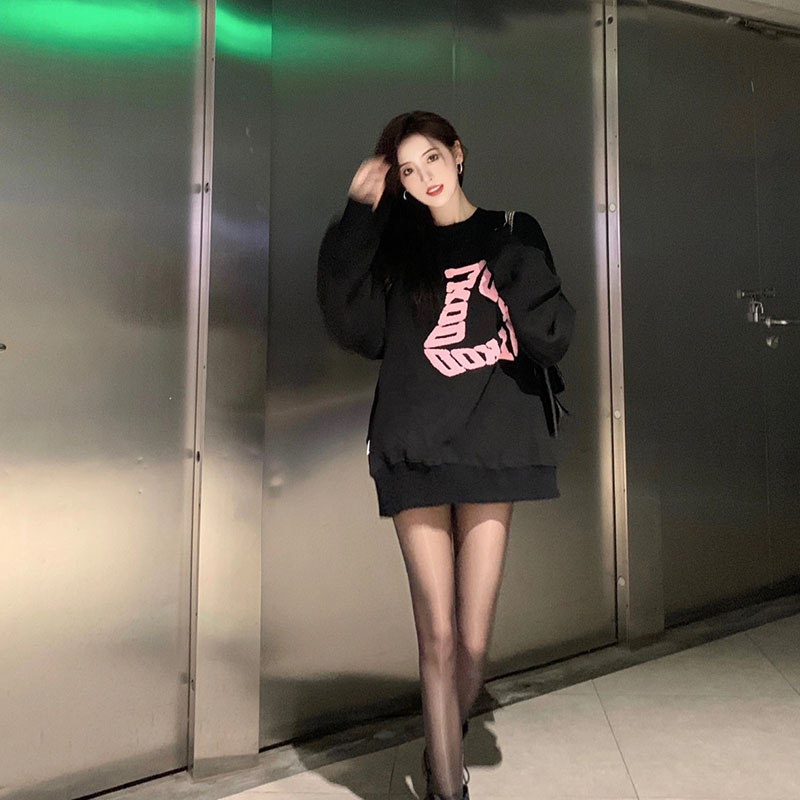 RM33137#华棉复合薄款 加绒 卫衣女印花宽松大码