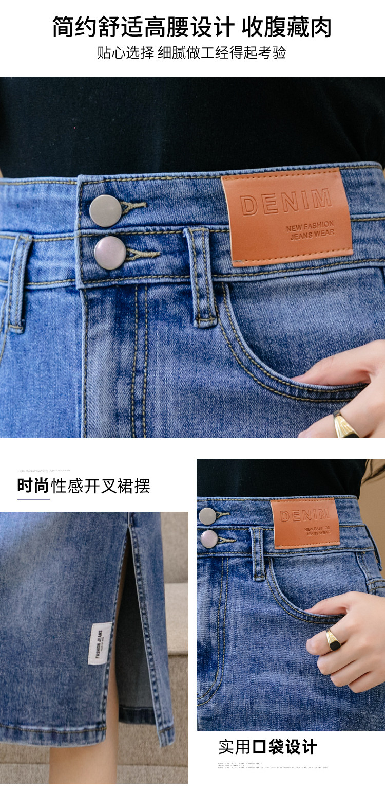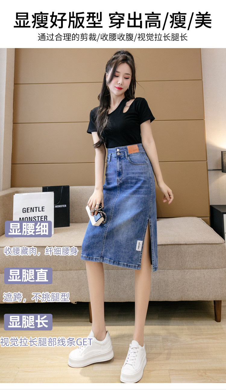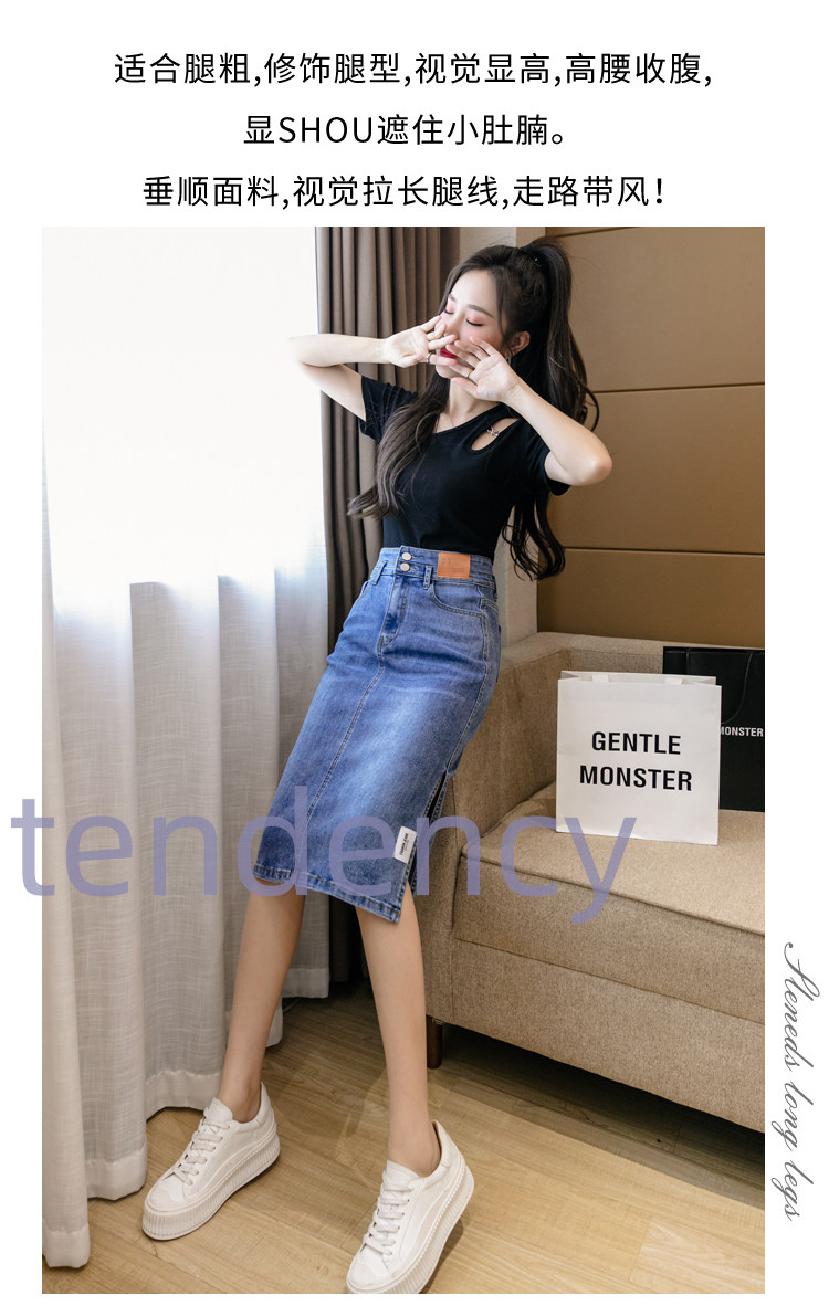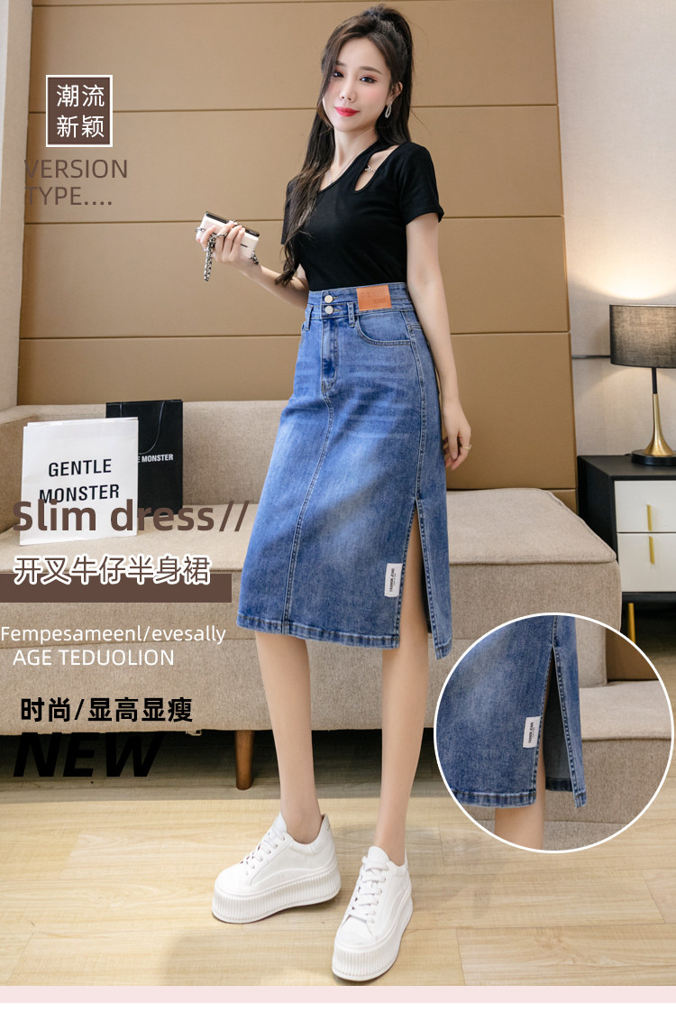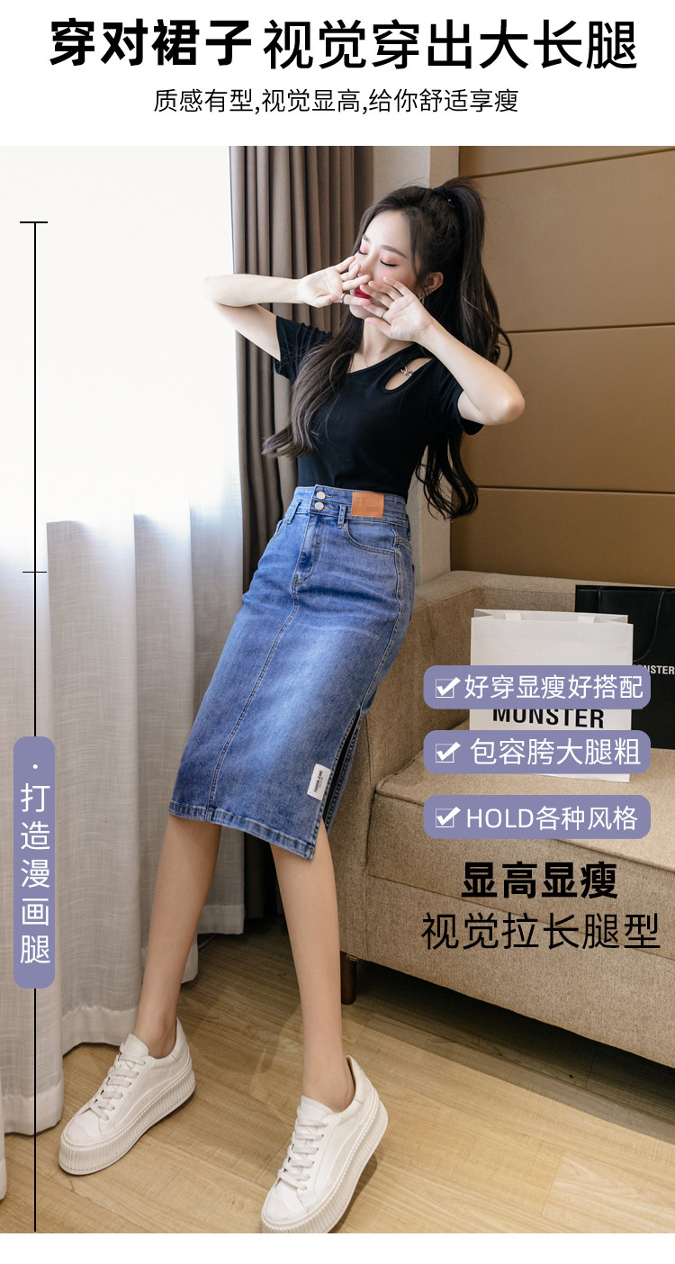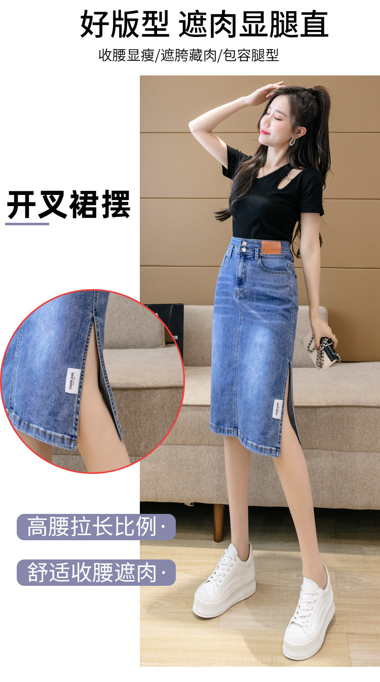 RY2691#高腰包臀裙开叉牛仔半身裙中长款一步裙
