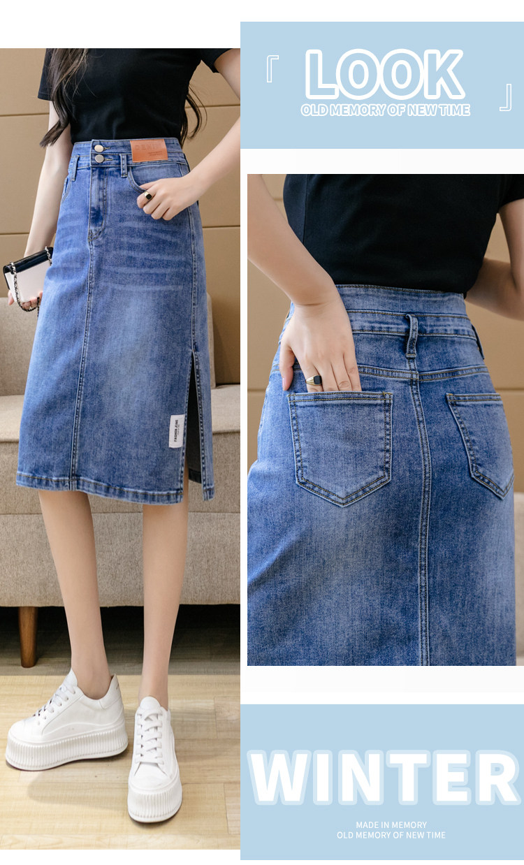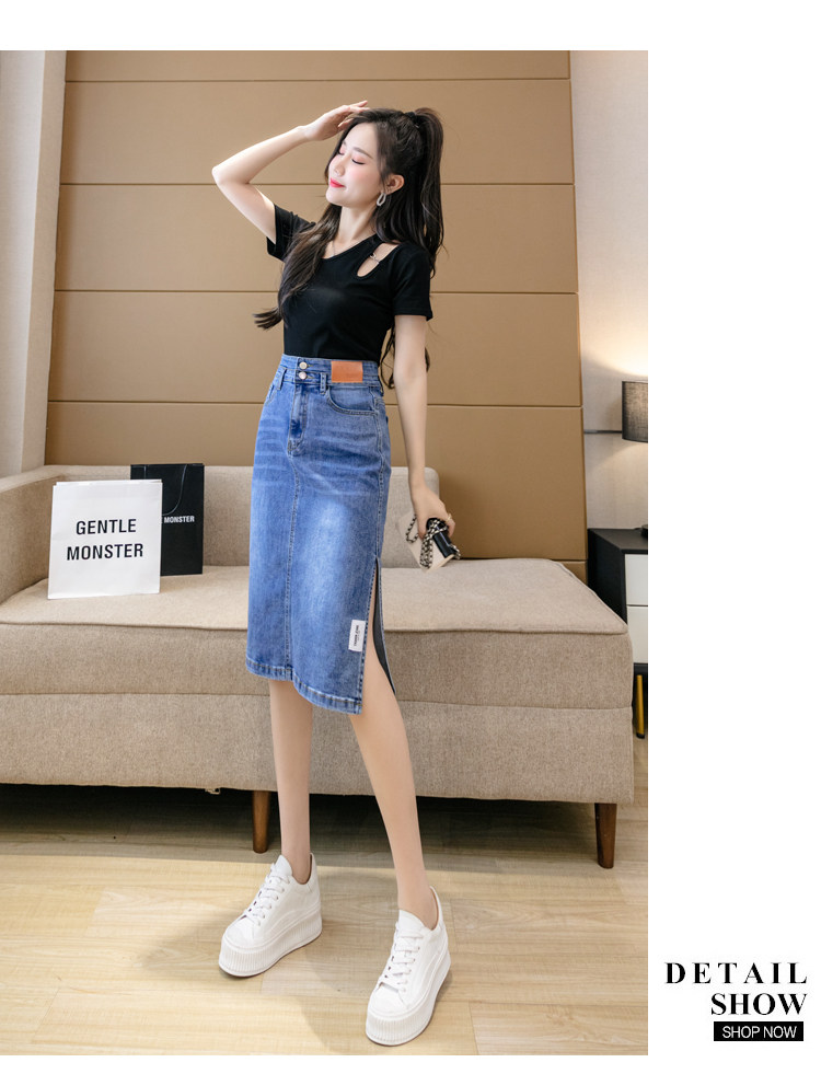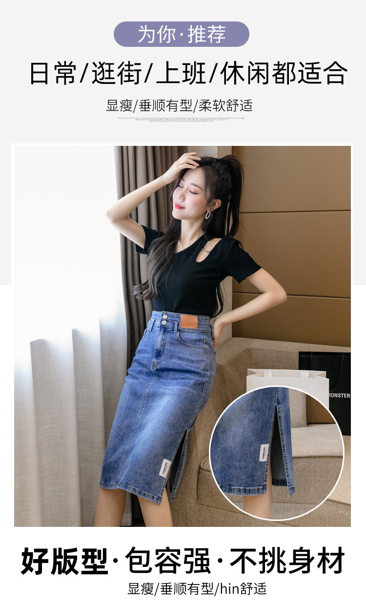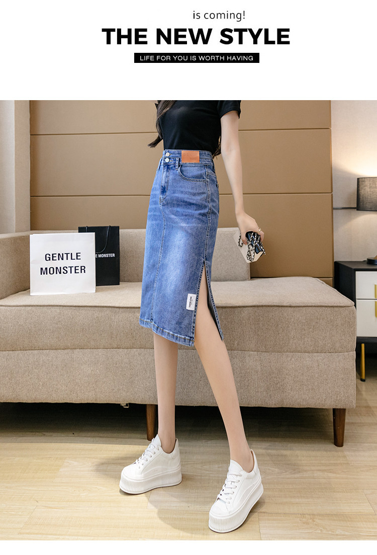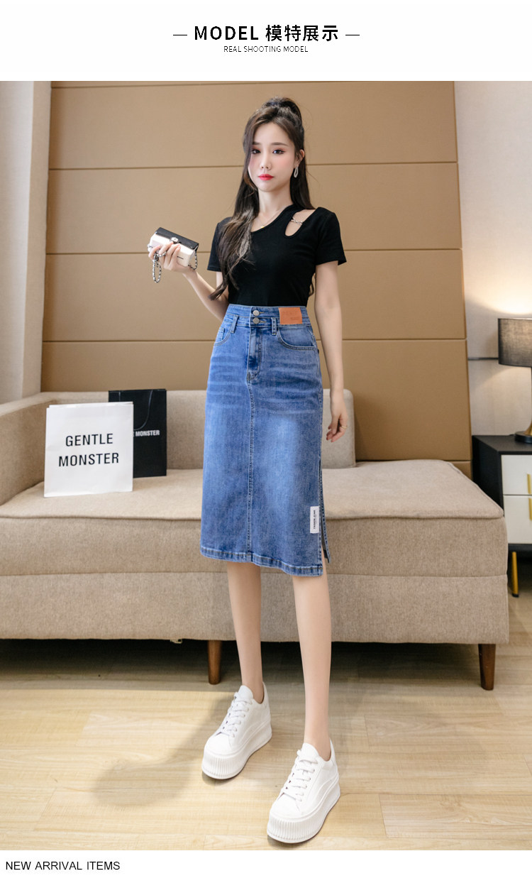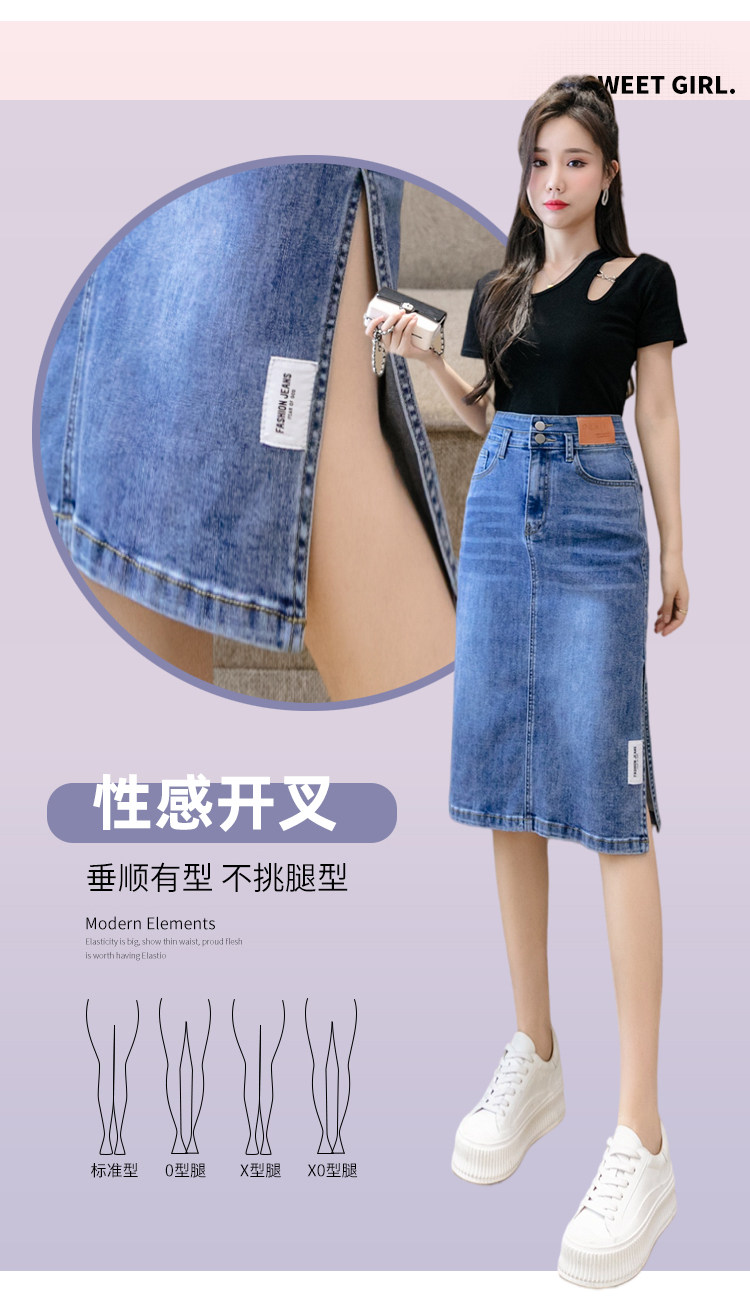 RY2691#高腰包臀裙开叉牛仔半身裙中长款一步裙