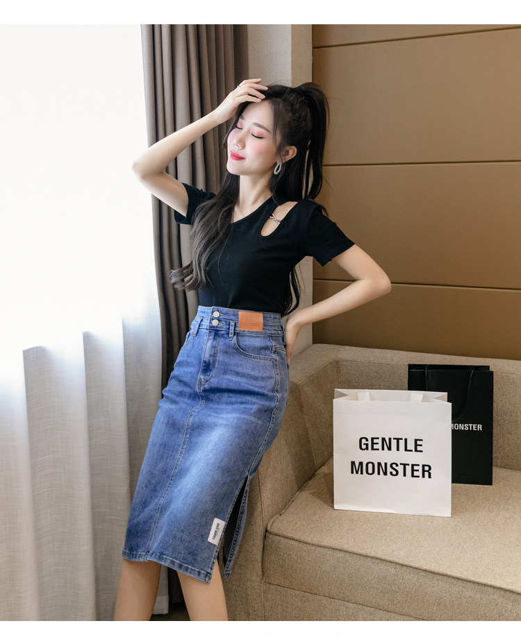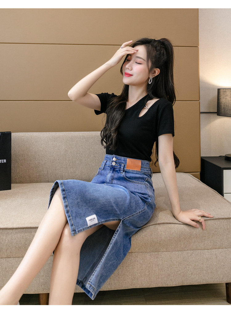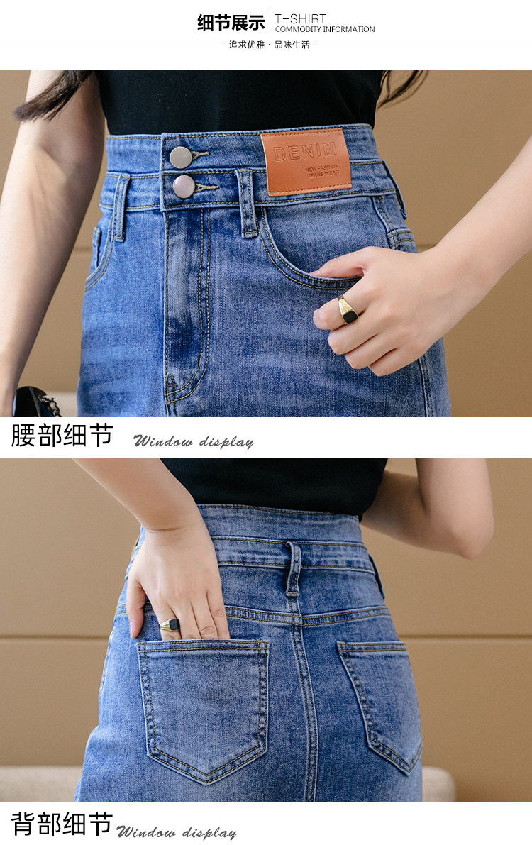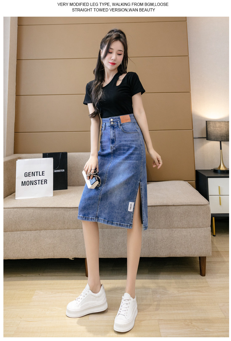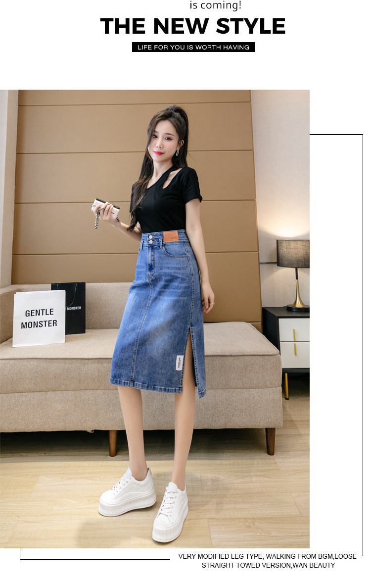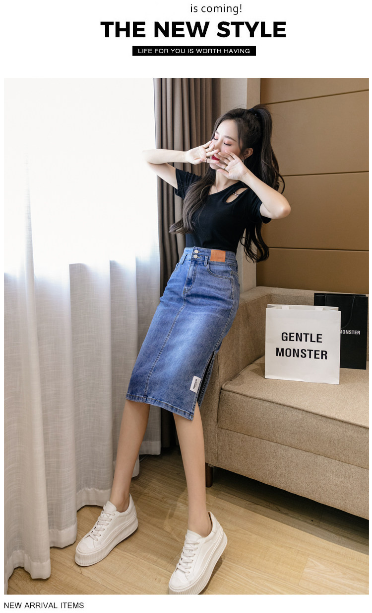 RY2691#高腰包臀裙开叉牛仔半身裙中长款一步裙