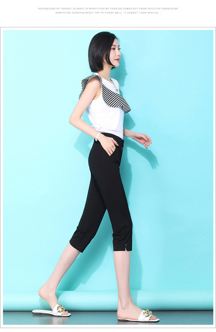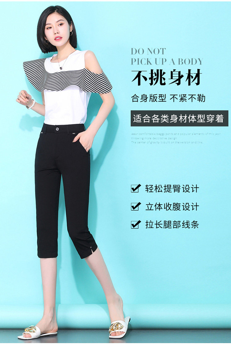RY2697#七分裤女夏薄款宽松休闲直筒裤中年女裤7分裤中裤