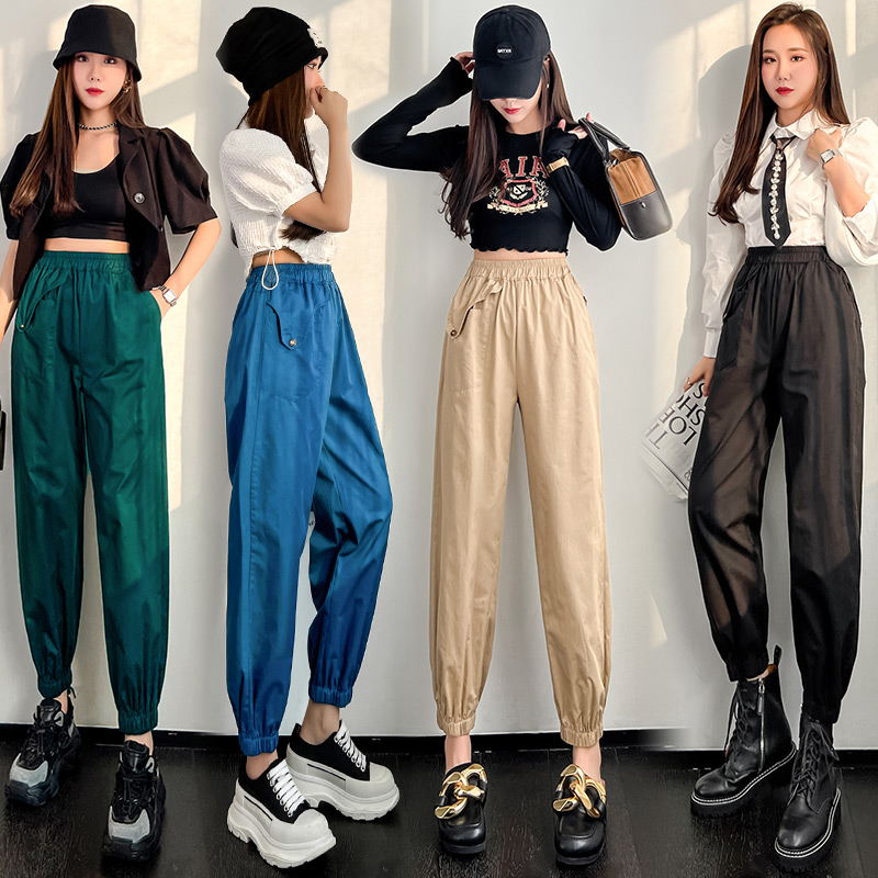 RY2698#束脚工装裤女薄款春夏季宽松显瘦高腰直筒九分裤休闲裤潮