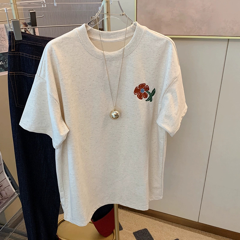 RM33182#夏季新款休闲玫瑰花印花简约宽松百搭短袖T恤女上衣