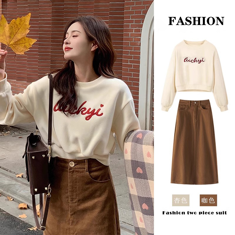 RM33185#小个子香风加绒卫衣半身裙子 新款爆款深冬装搭配一整套装裙